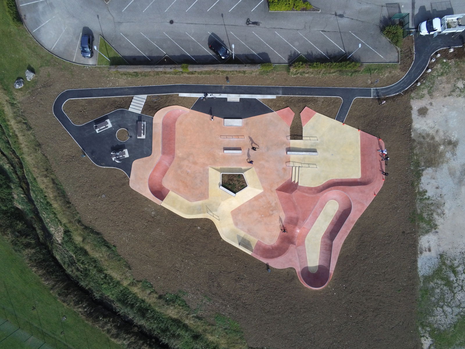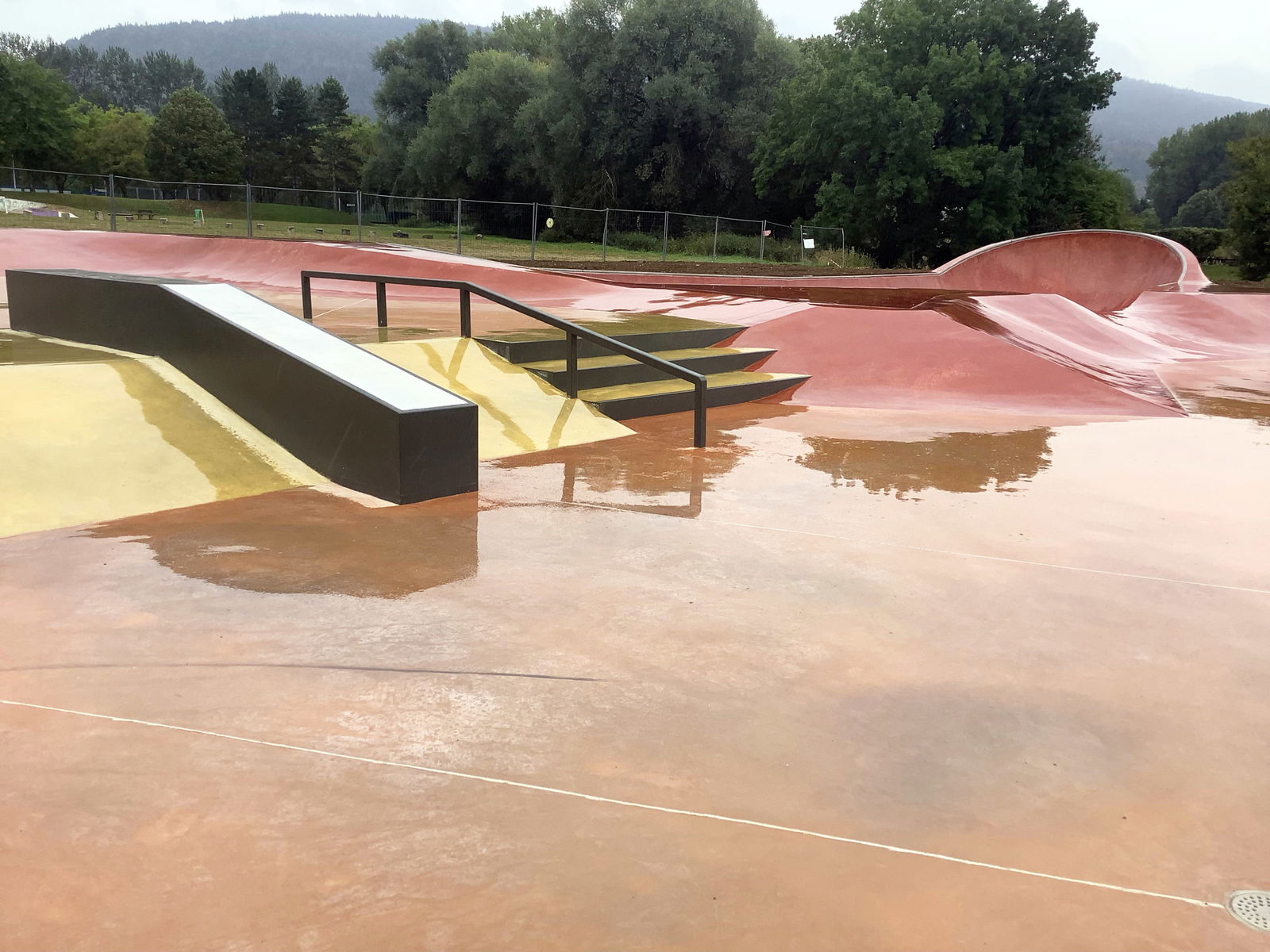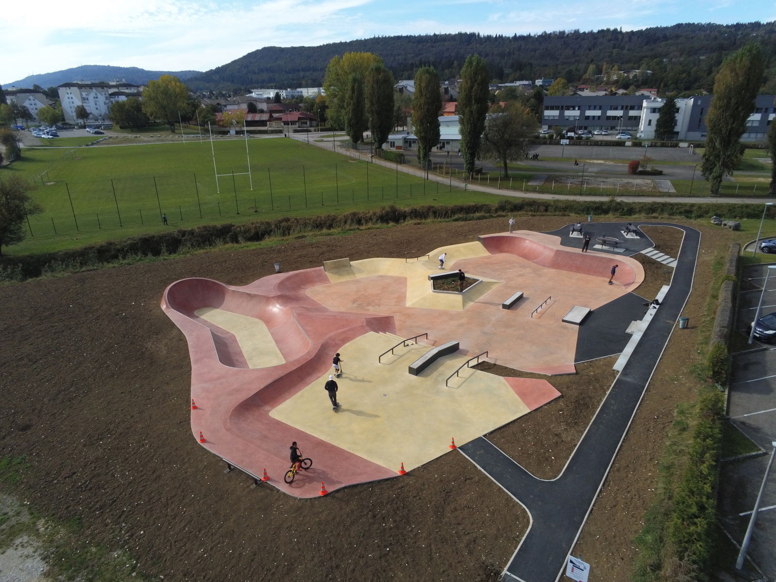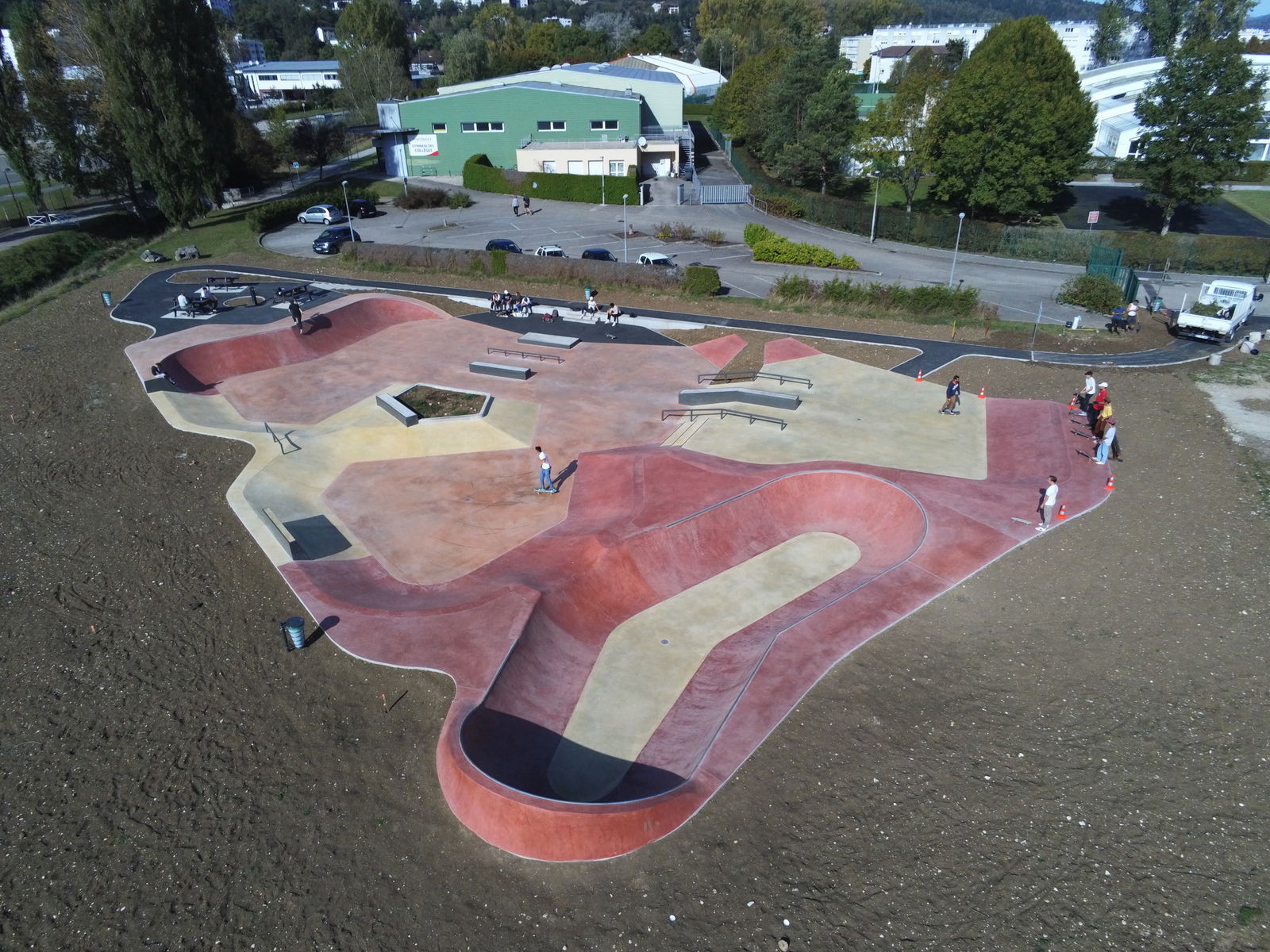 Oyonnax skatepark is a 810 square meter concrete park featuring an open bowl and miniramp connected to a street area. The skatepark was designed by InOut Concept in collaboration with Constructo Skatepark Architecture and constructed by Valrhone TP.