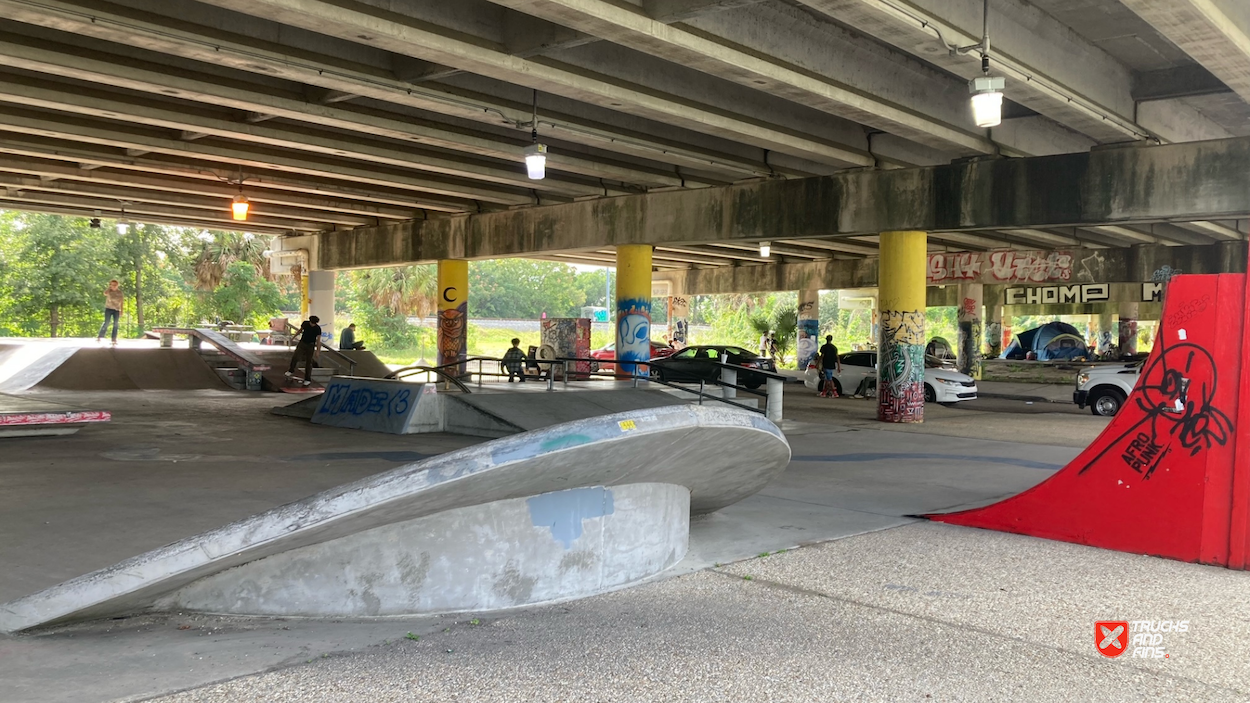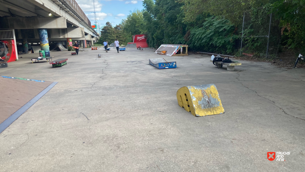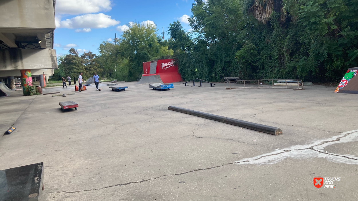 Parasite DIY Skatepark, New Orleans' first public skatepark, is a community-driven project that began in 2008 as a response to the lack of formal skate facilities in the city. Local skaters initially found a hidden concrete slab near railroad tracks and, using limited resources, started building ramps and obstacles. However, in 2012, the site was demolished, leading the skaters to relocate to a nearby space under the Interstate 610 overpass. This area became the foundation for what is now known as Parasite Skatepark, a name inspired by its location along Paris Avenue.
