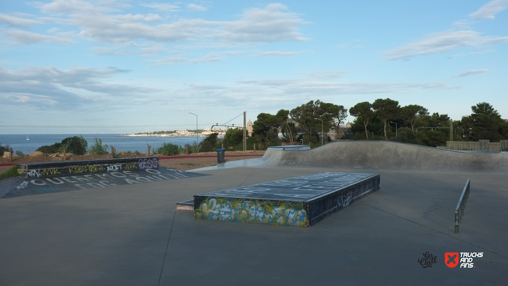 PDG is a lively skatepark with fantastic opening to the ocean. It has a good skateshop and cafétéria. Transitions are good although the layout of the skatepark can be largely improved.