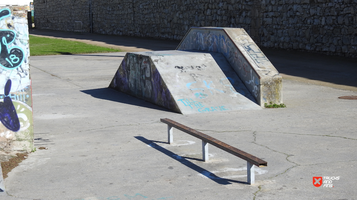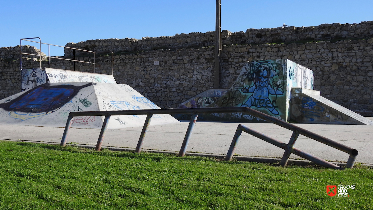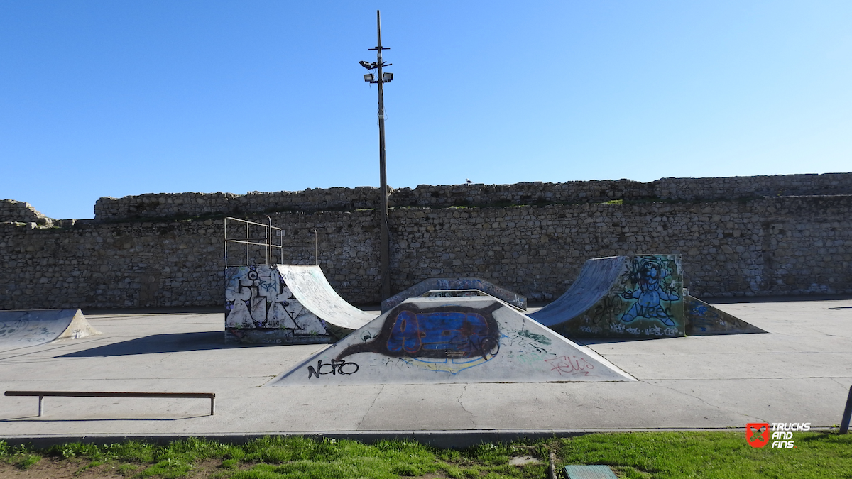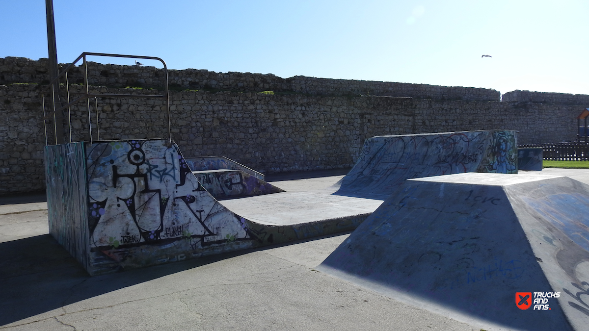 Peniche is a Portuguese municipality and city, located next to the Atlantic Ocean, in the district of Leiria. It has a population of 26419. The skatepark in Peniche is located in Parque do Baluarte park. This park can definitely be considered one of the worst skateparks in the country. The skatepark features an unskatable miniramp and several basic skateboarding obstacles. How can the capital of surf of Portugal have such a bad park? Only the skate gods know.