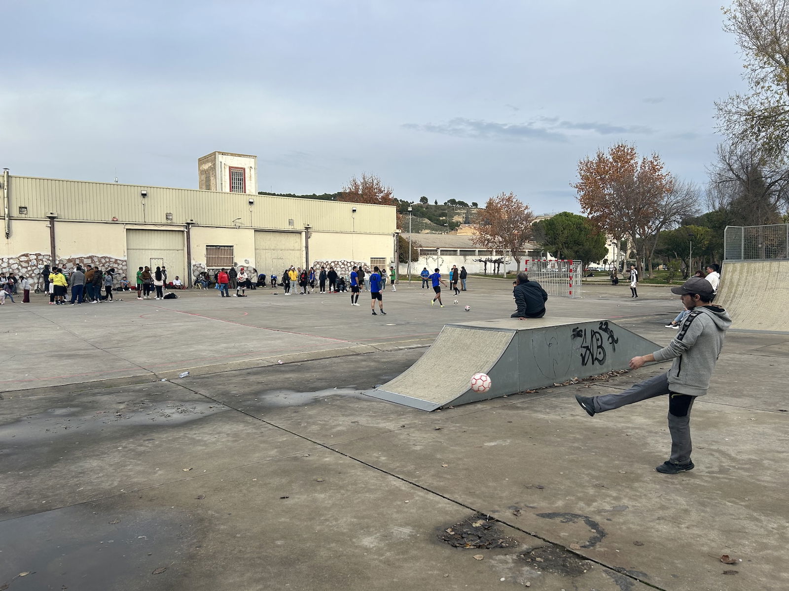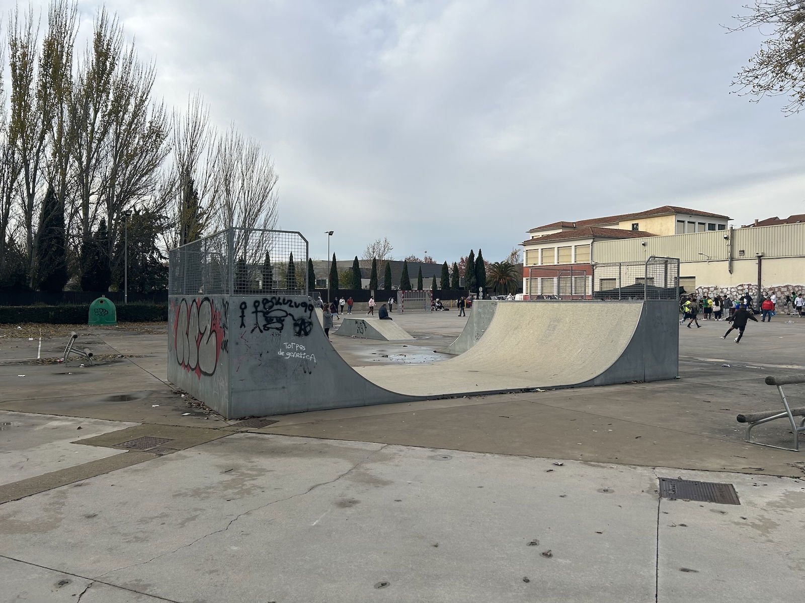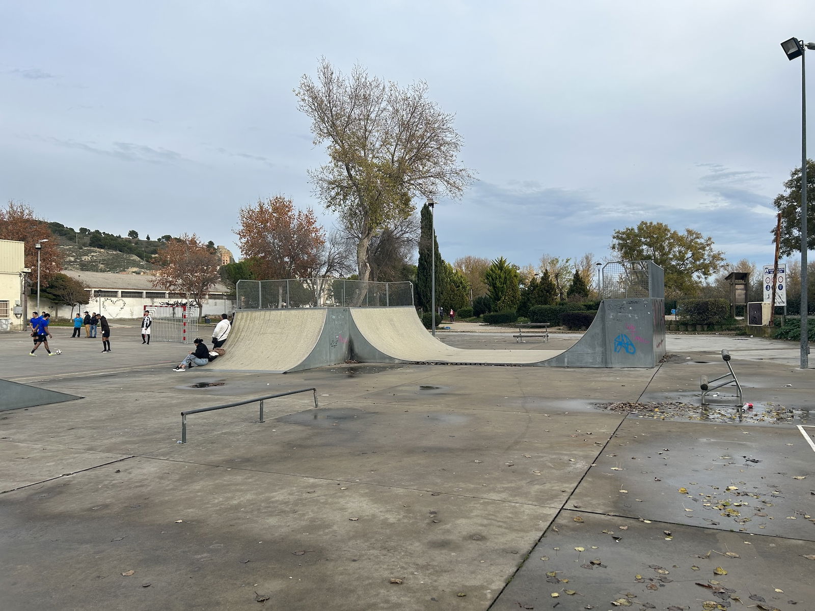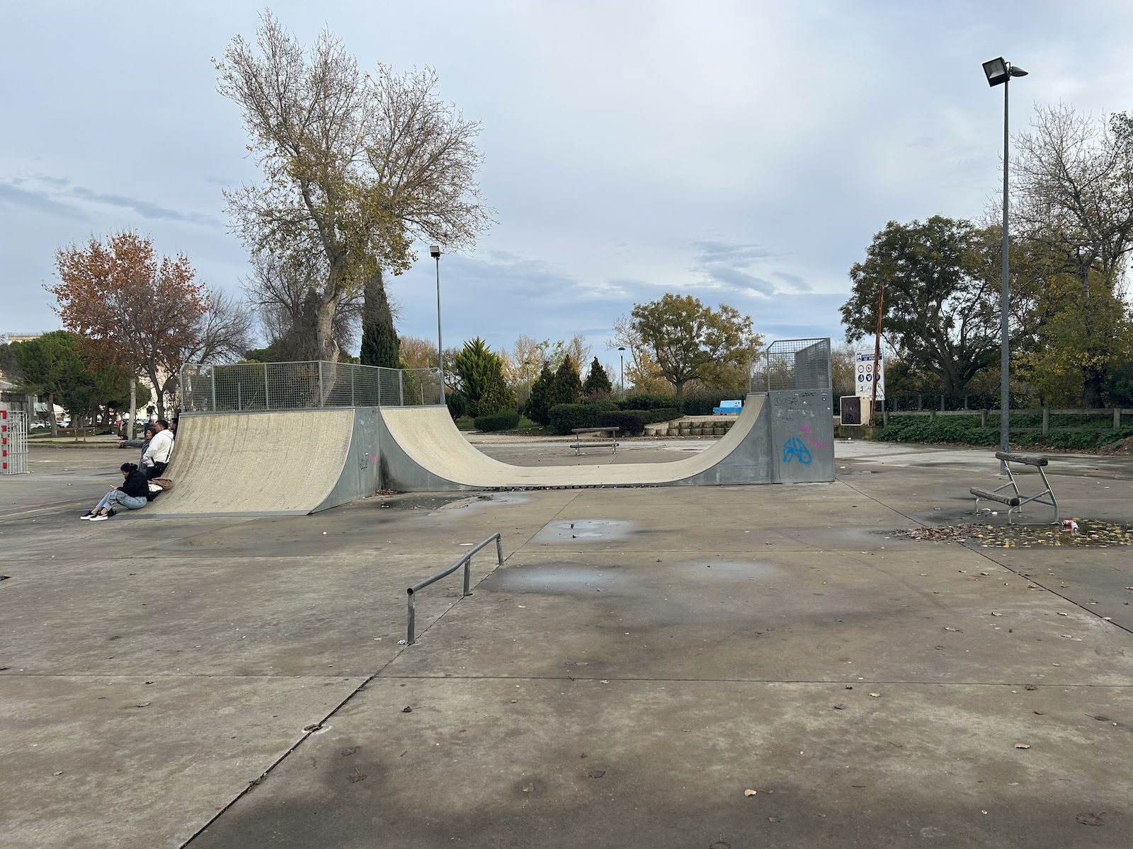 Peralta skatepark is made up of a back and forth run with a quarter pipe and bank on the sides of a funbox. The skatepark also features a miniramp.