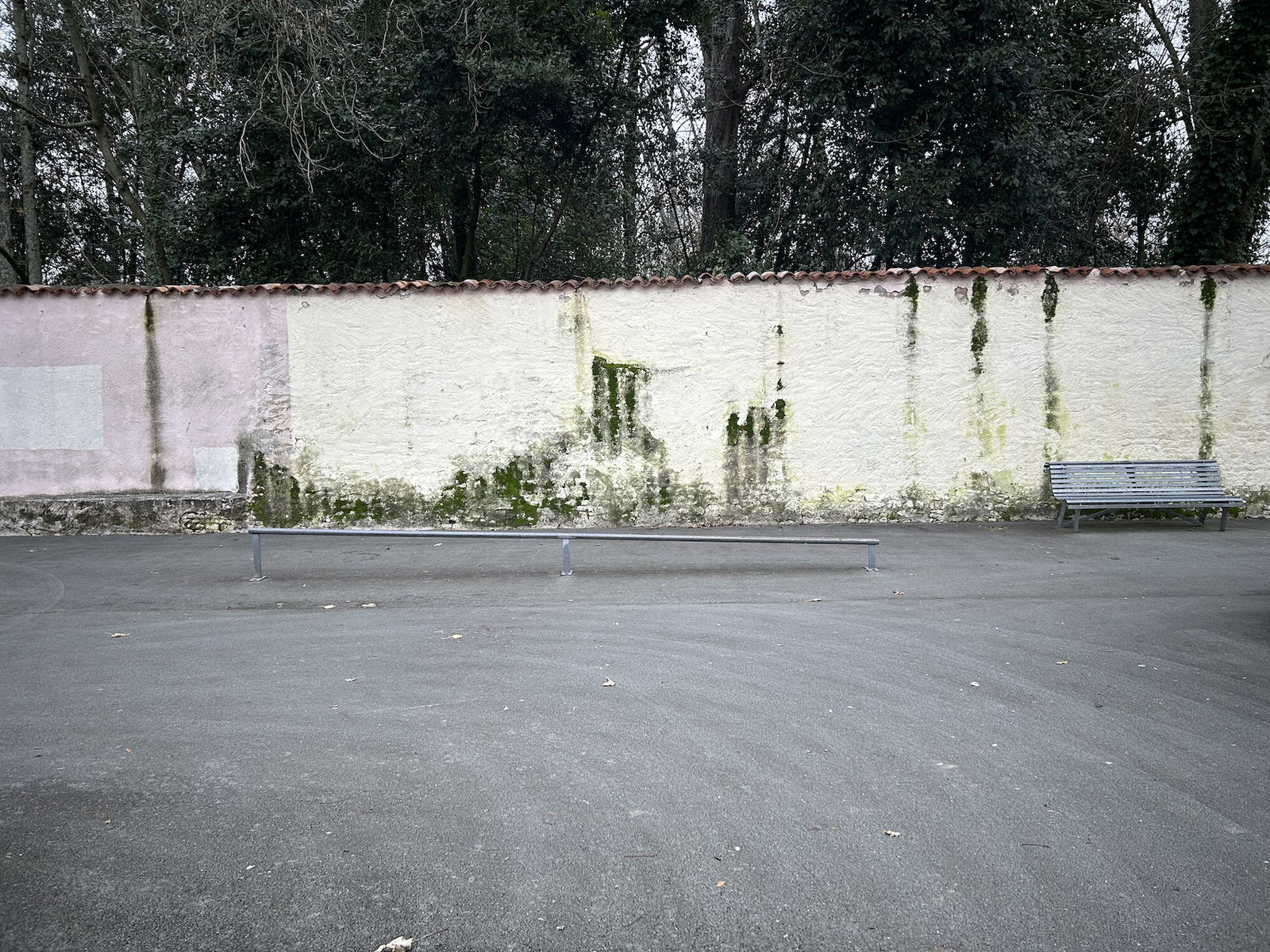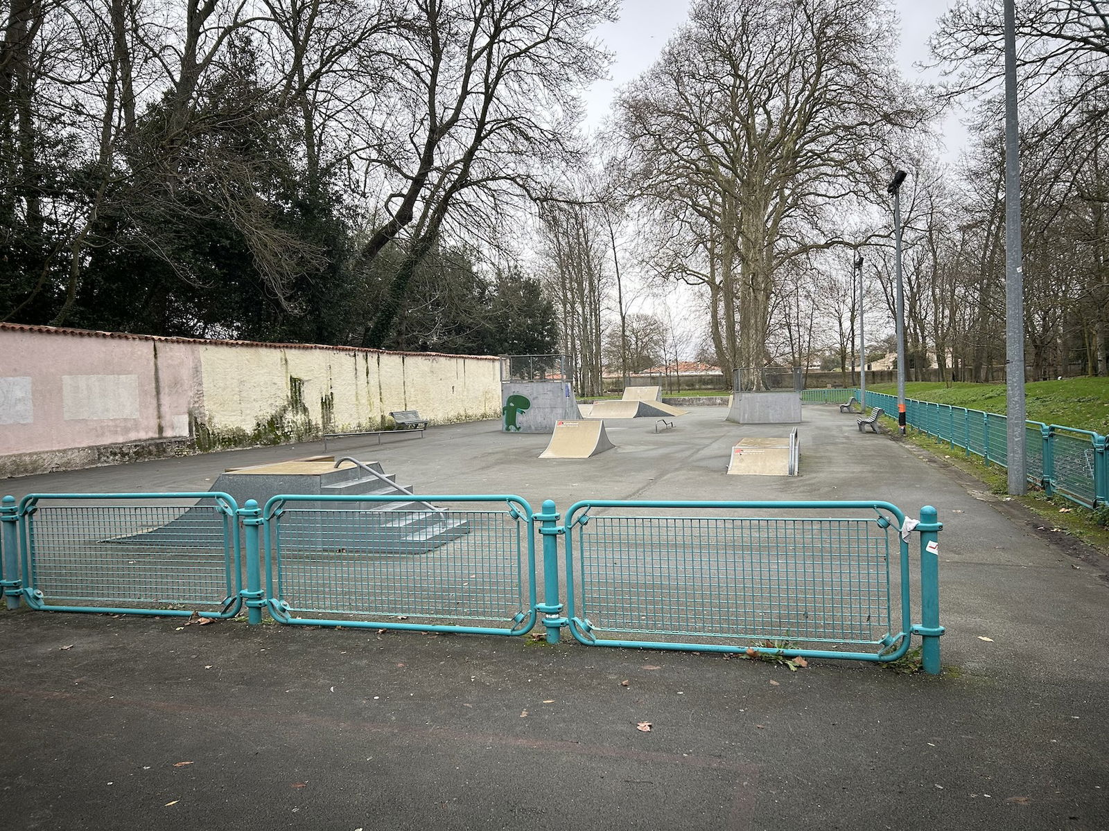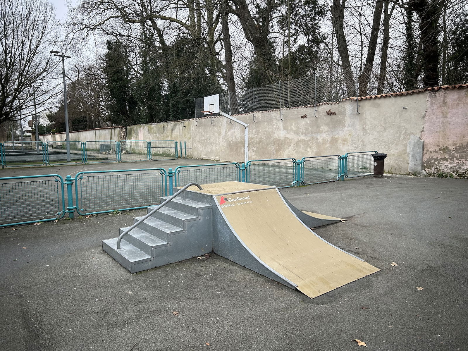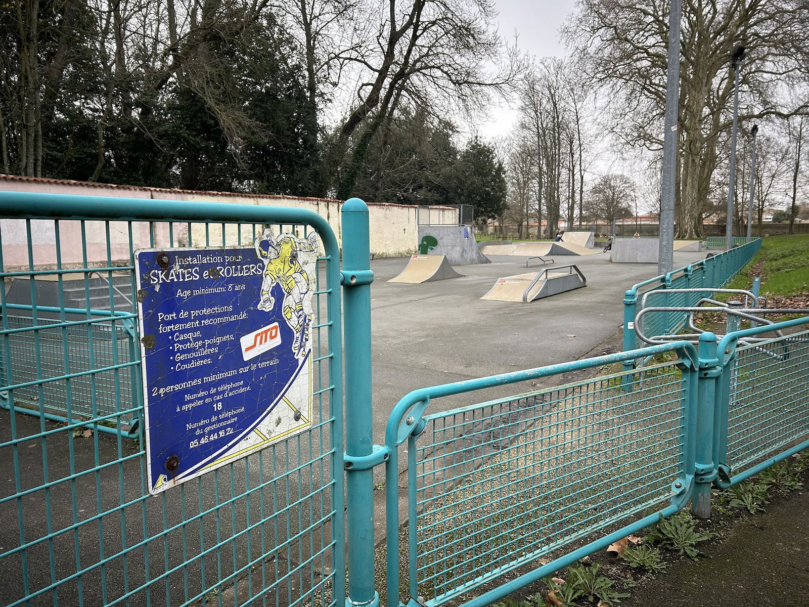 Perigny skatepark is made up of a back and forth run with a quarter pipe and bank on the sides of a funbox. The skatepark also features several street obstacles.