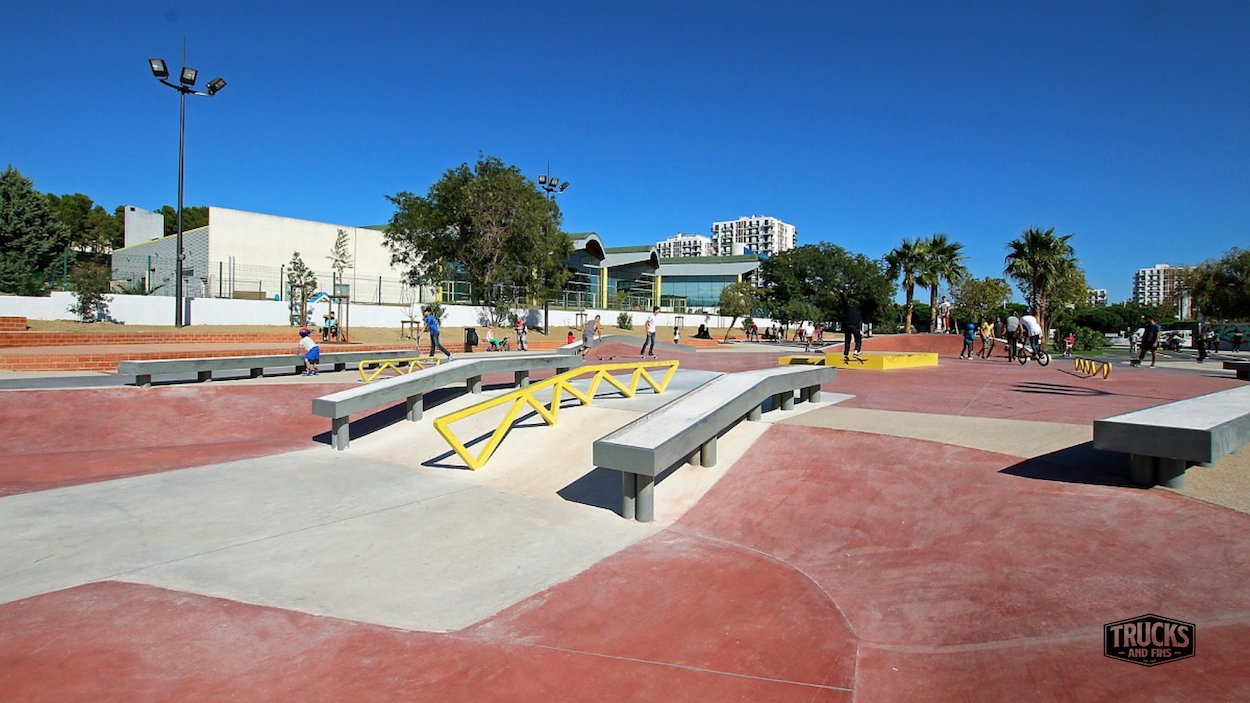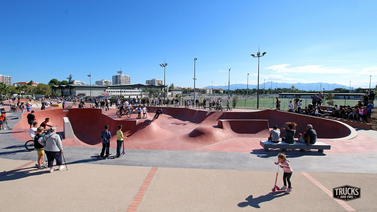 Located at 80 Avenue Paul Alduy in Perpignan (66 – Occitanie), this expansive outdoor skatepark spans approximately 7,420 m² and is built to accommodate skateboarding, BMX, rollerblading and scooters. The facility features a deep and flowing concrete bowl zone (≈ 691 m², max depth ~2.8 m), a modern street plaza (≈ 396 m²) packed with rails, curbs and manual pads, and a dedicated pumptrack/BMX loop. Open free to the public from early morning until late evening (summer hours 7:00-22:00), the park offers lighting for extended sessions and easy access with parking nearby. Whether you’re looking to carve transitions, grind street obstacles or pump laps on a BMX, Perpignan’s flagship skatepark is an essential stop on your skate-travel map.