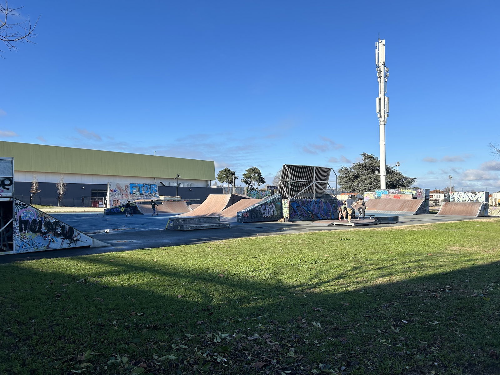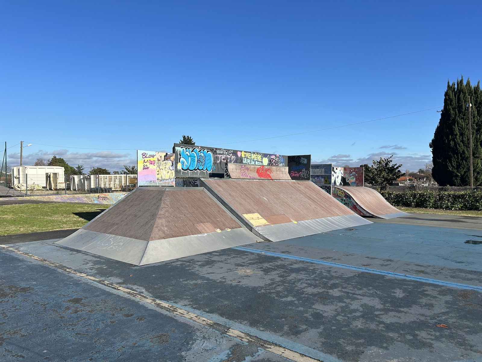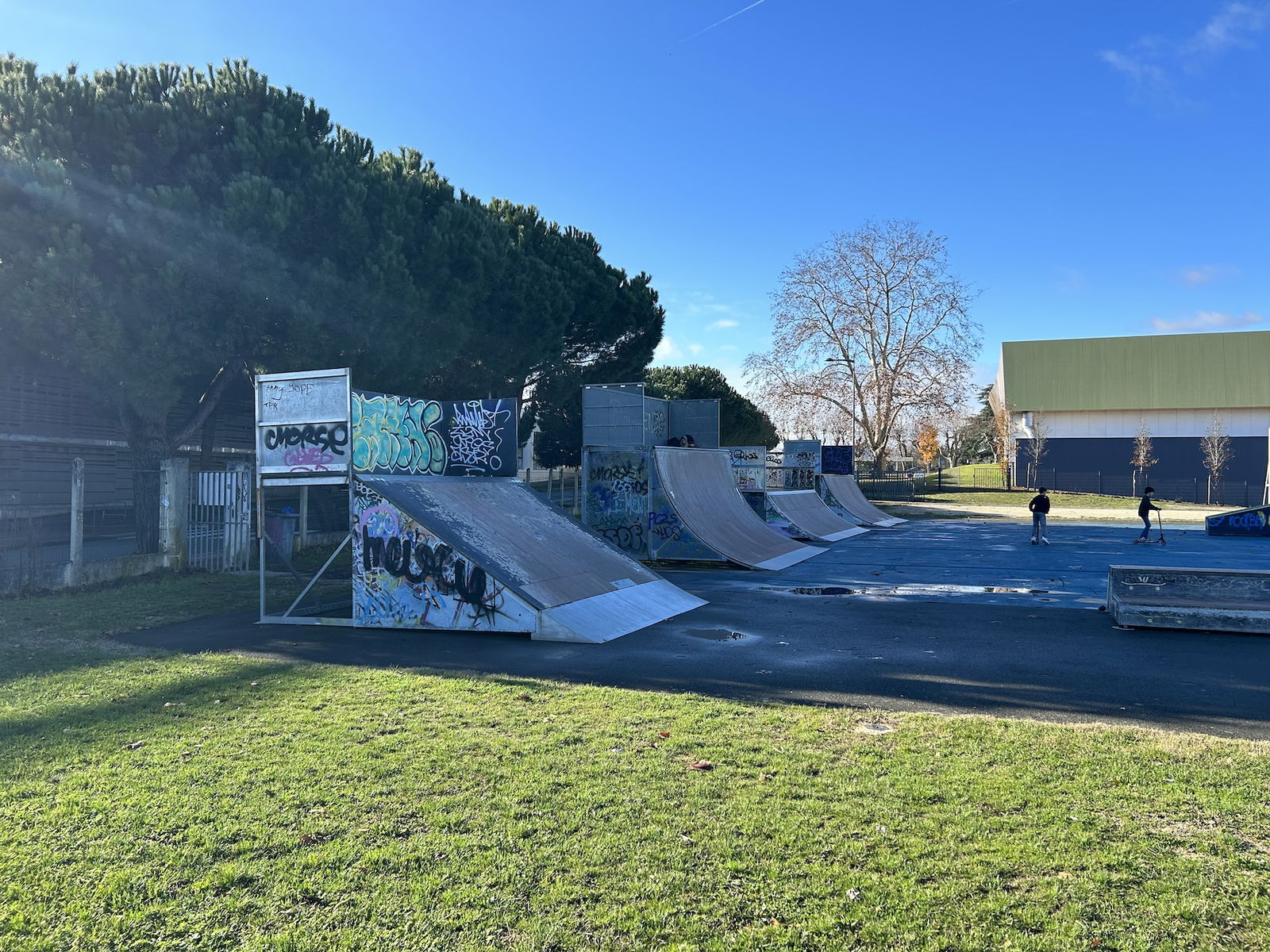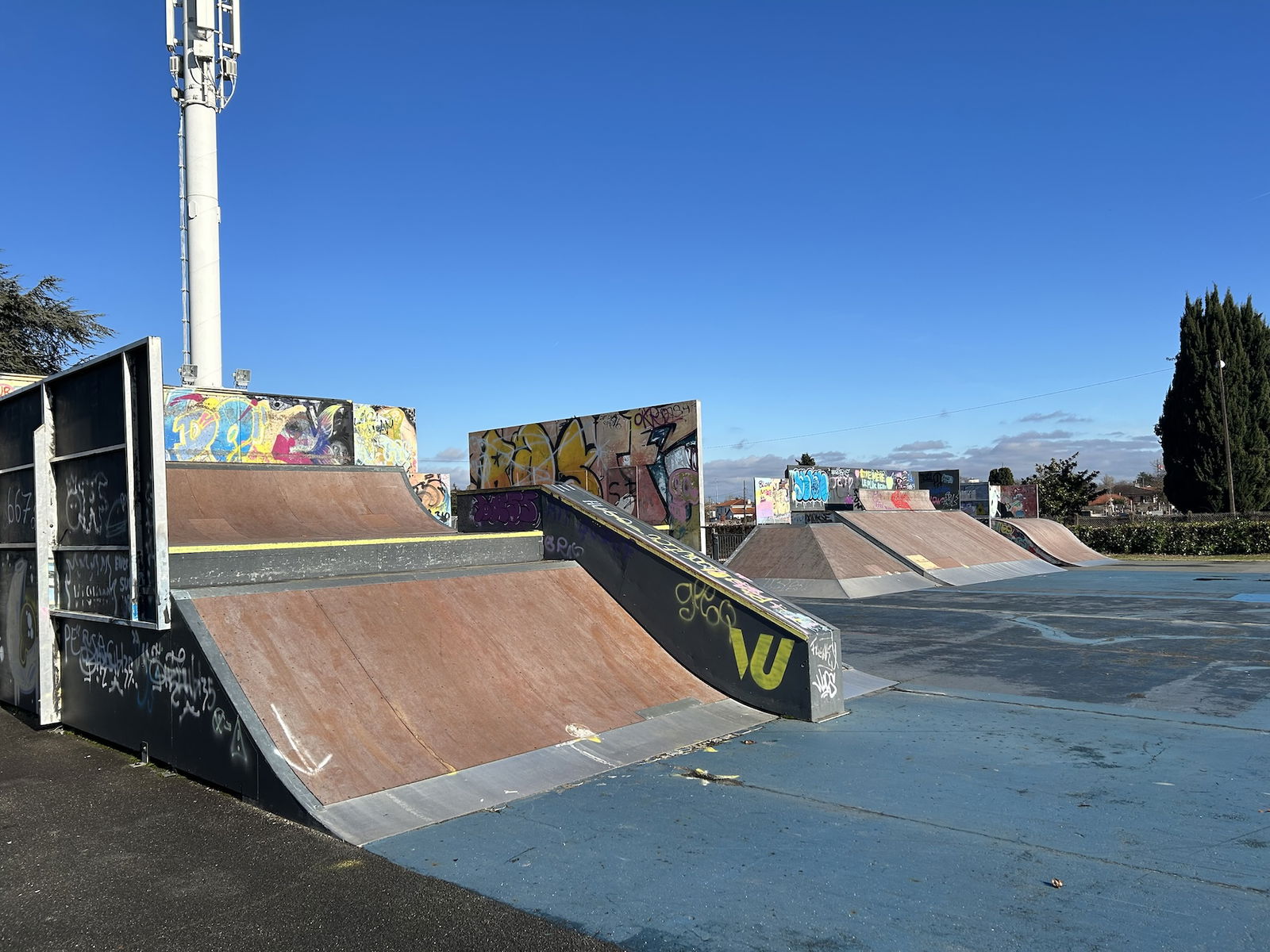 Pessac skatepark is made up of several back and forth runs with quarter pipes and banks on the sides of funboxes and other obstacles.