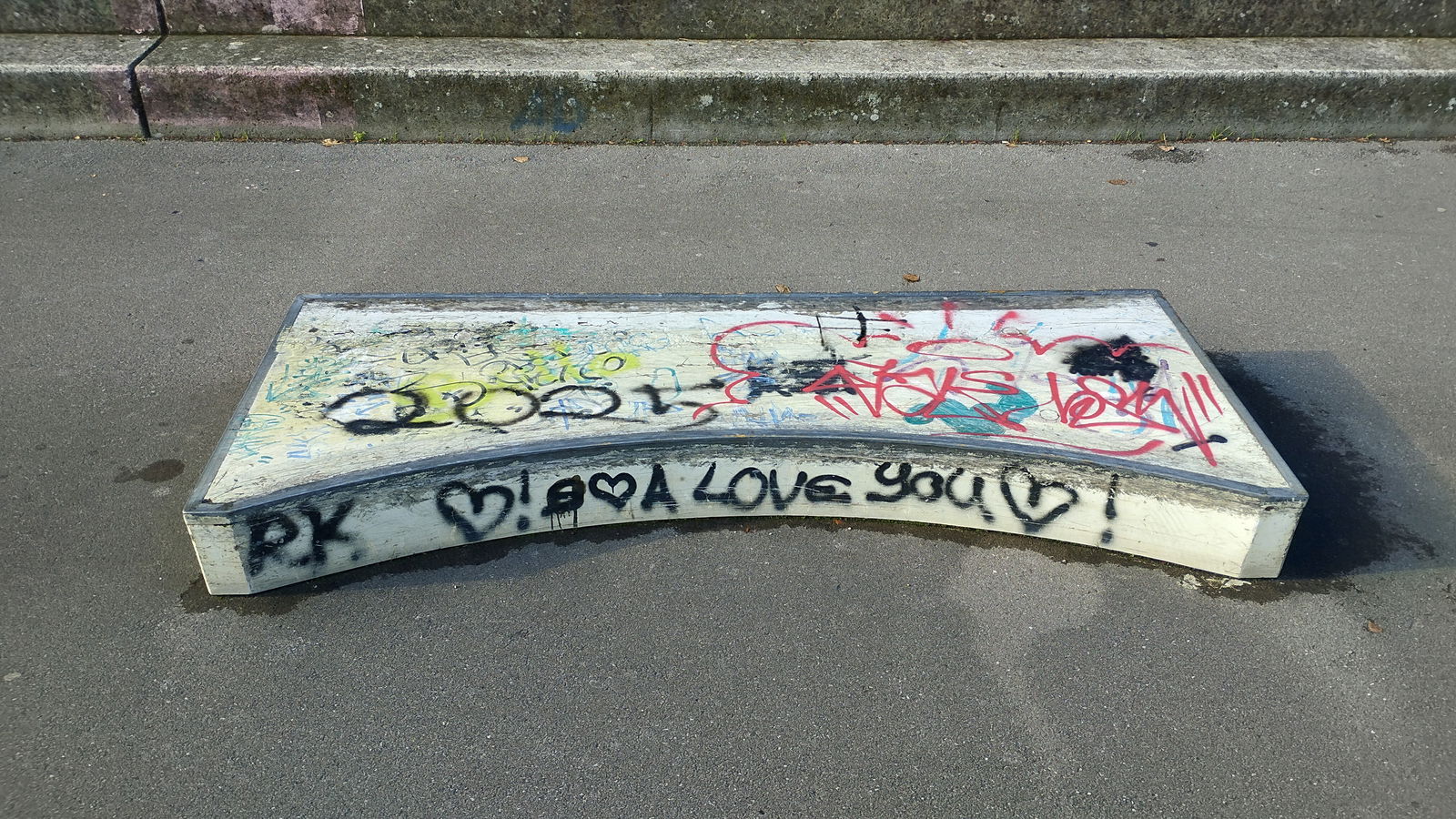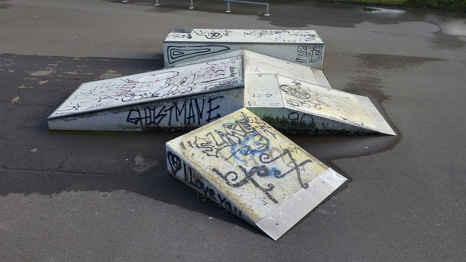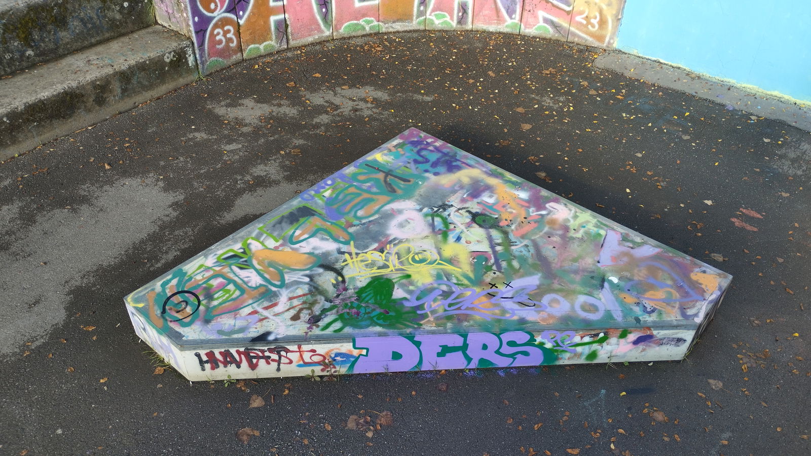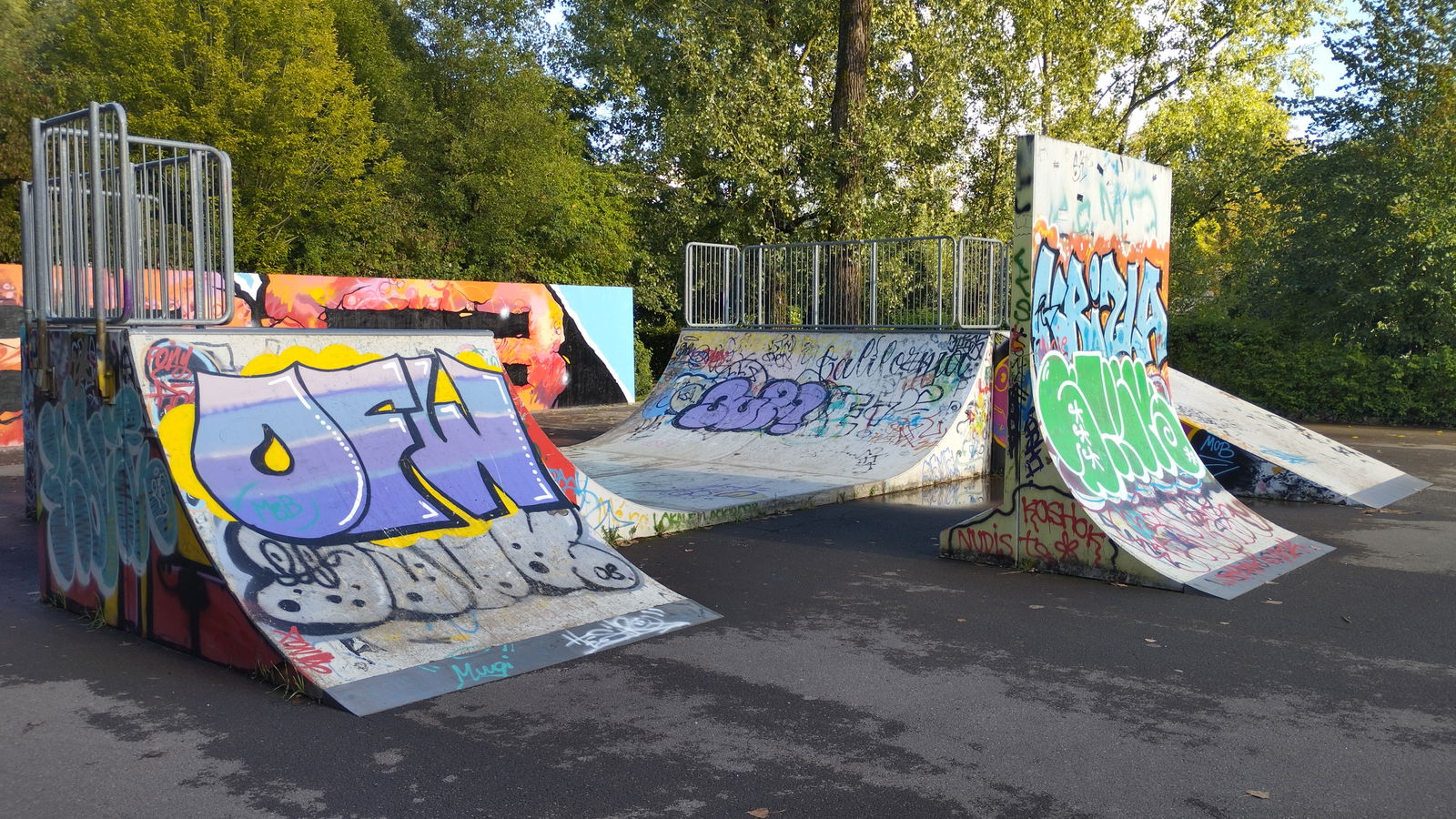 Pétange skatepark features several banks, quarters, funboxes and a miniramp.