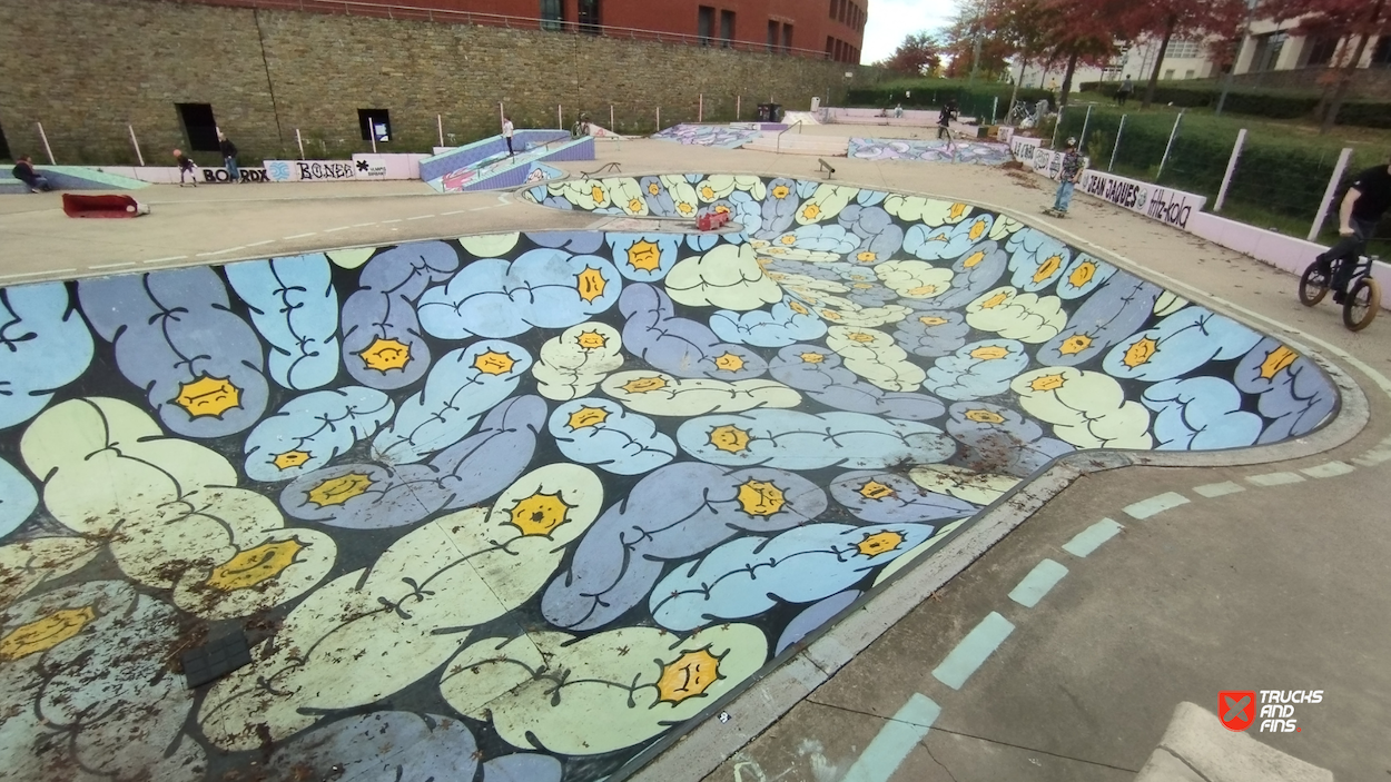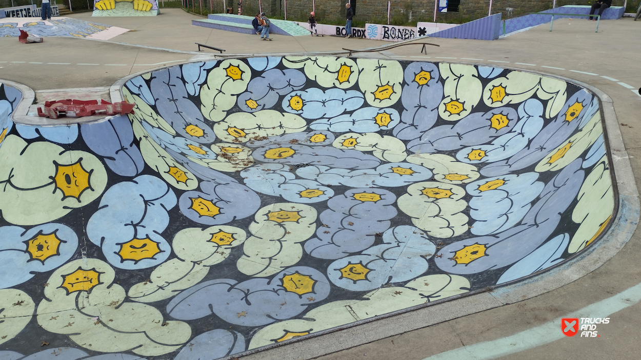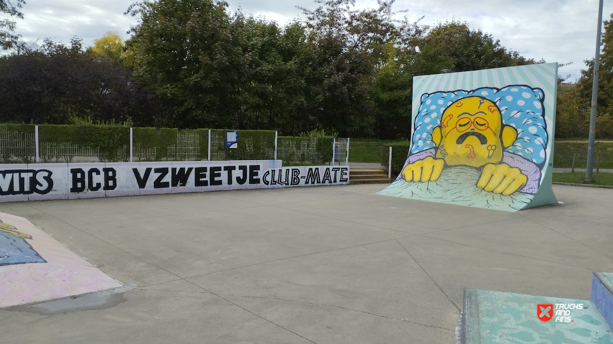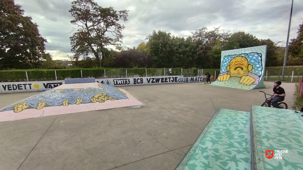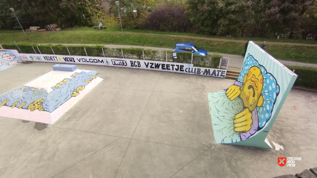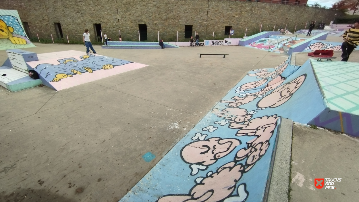 The Philipssite skatepark in Leuven features a bowl, a street section and a crazy wallride.