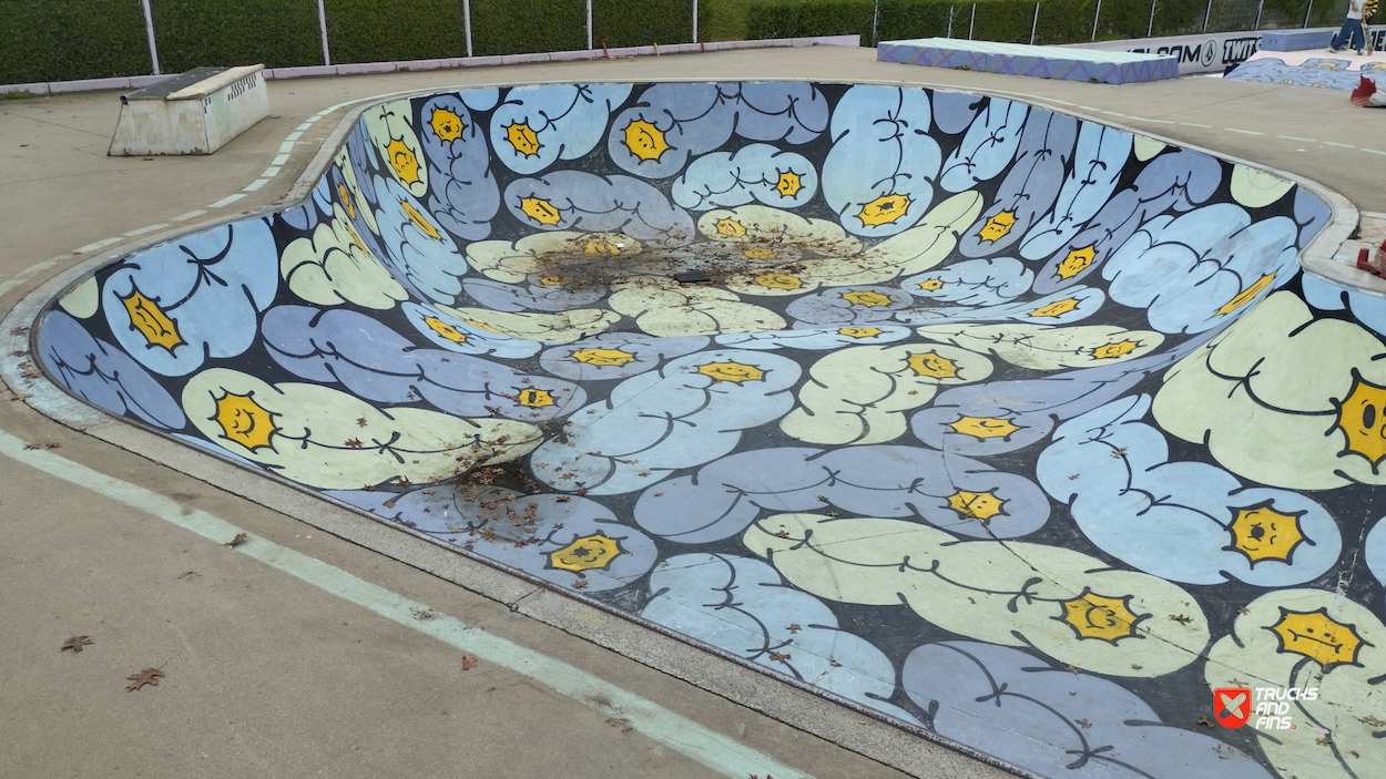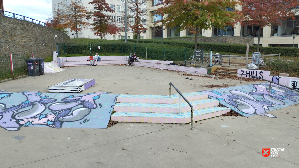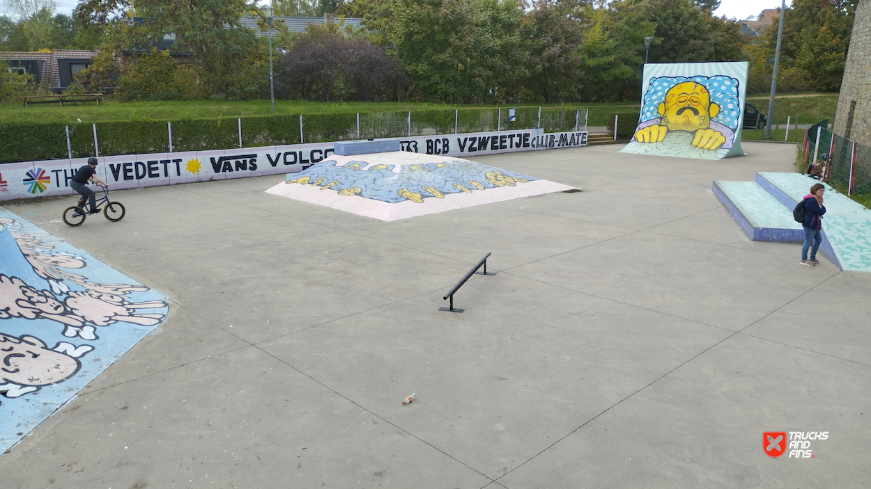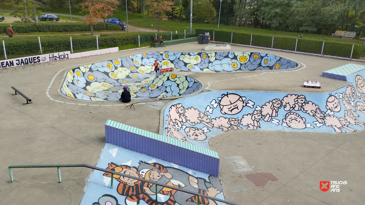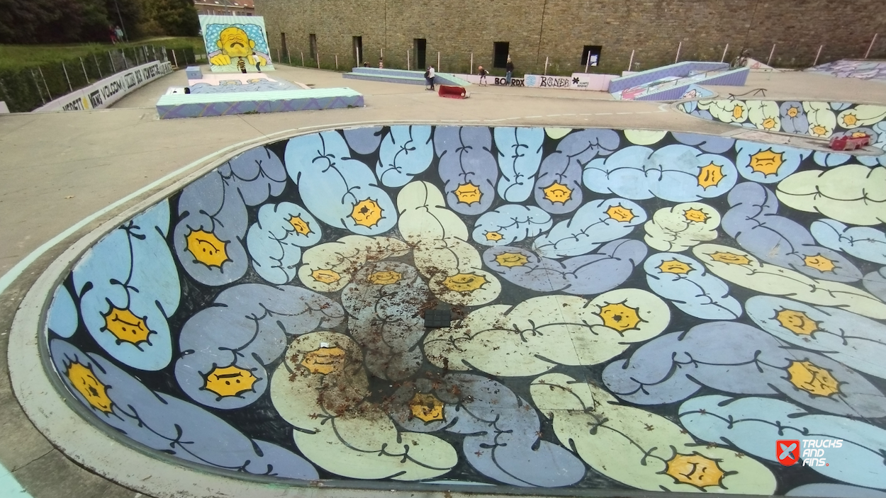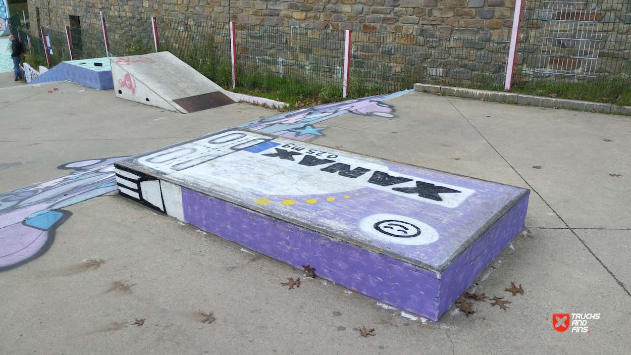 The Philipssite skatepark in Leuven features a bowl, a street section and a crazy wallride.