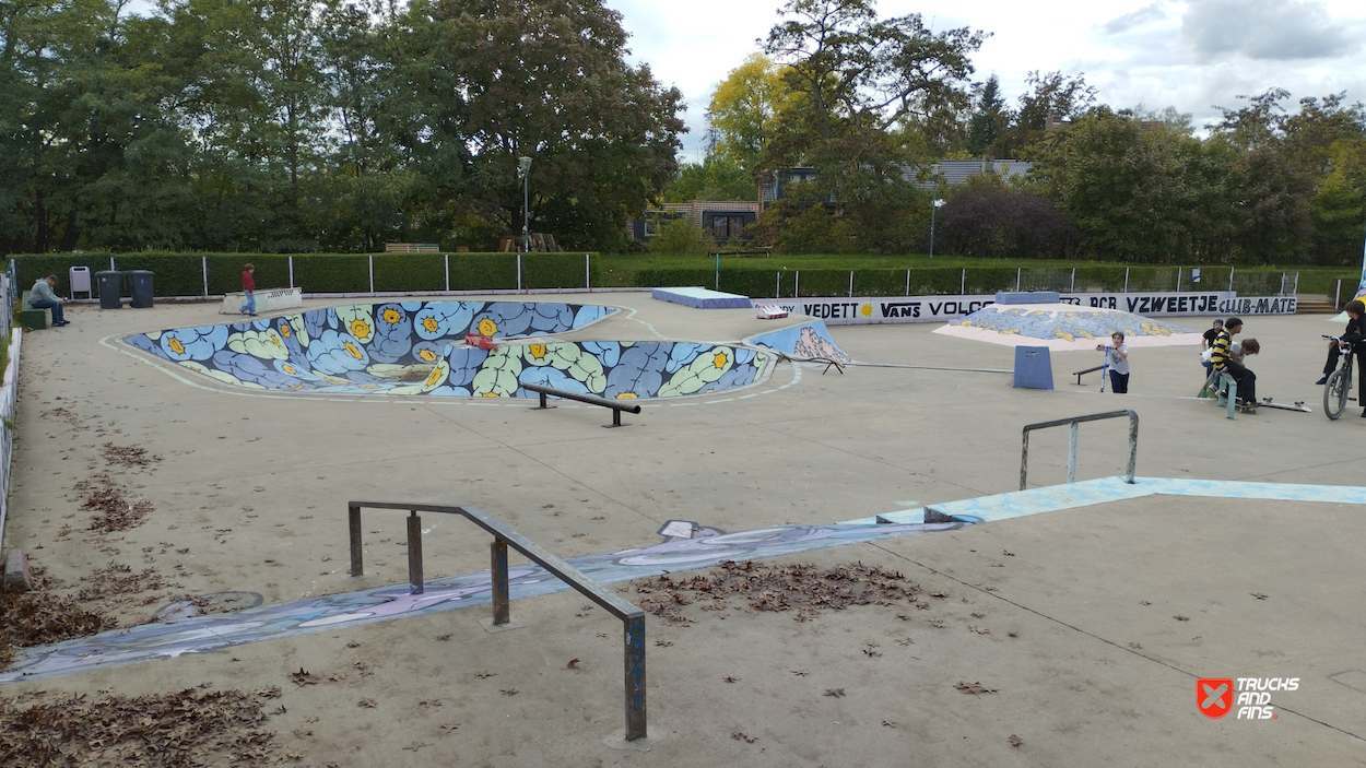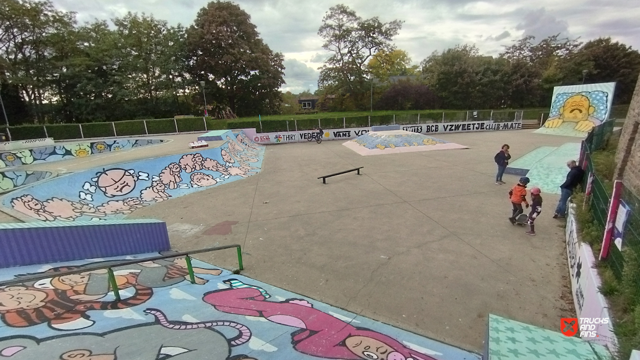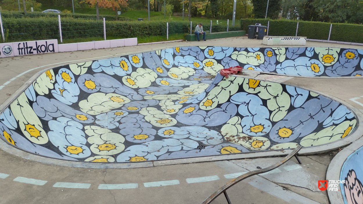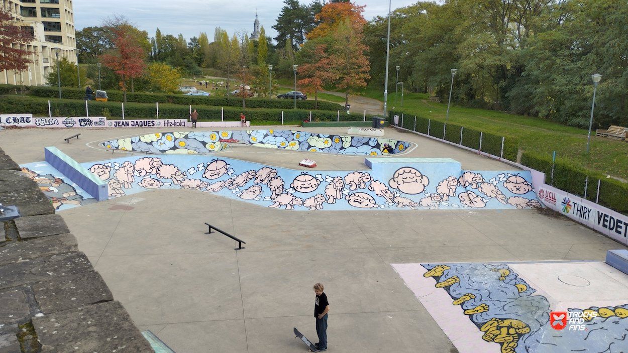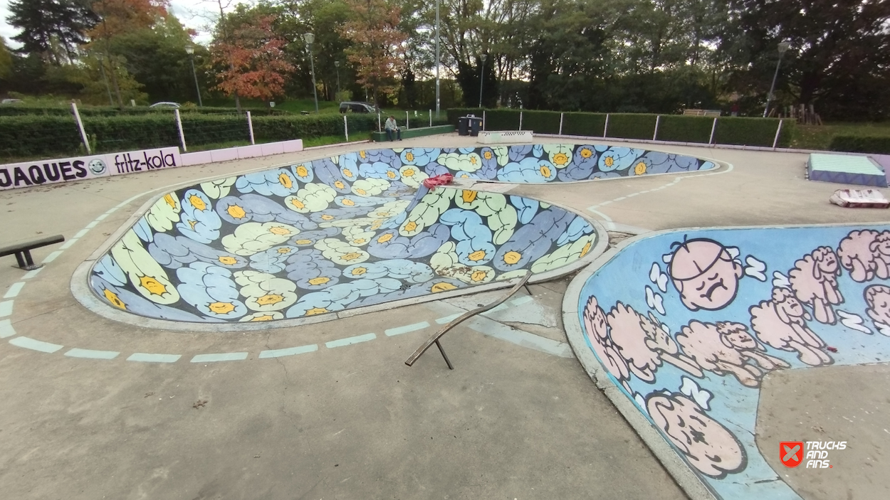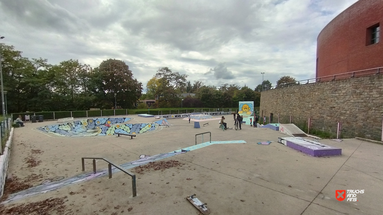 The Philipssite skatepark in Leuven features a bowl, a street section and a crazy wallride.
