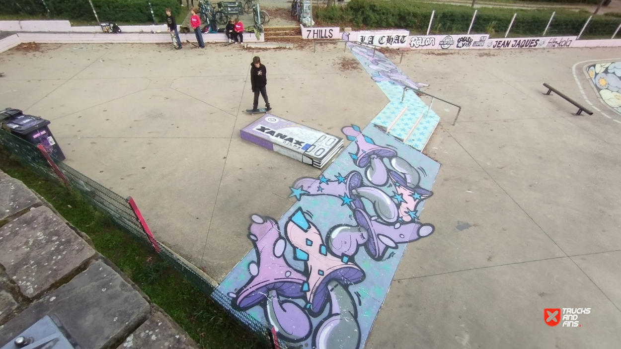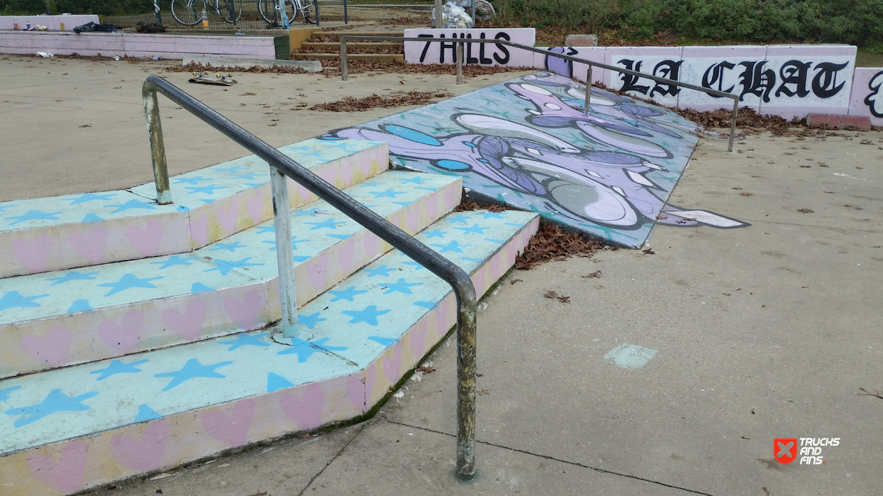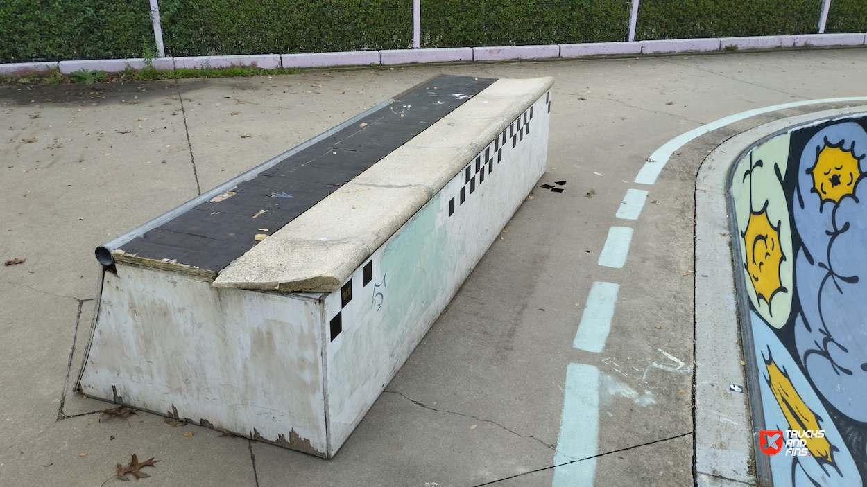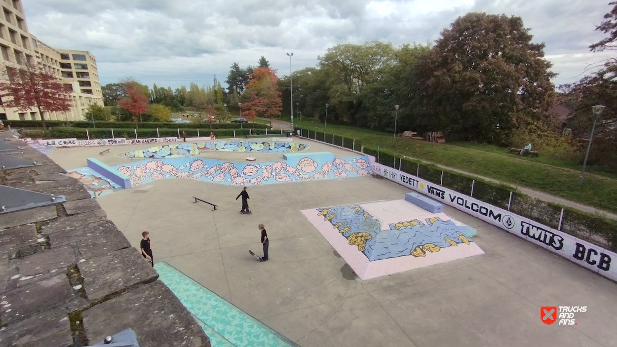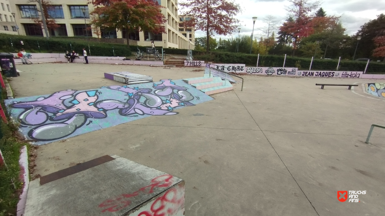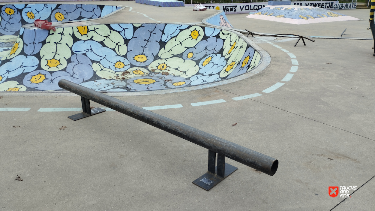 The Philipssite skatepark in Leuven features a bowl, a street section and a crazy wallride.
