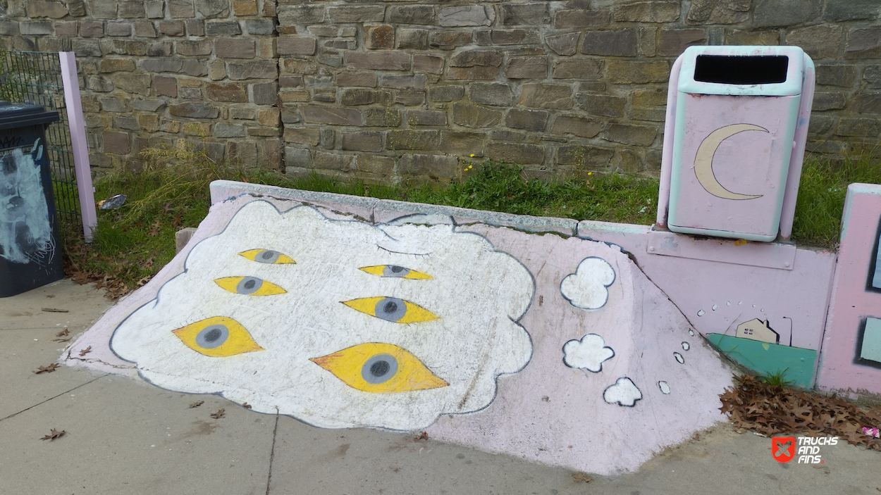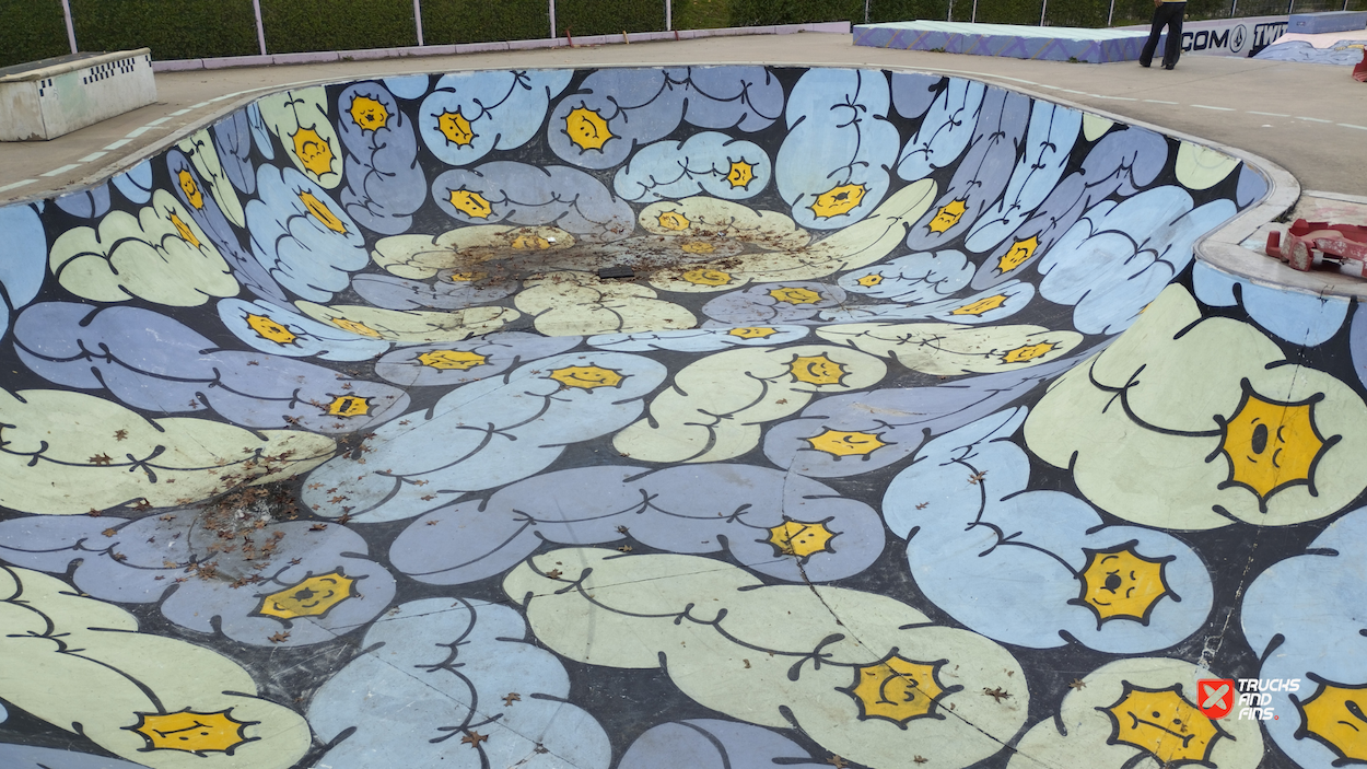 Very rough surface, concrete in bad quality. Painted bowl with good shape but difficult to skate due to painted pattern and bad concrete.