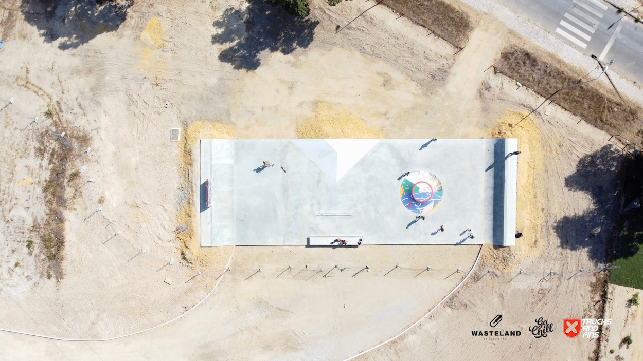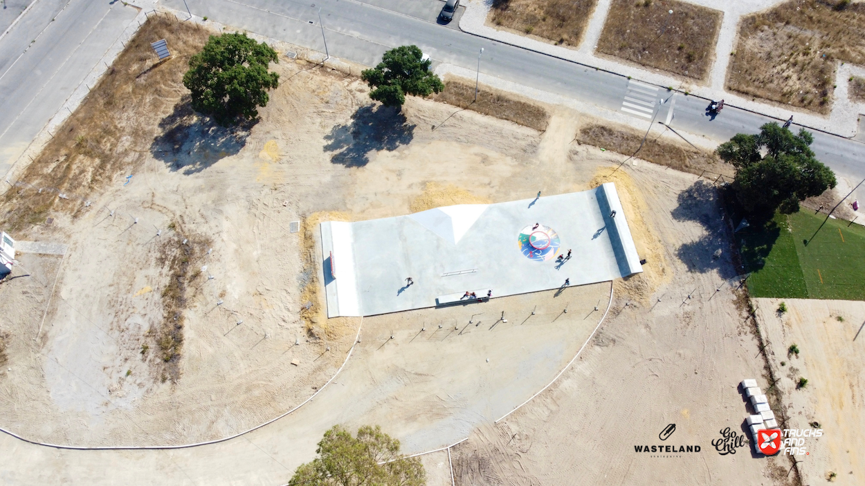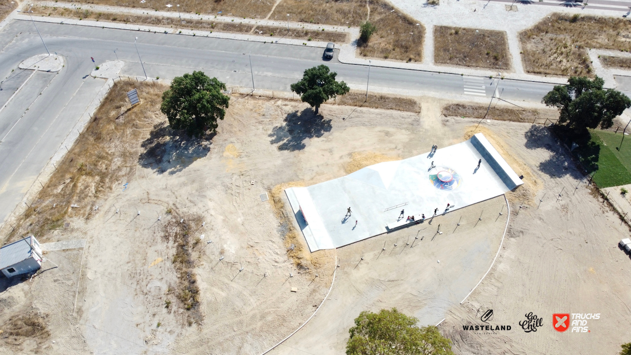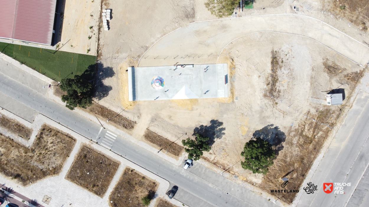 Pinhal Novo is a civil parish of the municipality of Palmela, a town located halfway between Lisbon and Setúbal, with a population of 27010 (2021). Located next to the Motoclube Pinhal Novo you will find the skatepark. Pinhal Novo skatepark is a concrete park with several basic obstacles in a back and forth setup, designed and built by Wasteland Skateparks in 2021.