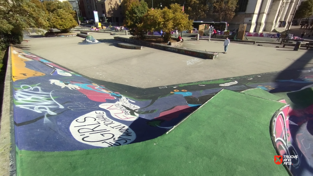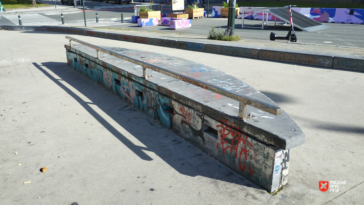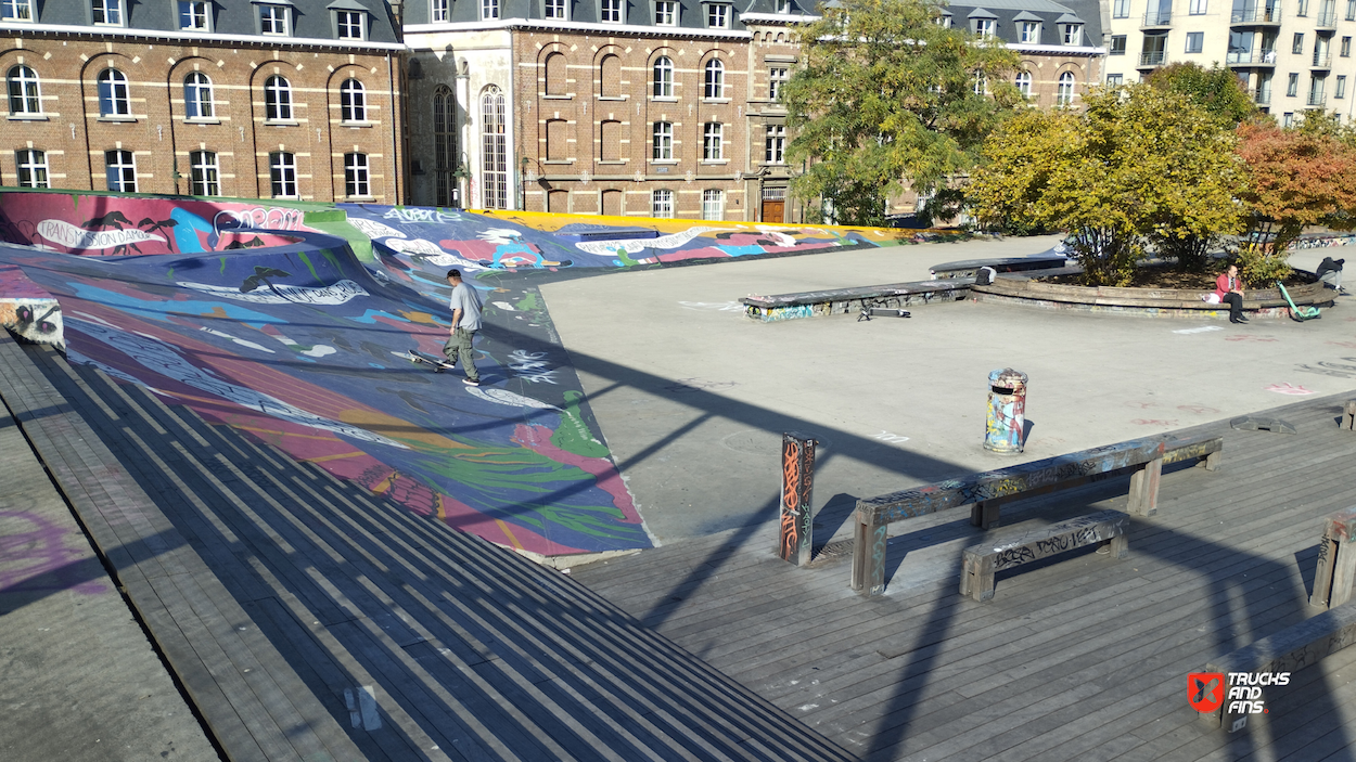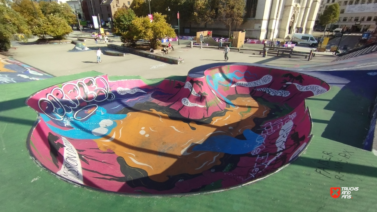 Skatepark Place de la Chapelle, also known as Skatepark des Ursulines, features a bowl and street area full of ledges and manual pads.