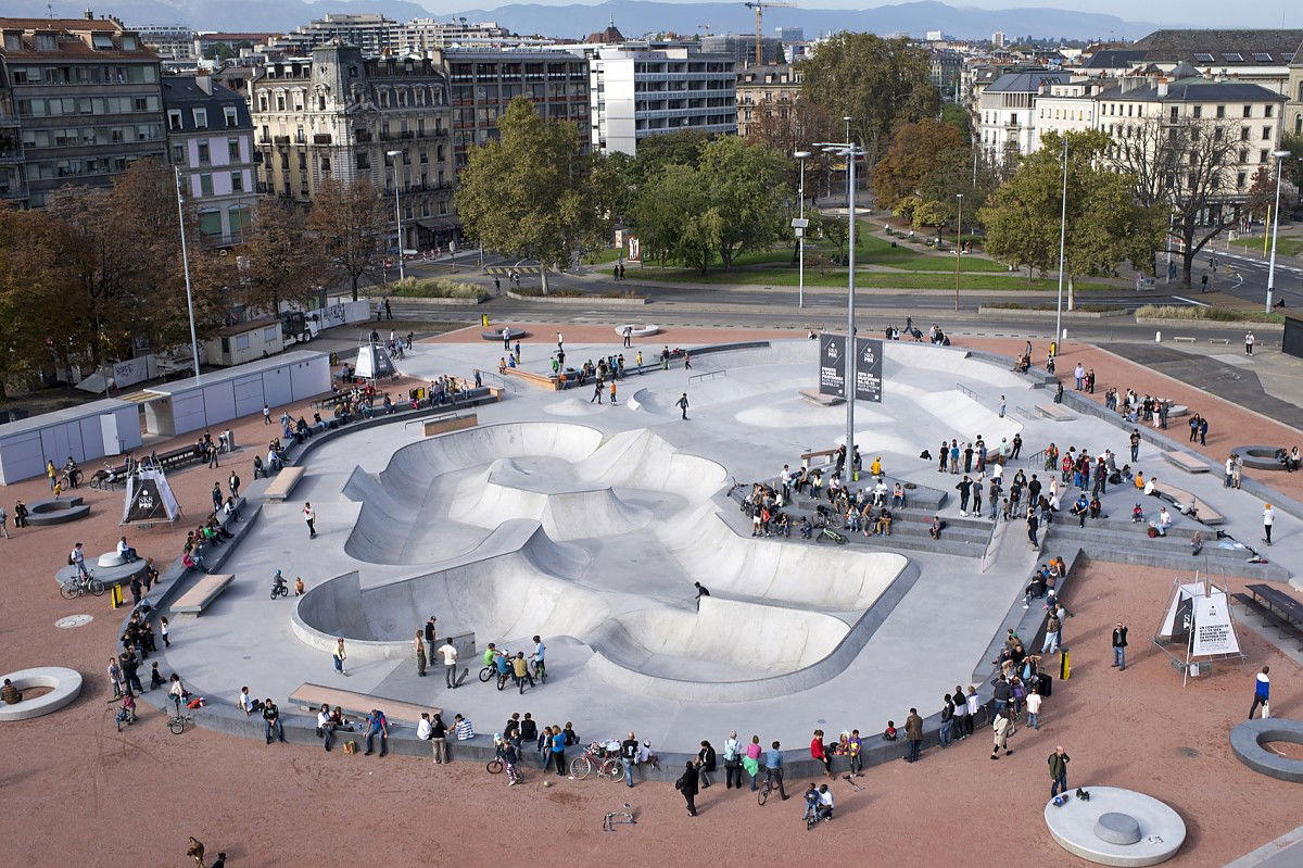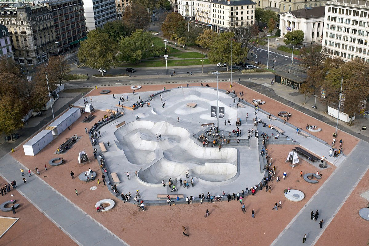 The 3050 m² skatepark of Plainpalais was designed and built by Constructo skateparks, groupement Circus (ADR + Carlos Lopez) and BET Pillet in 2012. Total estimated cost: 1560000€.