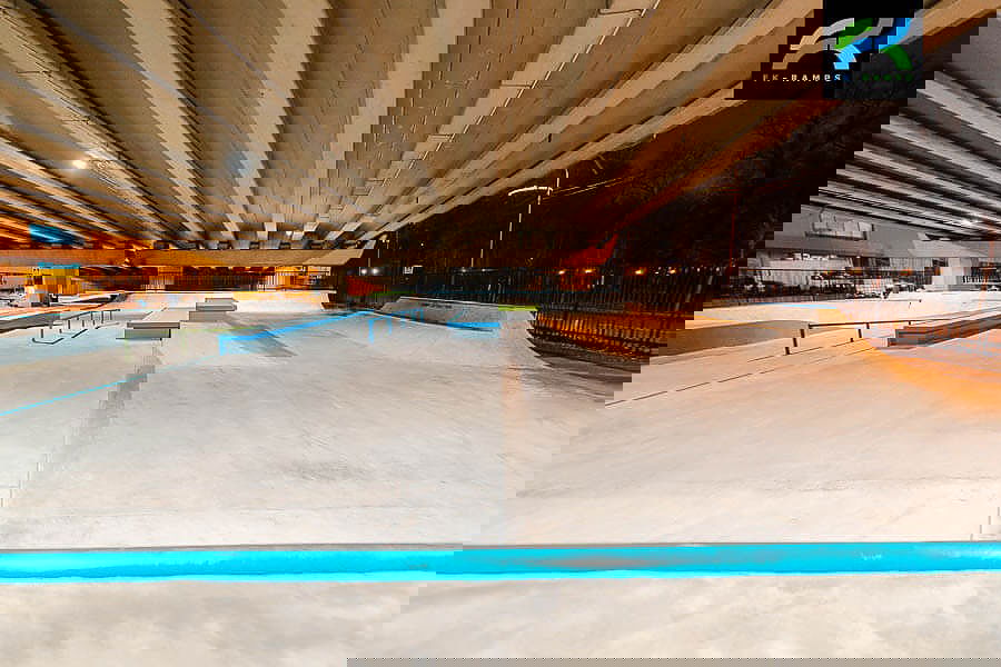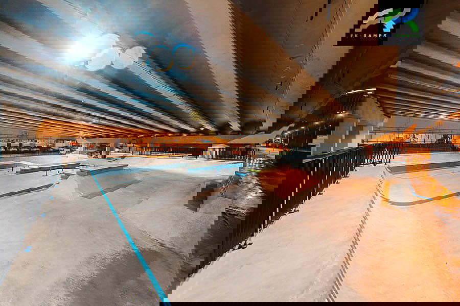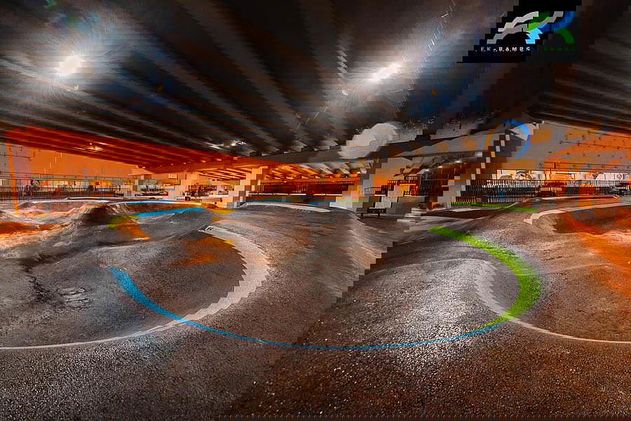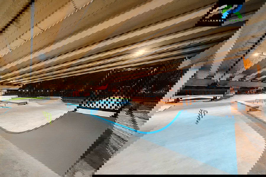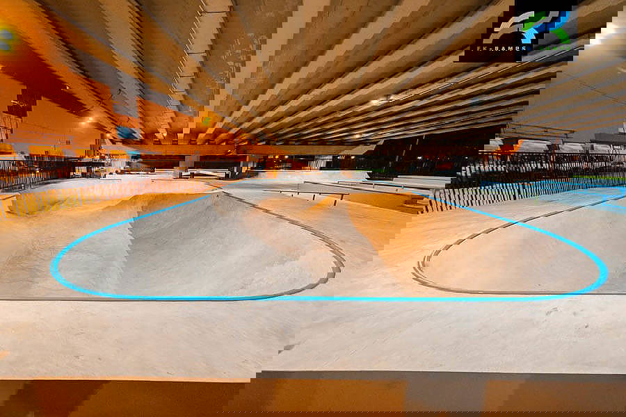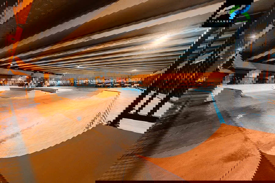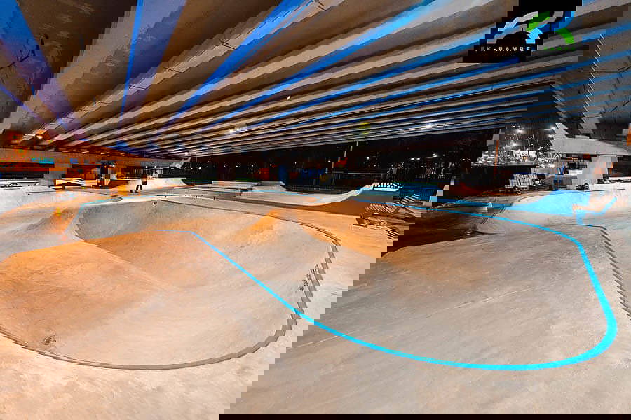 Podyezdnoy skatepark is a concrete park located under a bridge overpass. The skatepark was built by FKramps and features a bowl, pumptrack and street section.