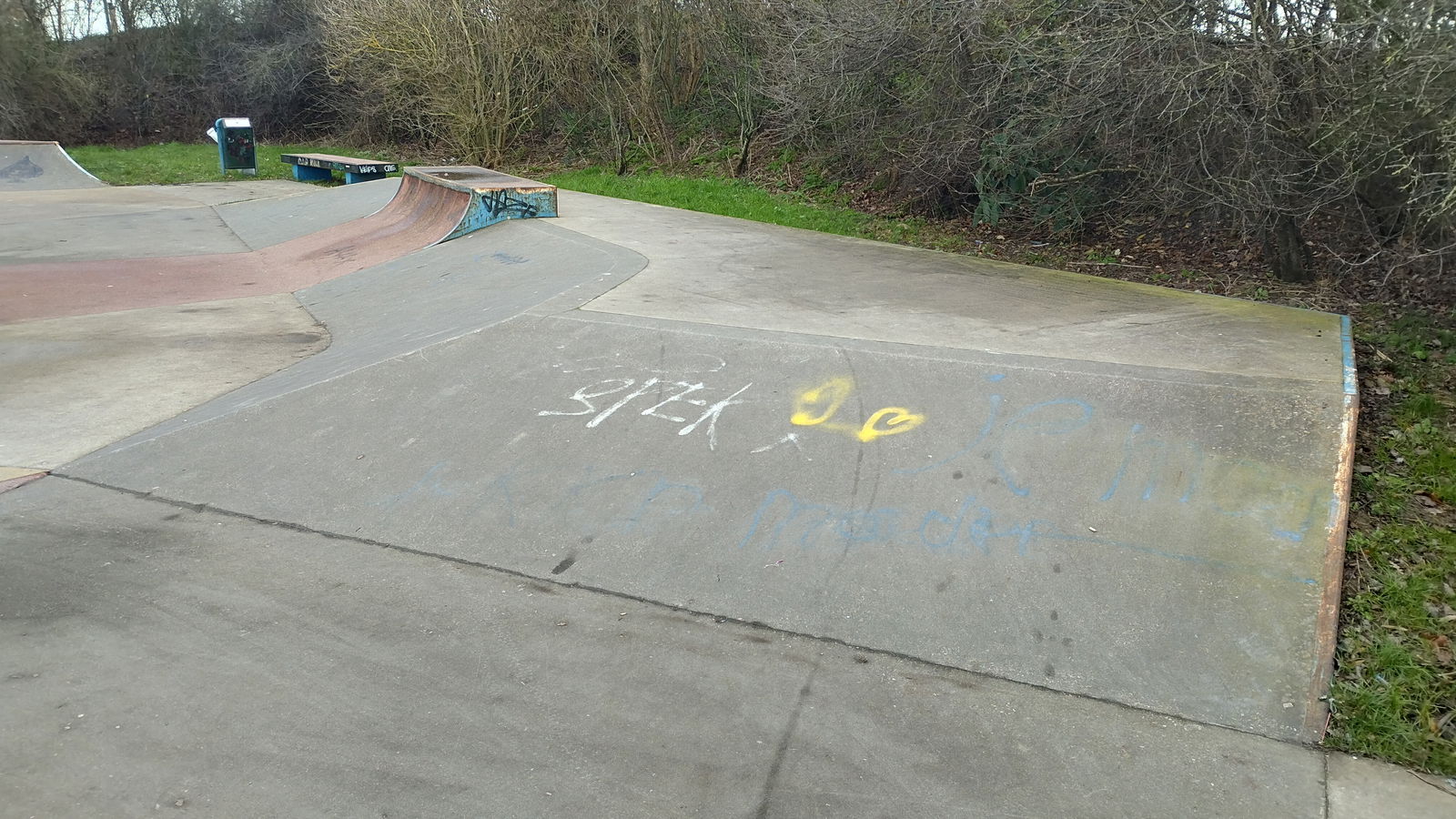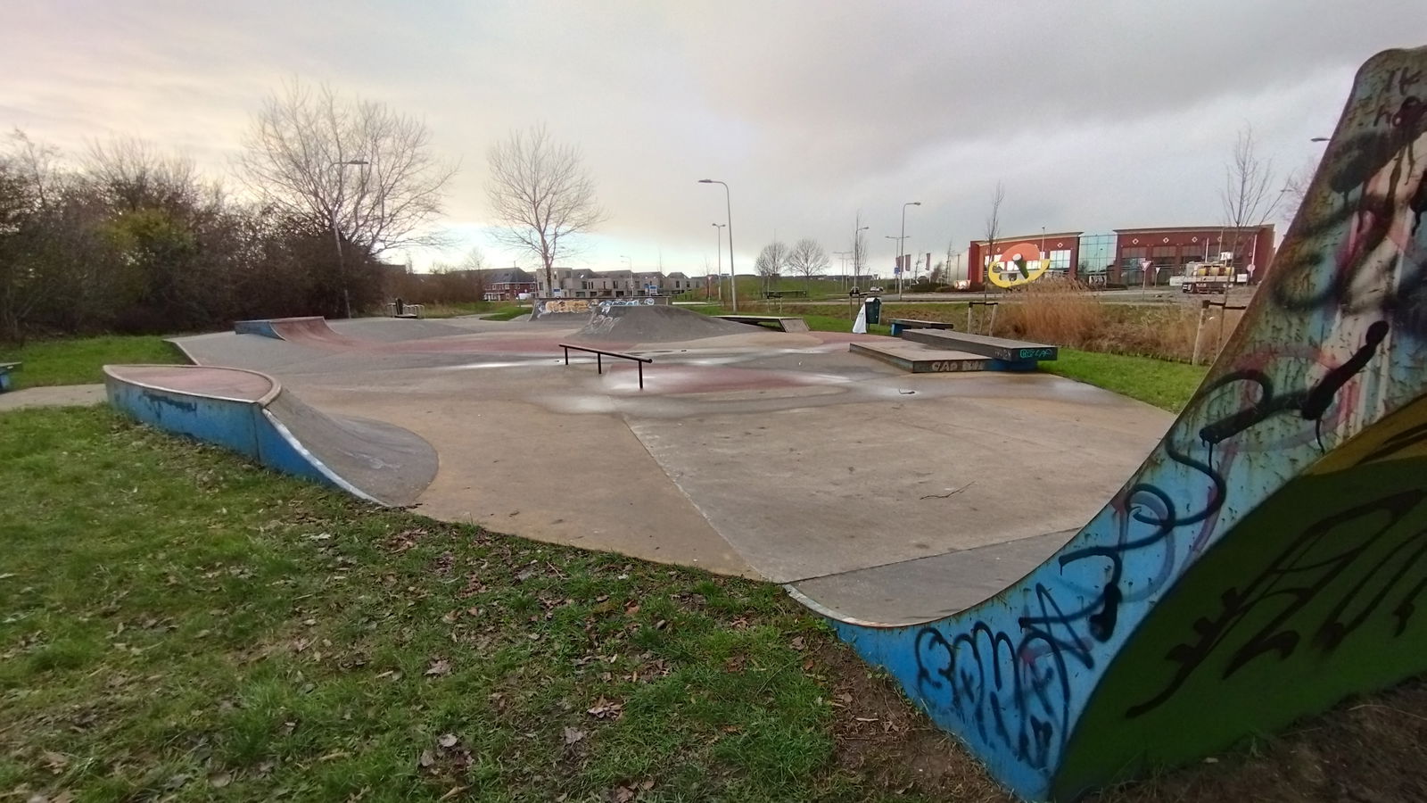 Its location within a green space adds to its appeal, providing a relaxed environment for skaters to practice and hang out. Additionally, the park's proximity to other recreational areas makes it a popular destination for both locals and visitors from nearby towns.