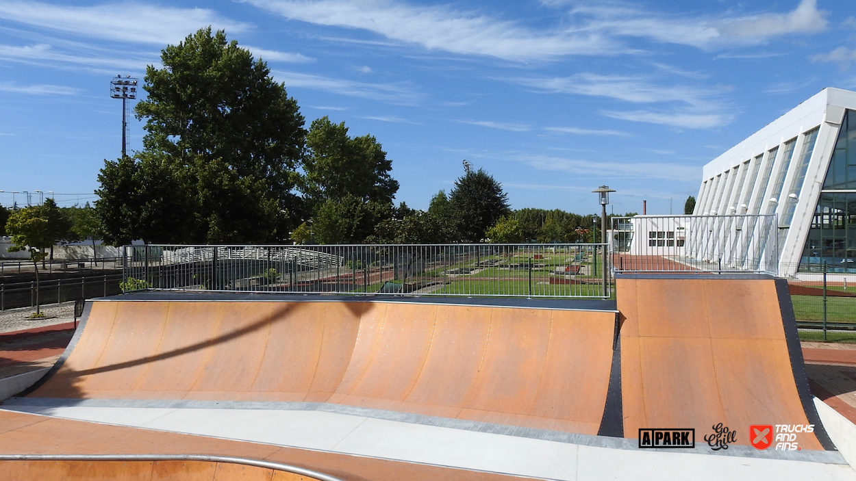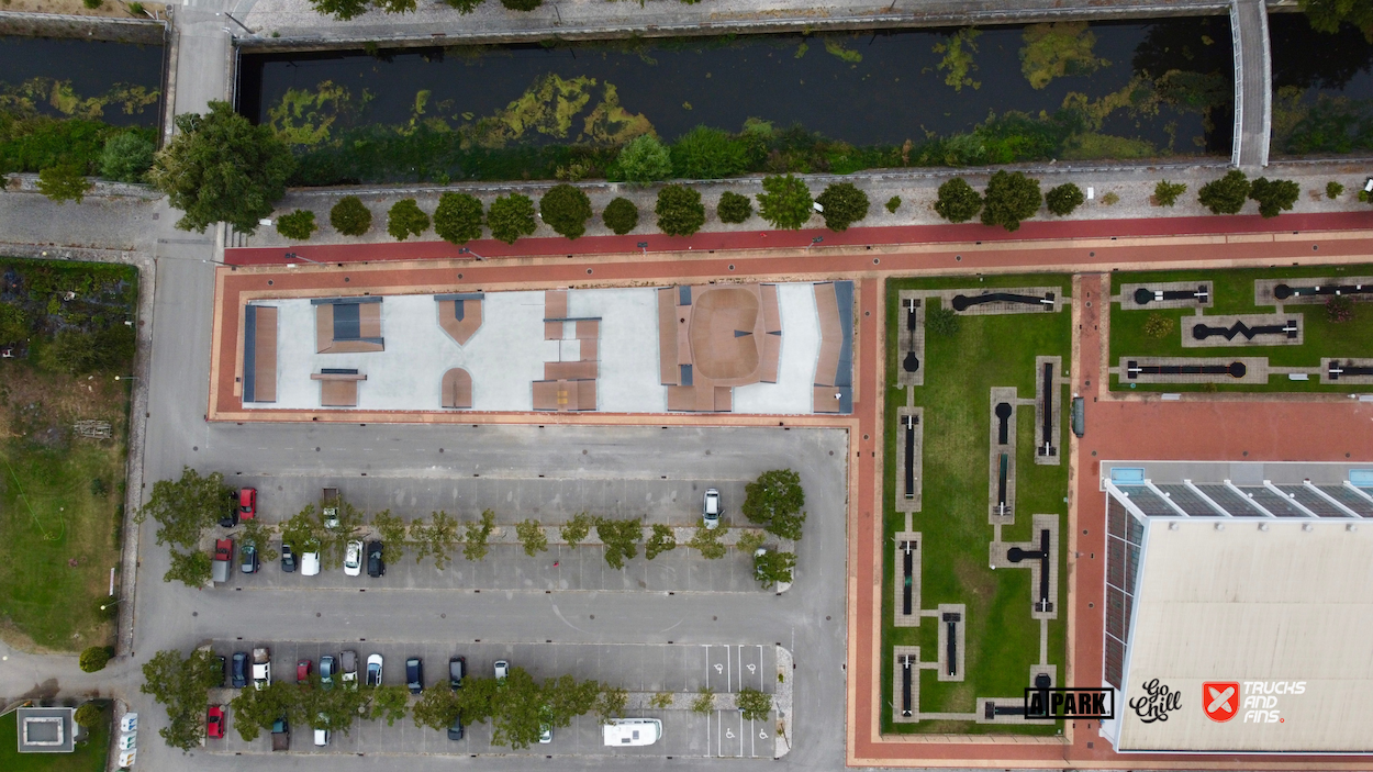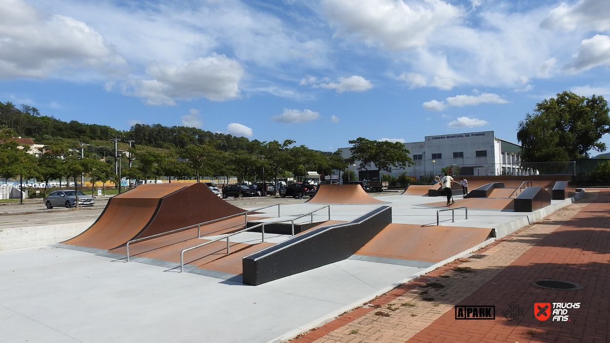 Pombal skatepark is a wooden park made up of a bowl and street section. The Skatepark of Pombal is located in the city's sports complex, right next to the municipal indoor swimming pools in the Leiria district. Covering a spacious area of approximately 1,000m², this large park caters to both advanced skaters and beginners, offering designated zones for all skill levels. The park features an array of obstacles designed to challenge and excite, including a bowl, spine, pyramids, quarter pipes of varying sizes, inclines, jump boxes, handrails, and a variety of curbs. With a mix of easy and more advanced transfers, the layout is crafted to accommodate multiple skating disciplines, ensuring a versatile experience for everyone, from novices to seasoned skaters.