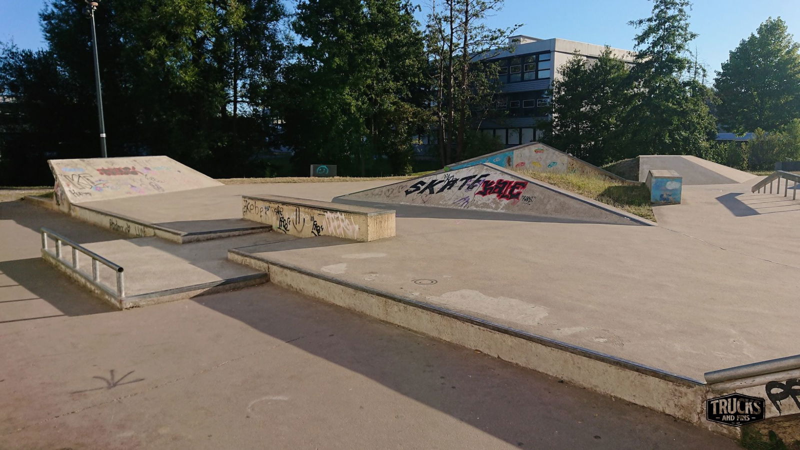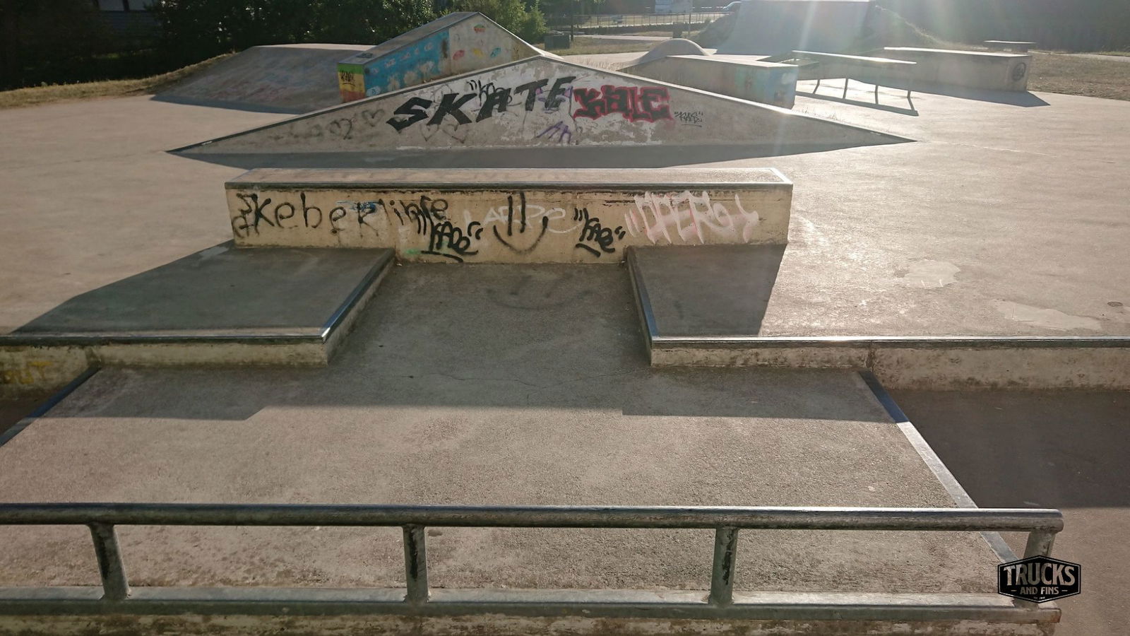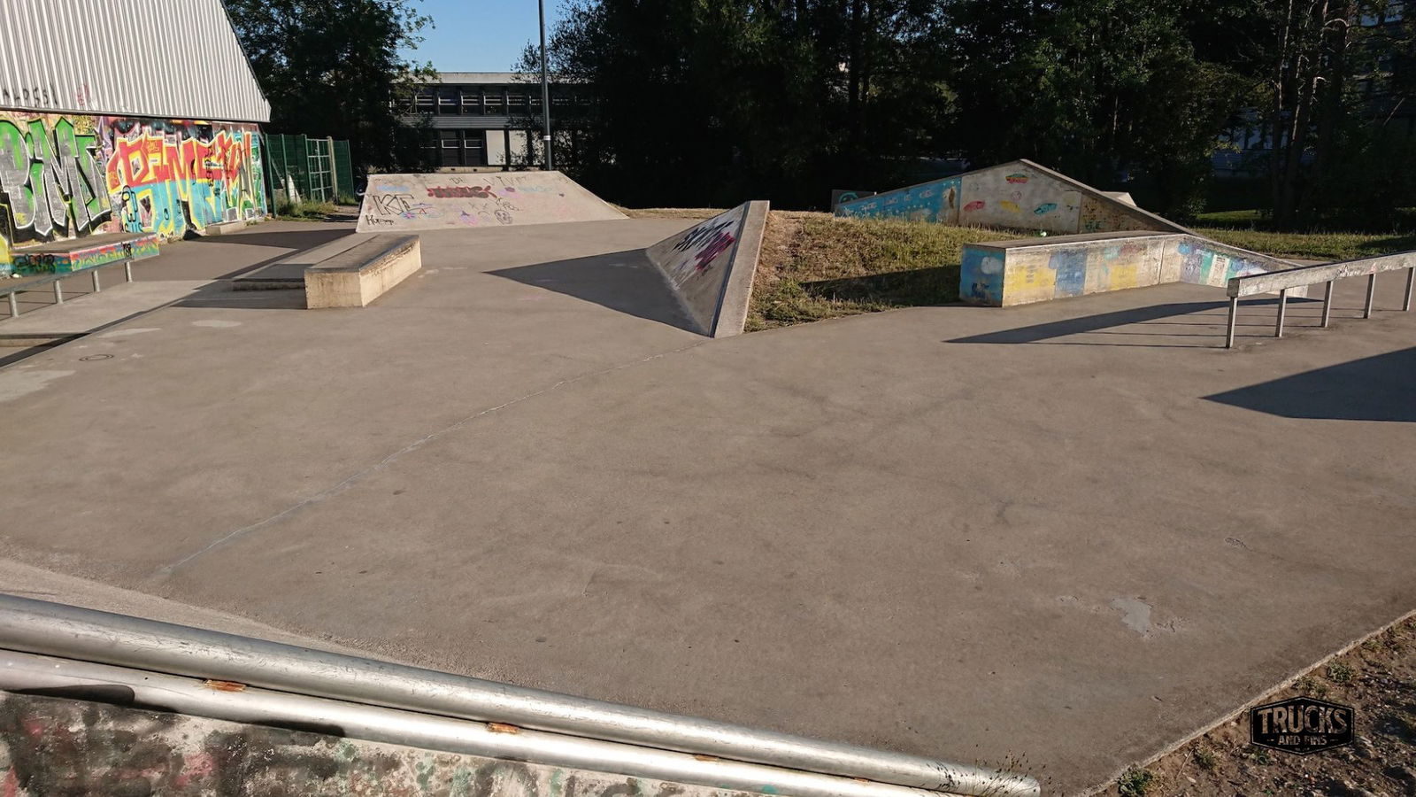 Concrete street skatepark with a good flow, with some fun obstacles and transitions. The concrete surface is showing wear. Sadly the area is not kept clean by its users or the local instances.