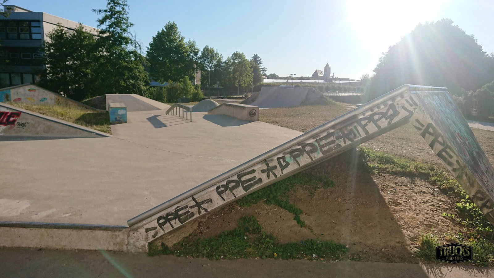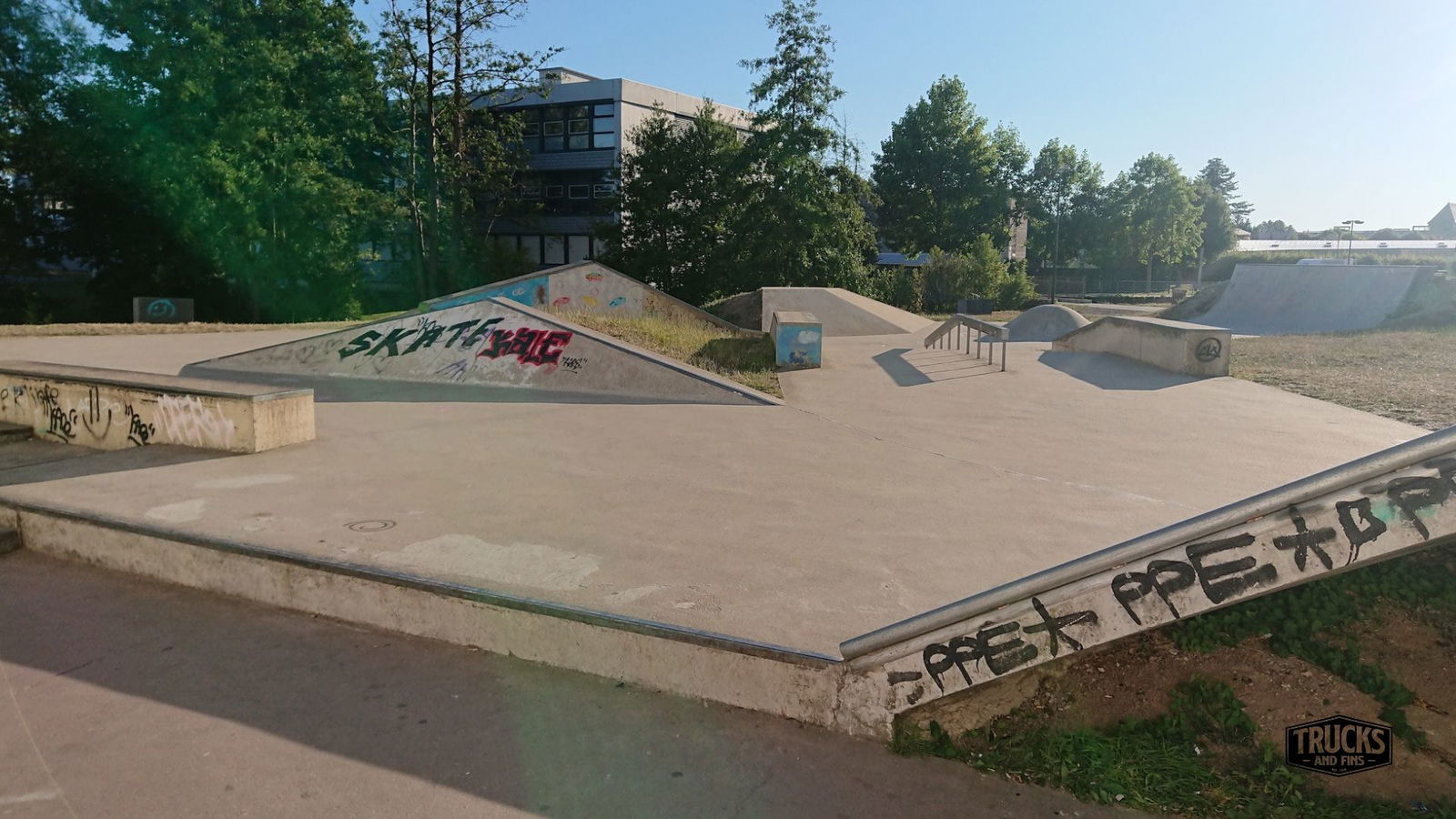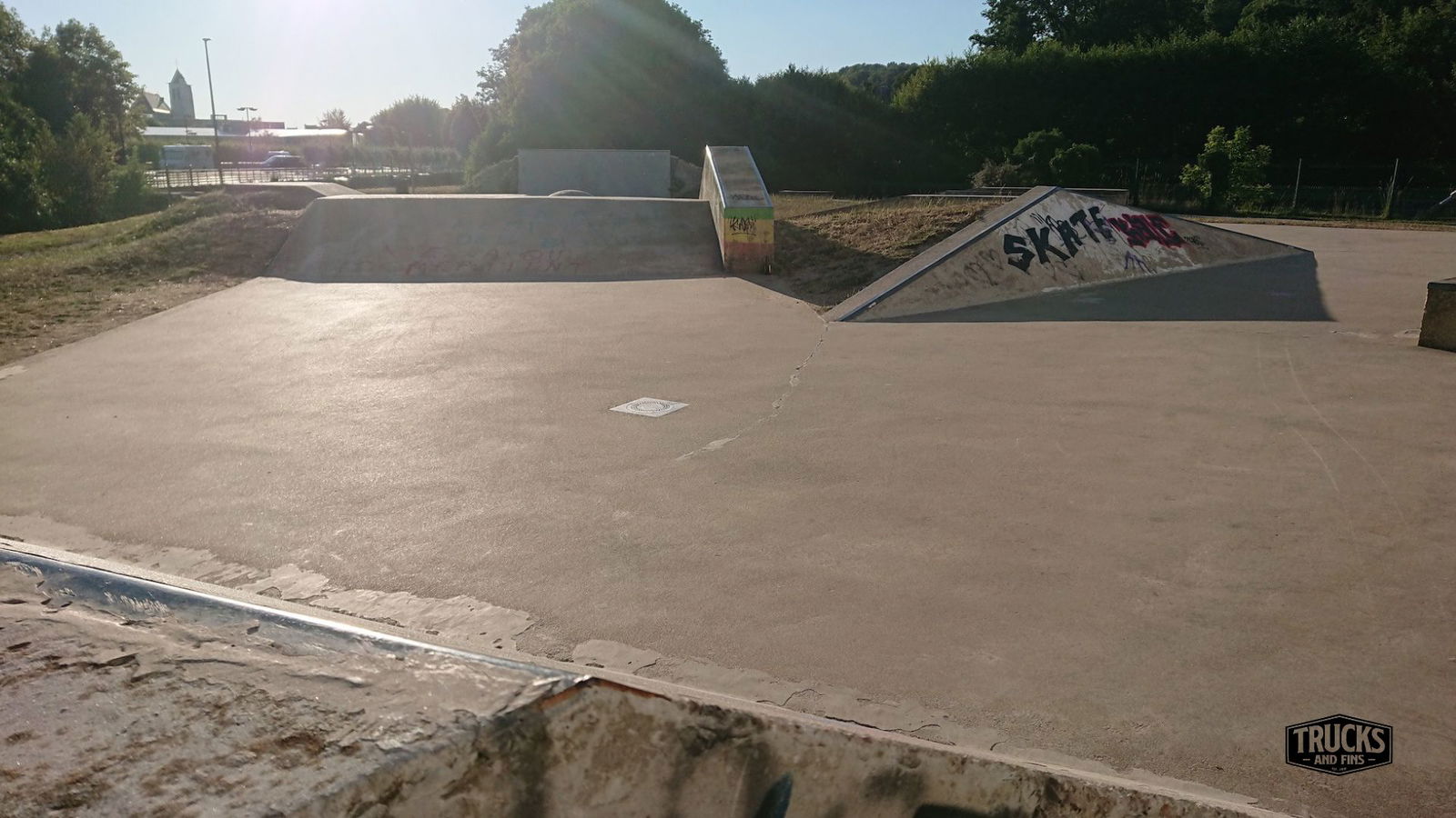 Concrete street skatepark with a good flow, with some fun obstacles and transitions. The concrete surface is showing wear. Sadly the area is not kept clean by its users or the local instances.