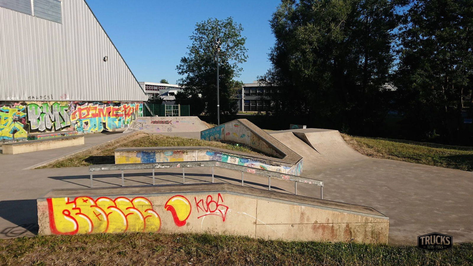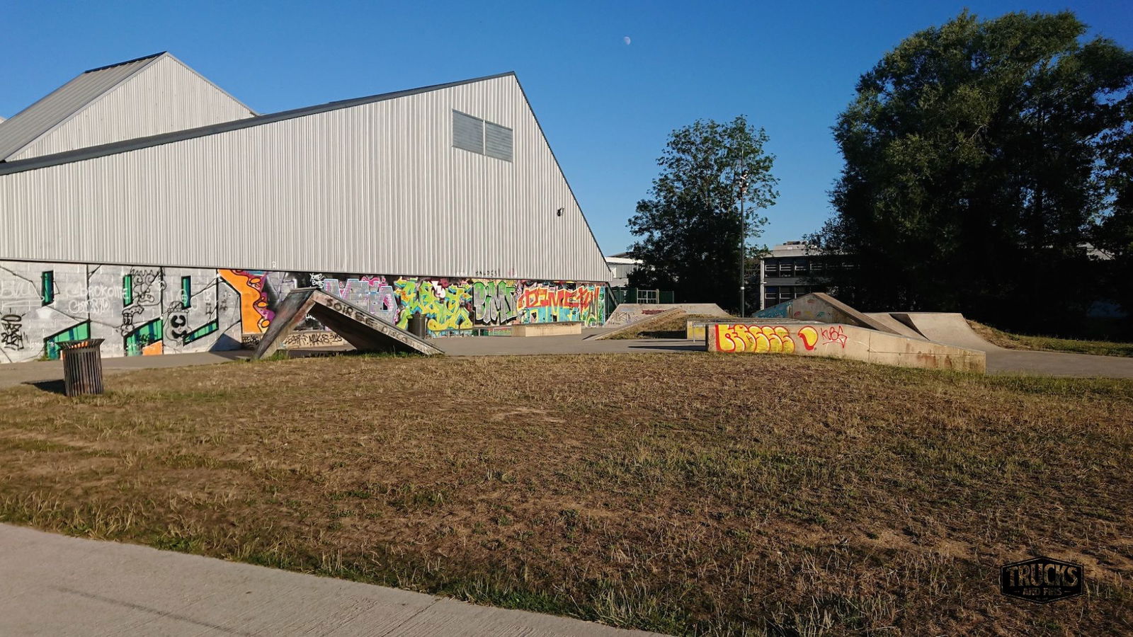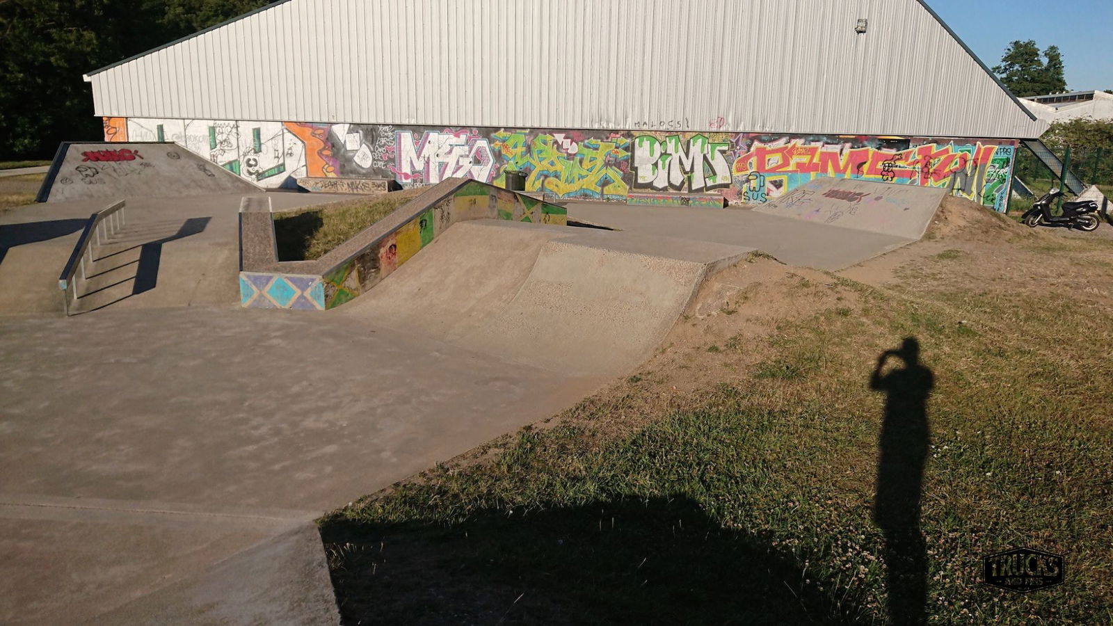 The 490 m² Pont-Audemer skatepark was designed and built by Constructo Skateparks in 2013. Total estimated cost: 100000€.