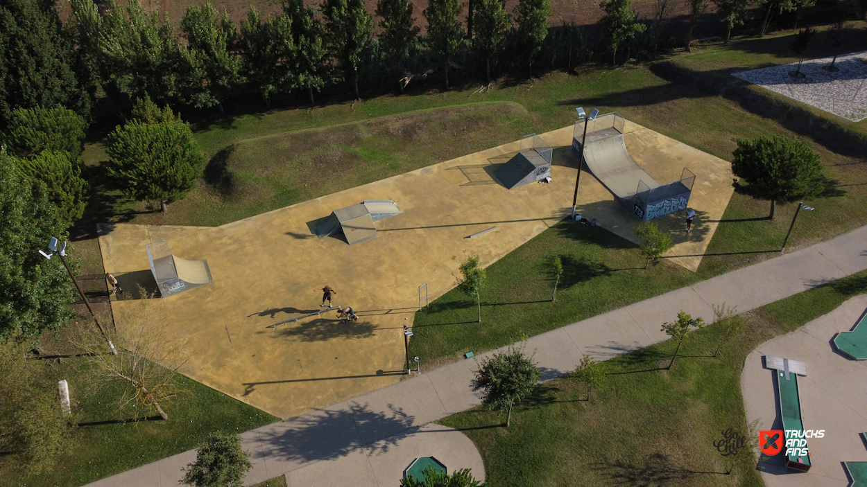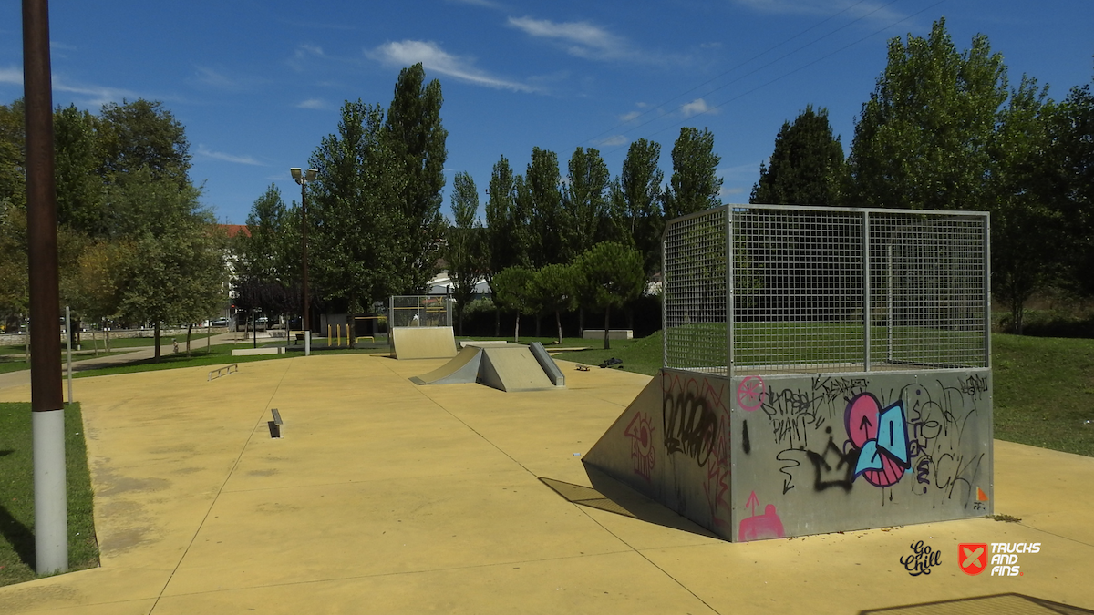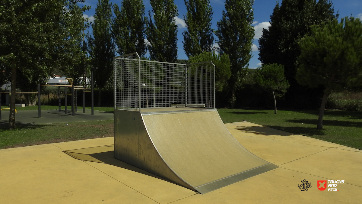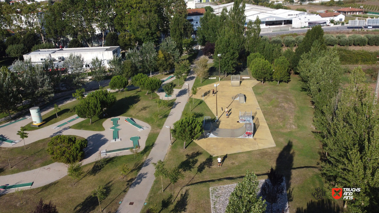 Porto de Mós is a Portuguese town and a municipality of the Estremadura province in the District of Leiria, with a population of 23211 (Census 2021). Located in the Parque Verde de Porto de Mós park you will find the skatepark of Porto de Mós. The park is made up of a back and forth run with a quarter pipe and bank on the sides of a funbox and also features a miniramp.