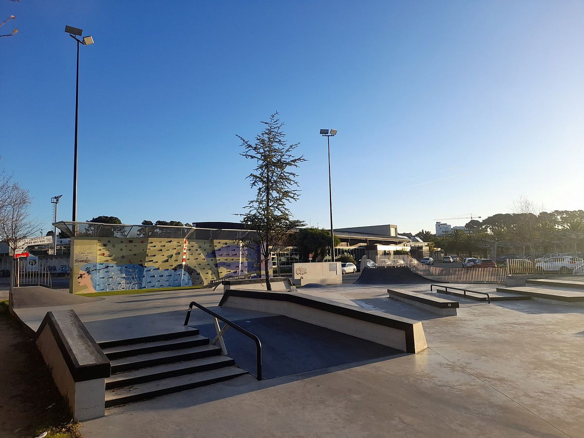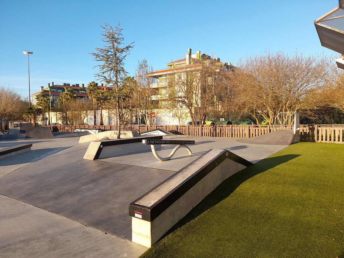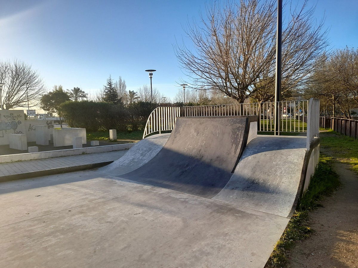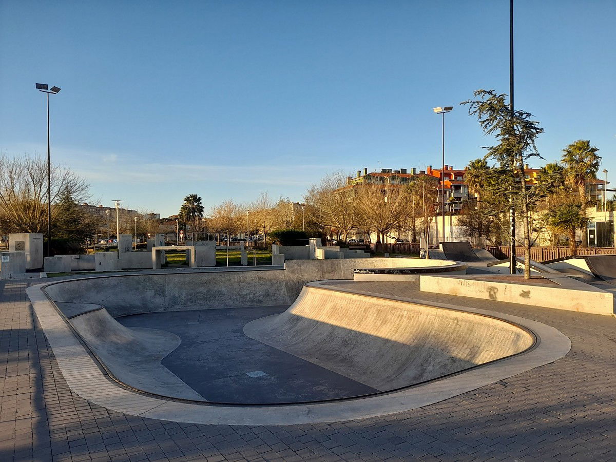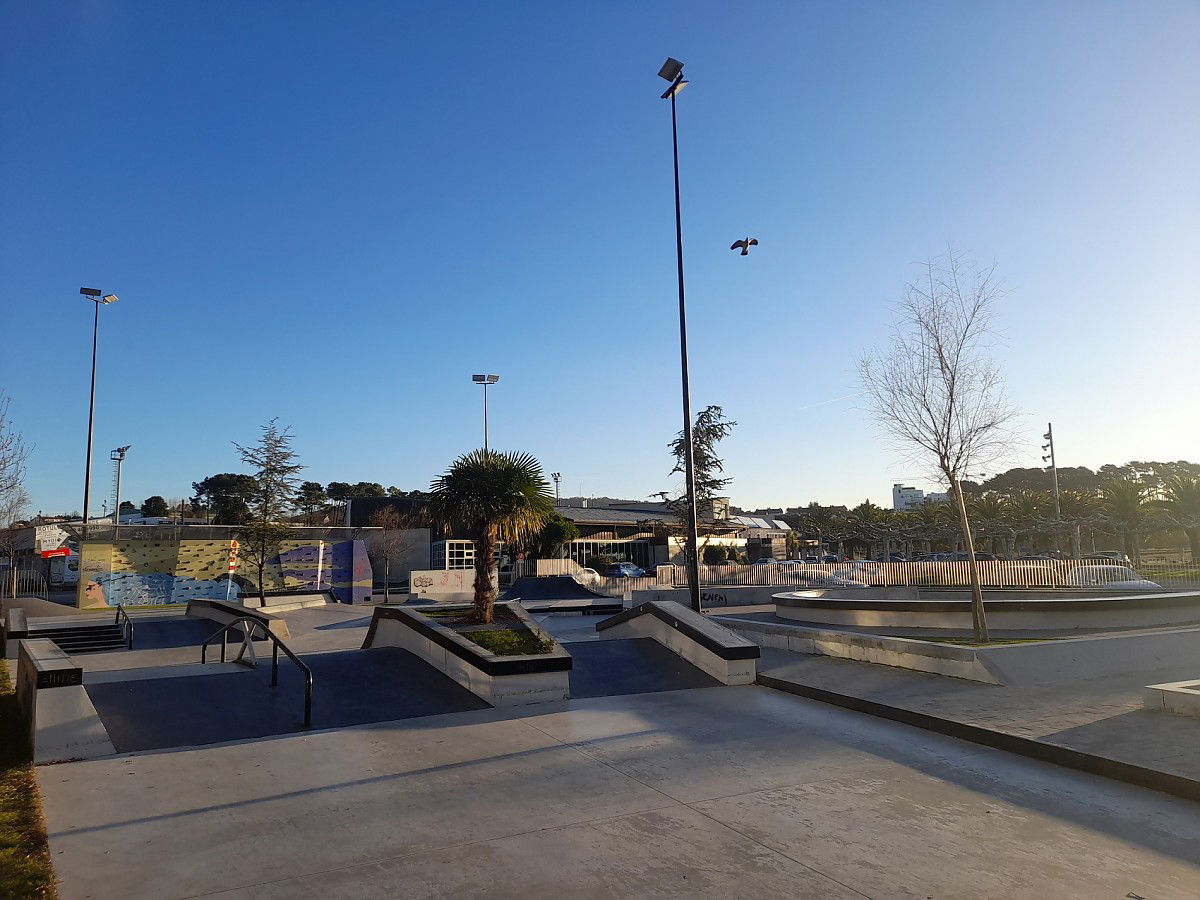 Portonovo Skatepark is a concrete park featuring a bowl and nice street area with a nice variety of obstacles to hit.