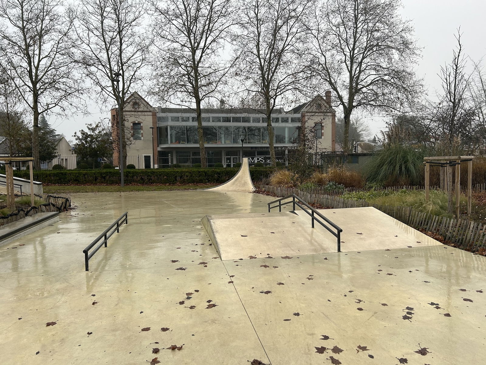 Poutyl Skatepark features a miniramp and several basic skateboarding obstacles.