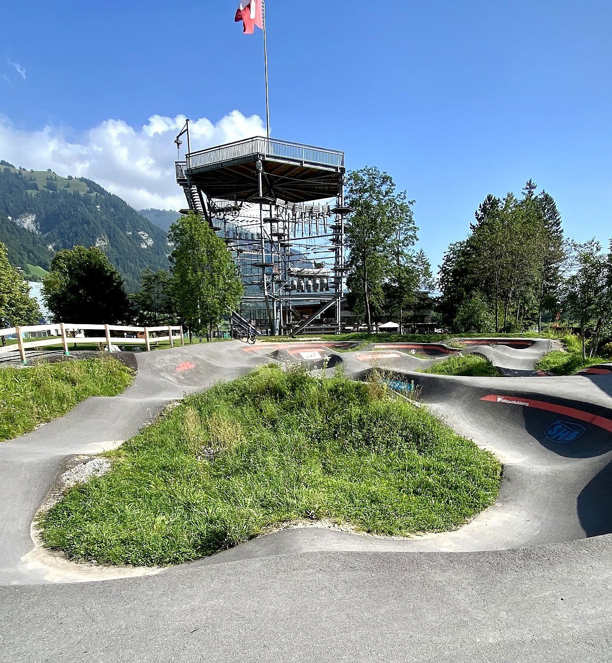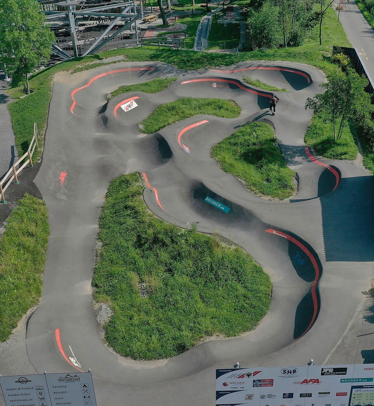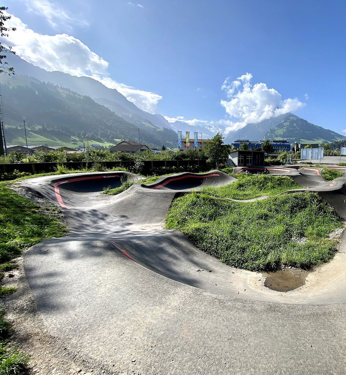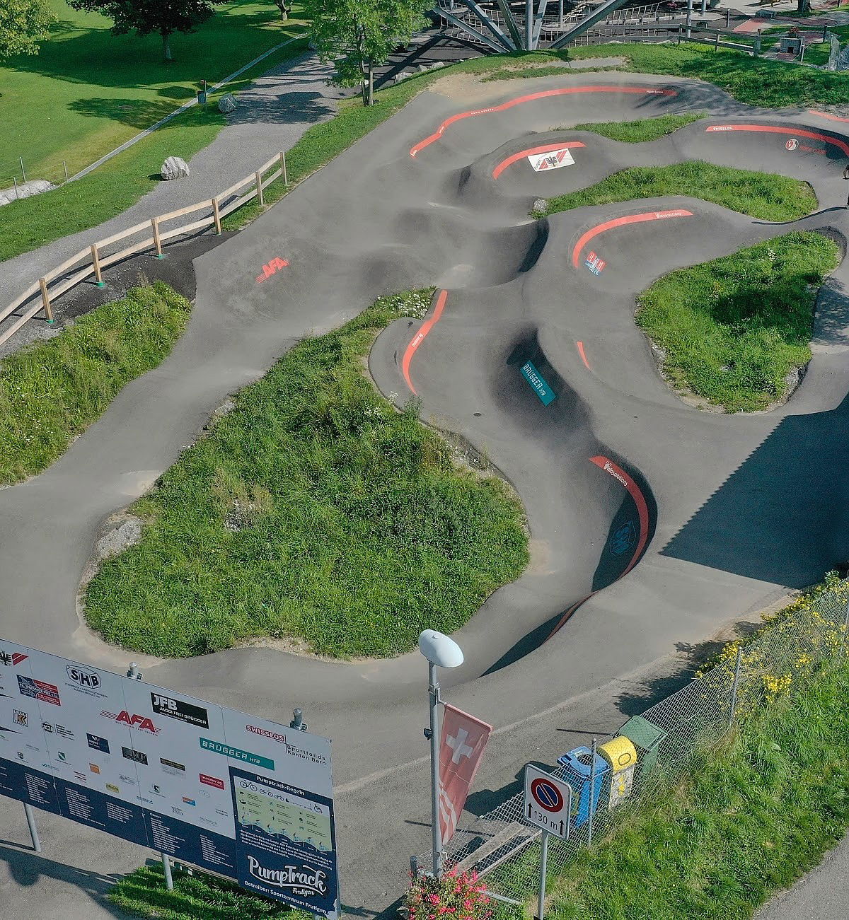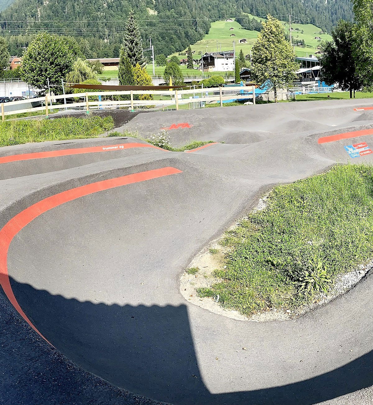 Pumptrack Frutigen is an asphalt track built by Velosolutions.