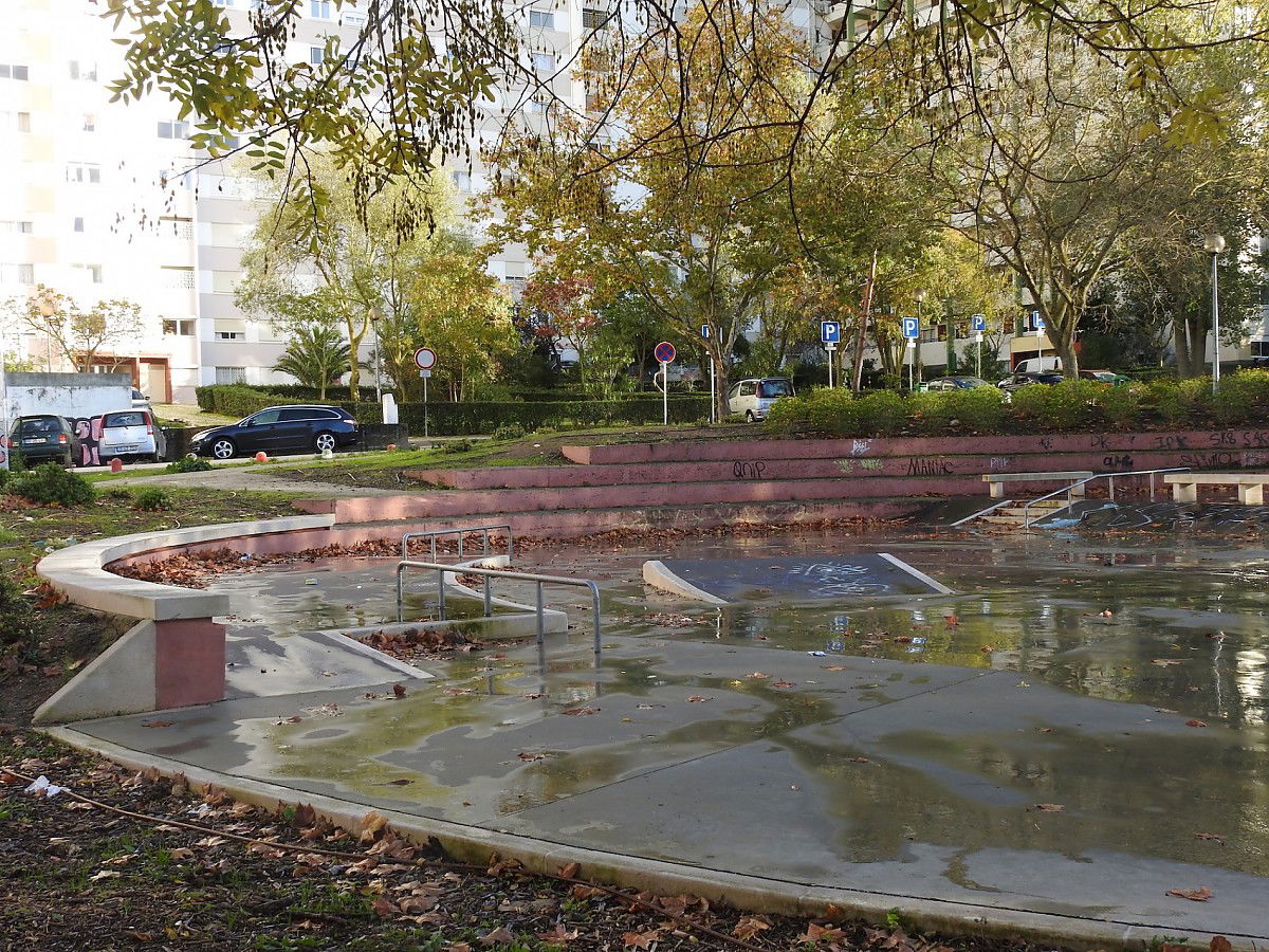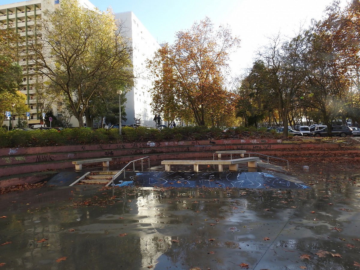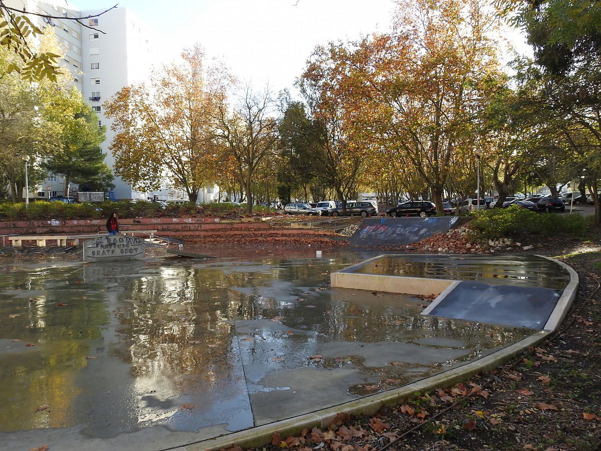 Redondo do SAC skatepark featured a small concrete plaza style park. The skatepark has been removed and is now parking space.