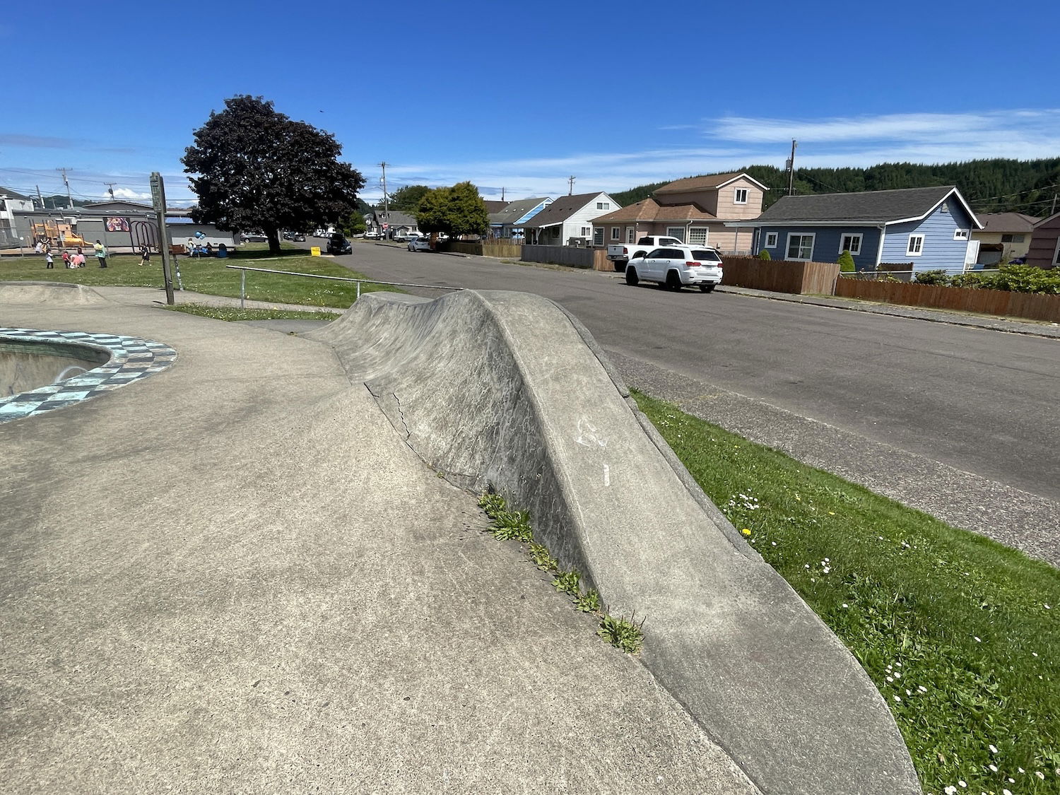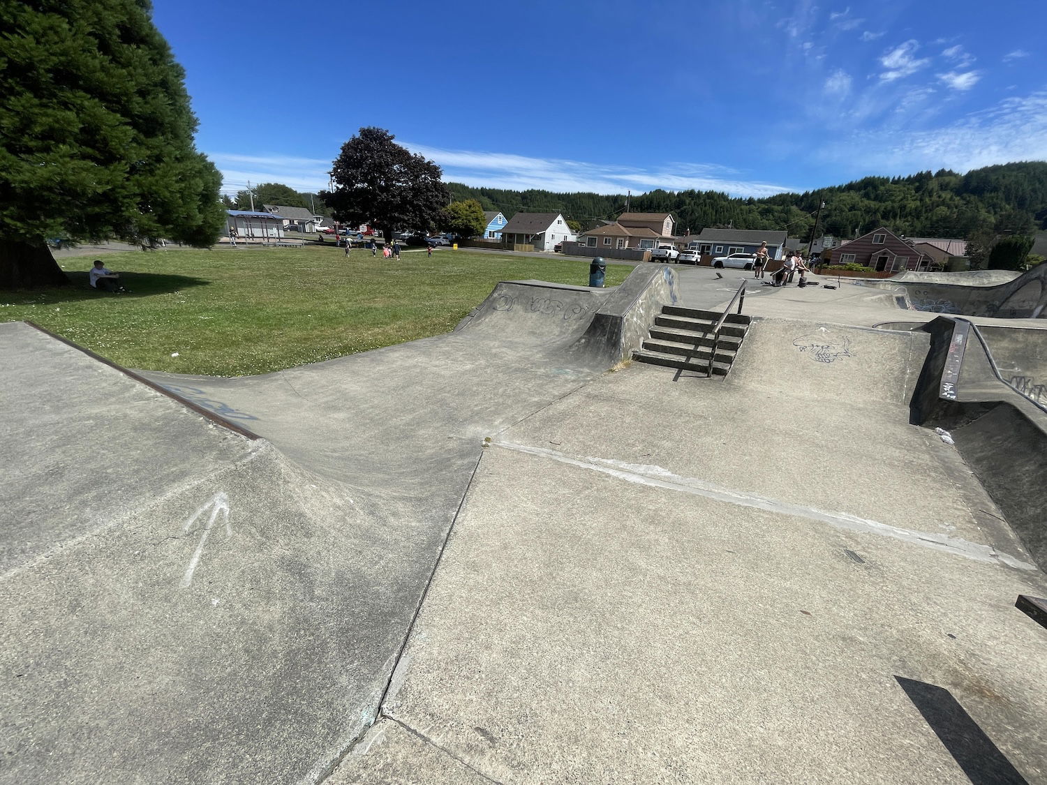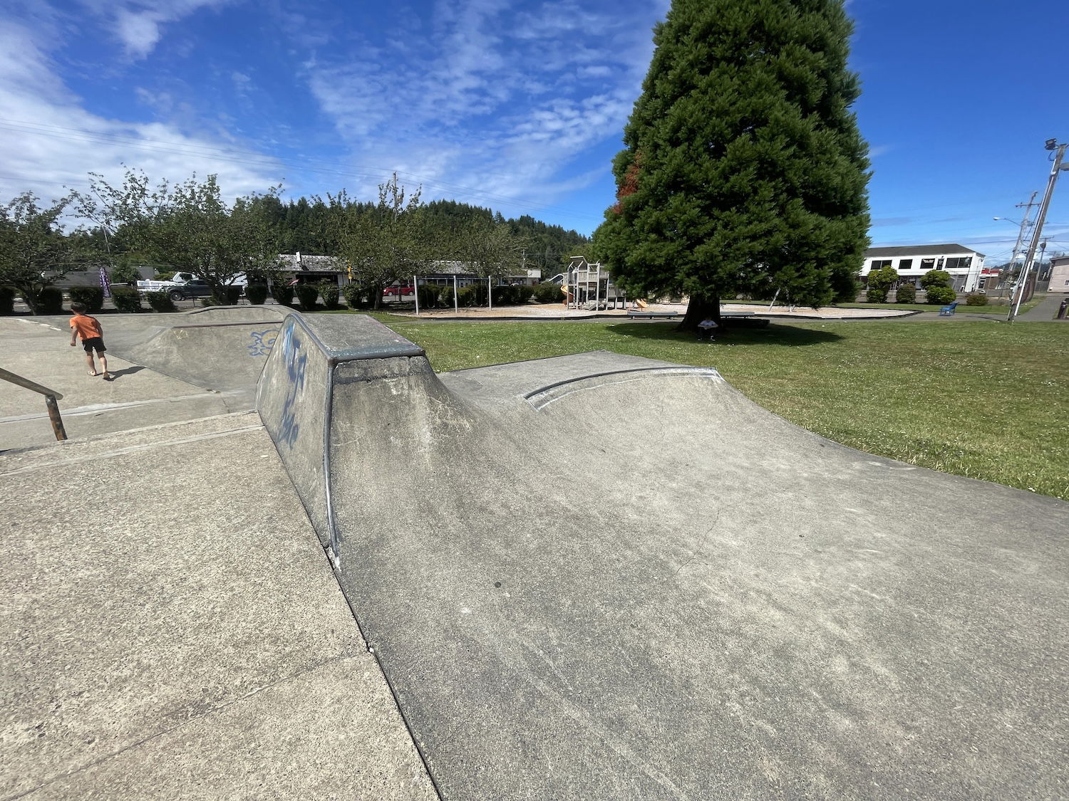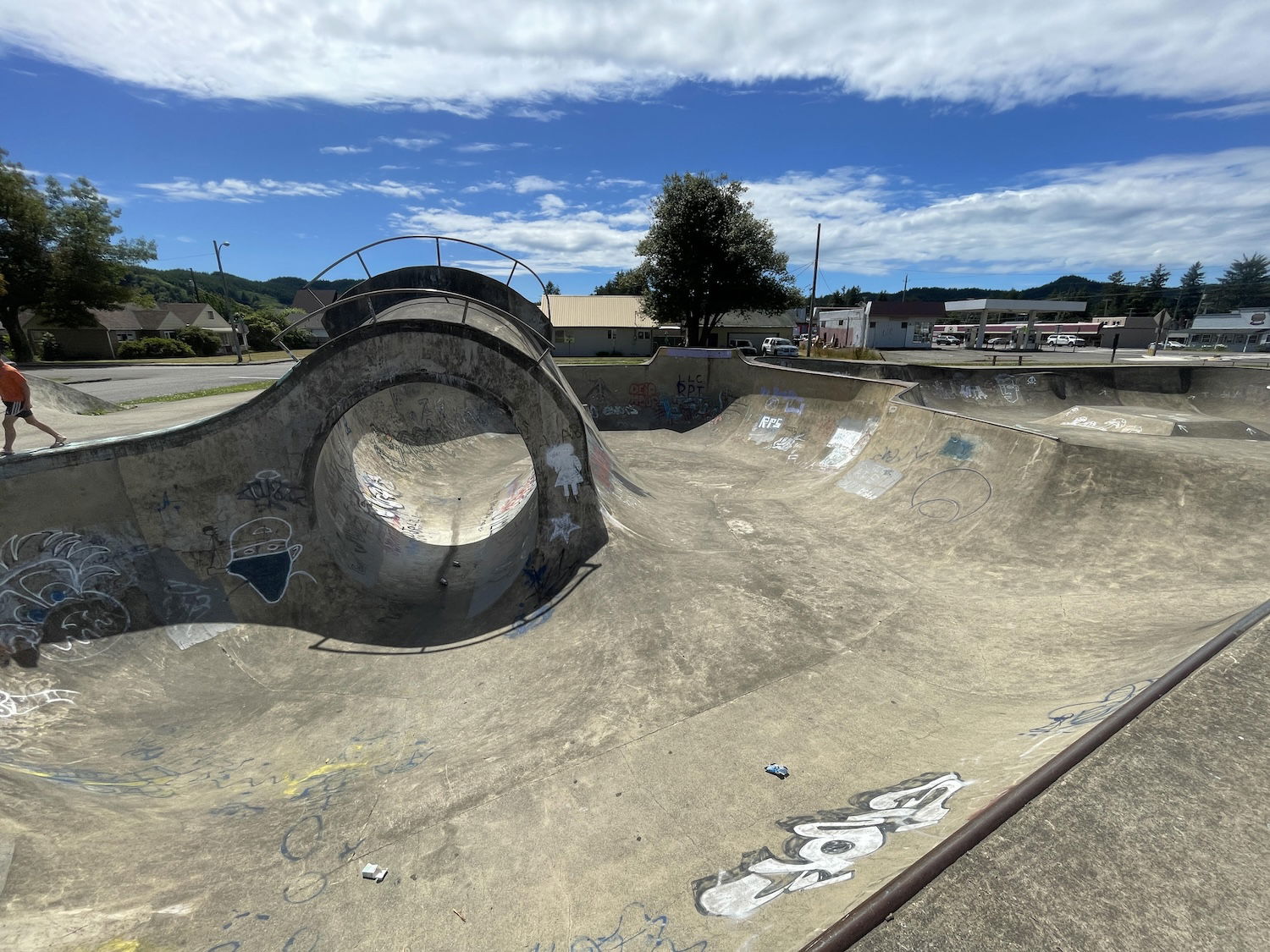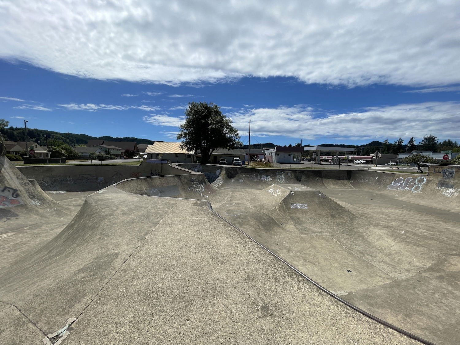 Reedsport skatepark is a concrete park featuring two large bowls. The full-pipe, funnel feature really puts this one on the map. Two flow, bowl areas with lots of fun stuff to hit on the sides. I am amazed at how advanced stuff was on this coast for the early 2000‘s. All these builders set the bar for how stuff should be done. The Skatepark Project helped fund this skatepark in 2002.