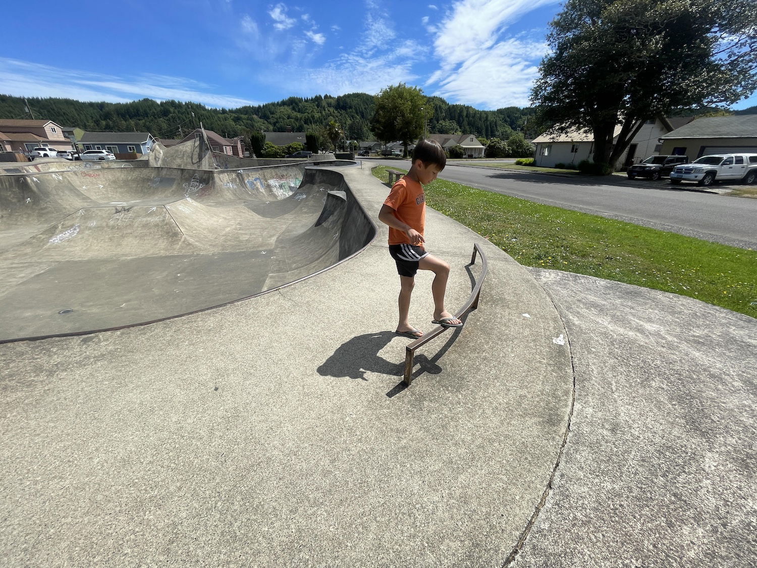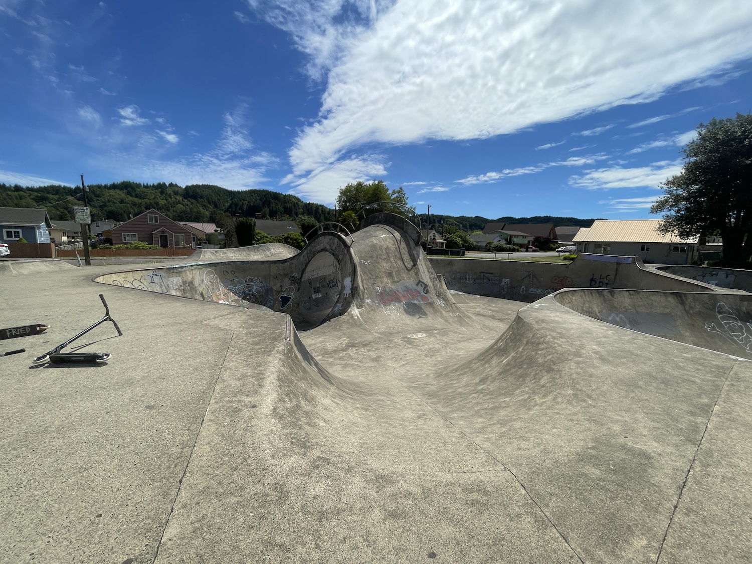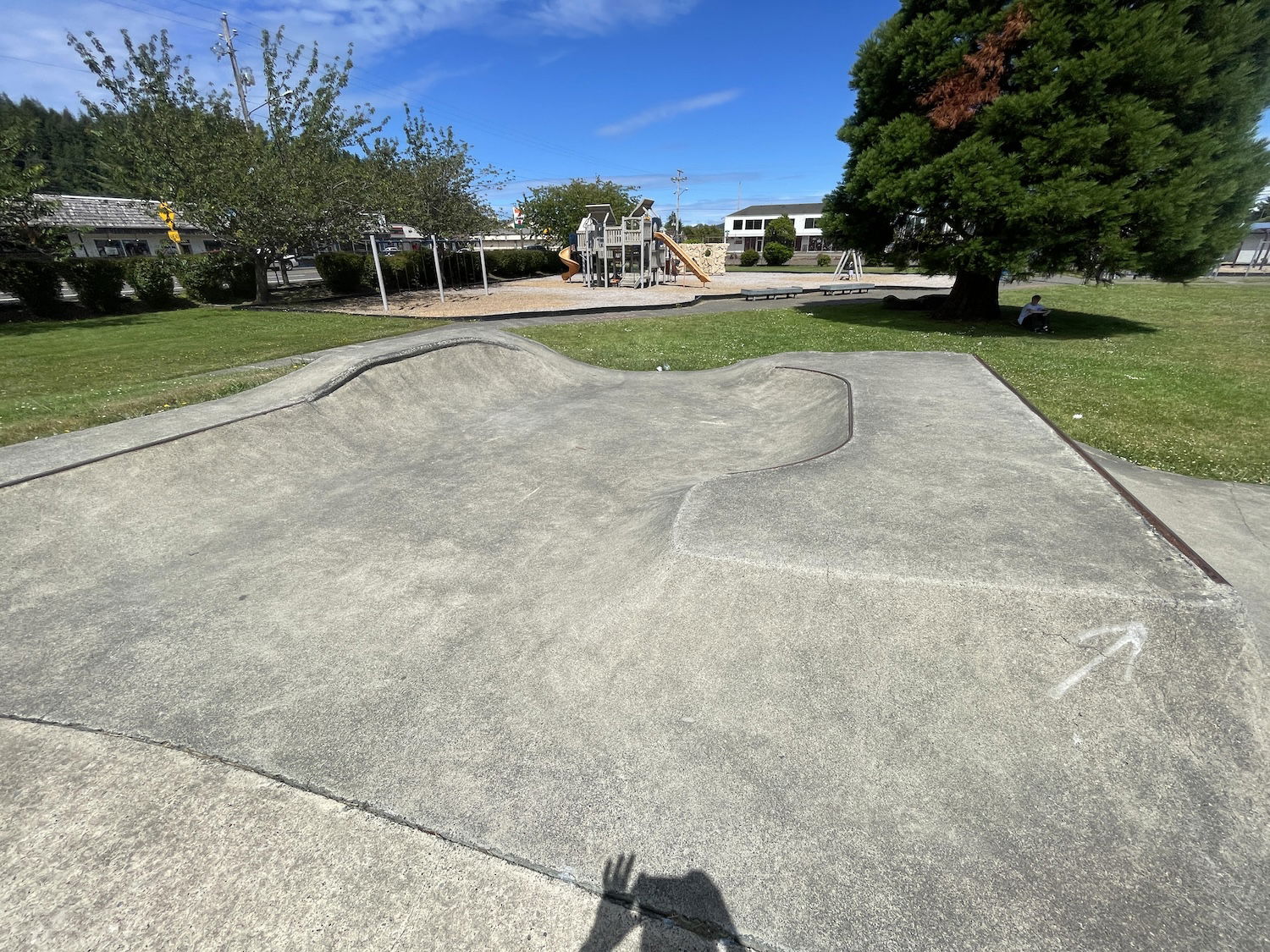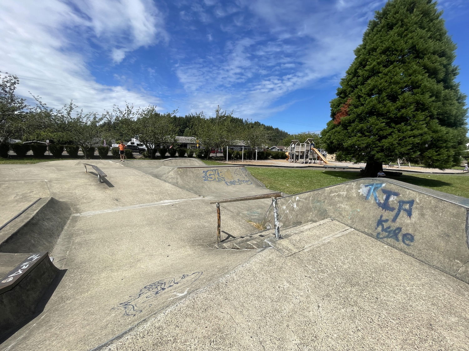 Reedsport skatepark is a concrete park featuring two large bowls. The full-pipe, funnel feature really puts this one on the map. Two flow, bowl areas with lots of fun stuff to hit on the sides. I am amazed at how advanced stuff was on this coast for the early 2000‘s. All these builders set the bar for how stuff should be done. The Skatepark Project helped fund this skatepark in 2002.