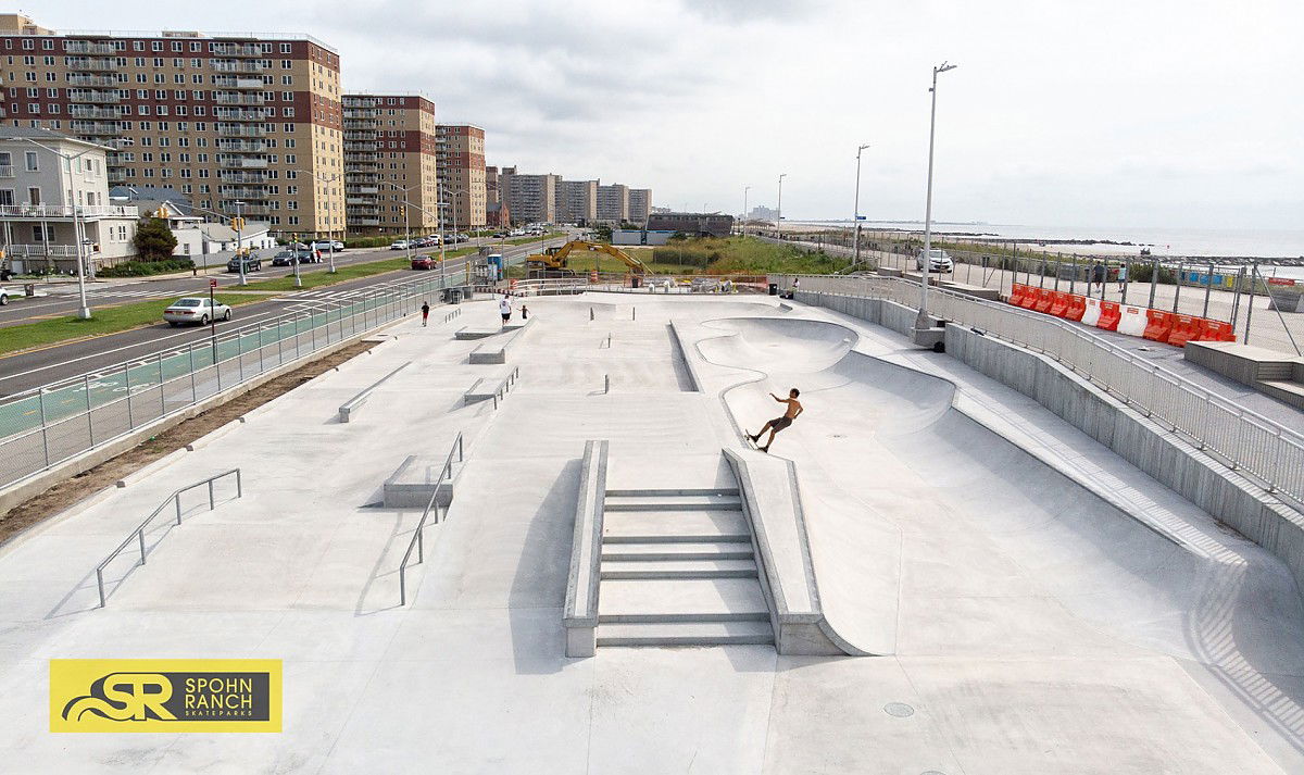 The 16000 square foot Rockaway skatepark is a nice skatepark at the beach of Rockaway, built in 2020. The park features a miniramp, bowl and small street area. The skatepark was built by SpohnRanch skateparks.