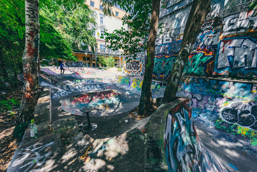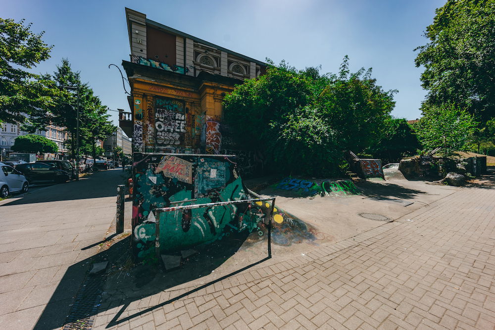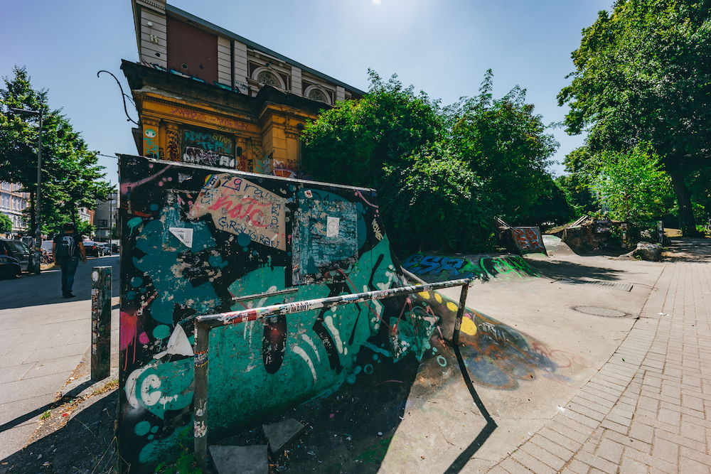 Rote Flora skatepark is a DIY skatepark located bang in the center of Hamburg and you can grind at night, because it has lights.