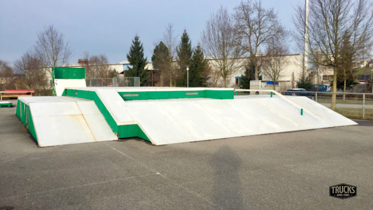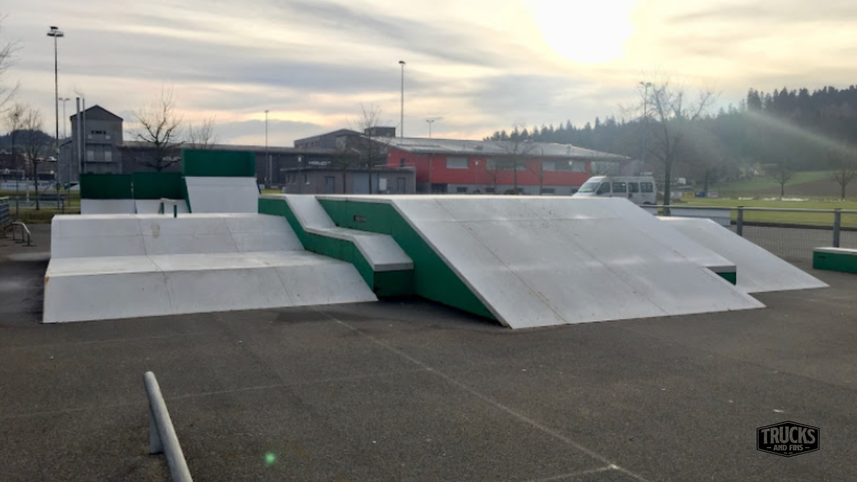 The approximately 750m² Ruswil skate park is mainly made of metal surfaces and offers street elements and a miniramp.