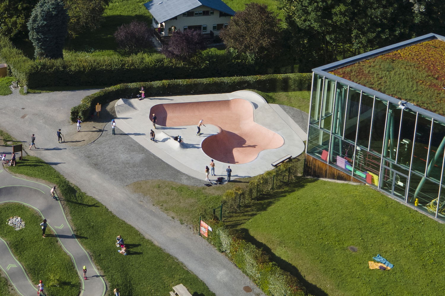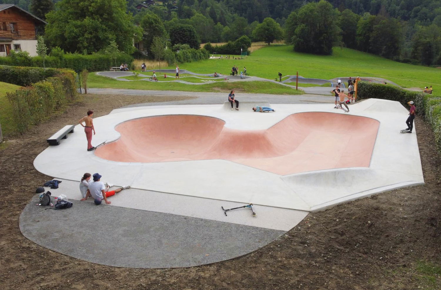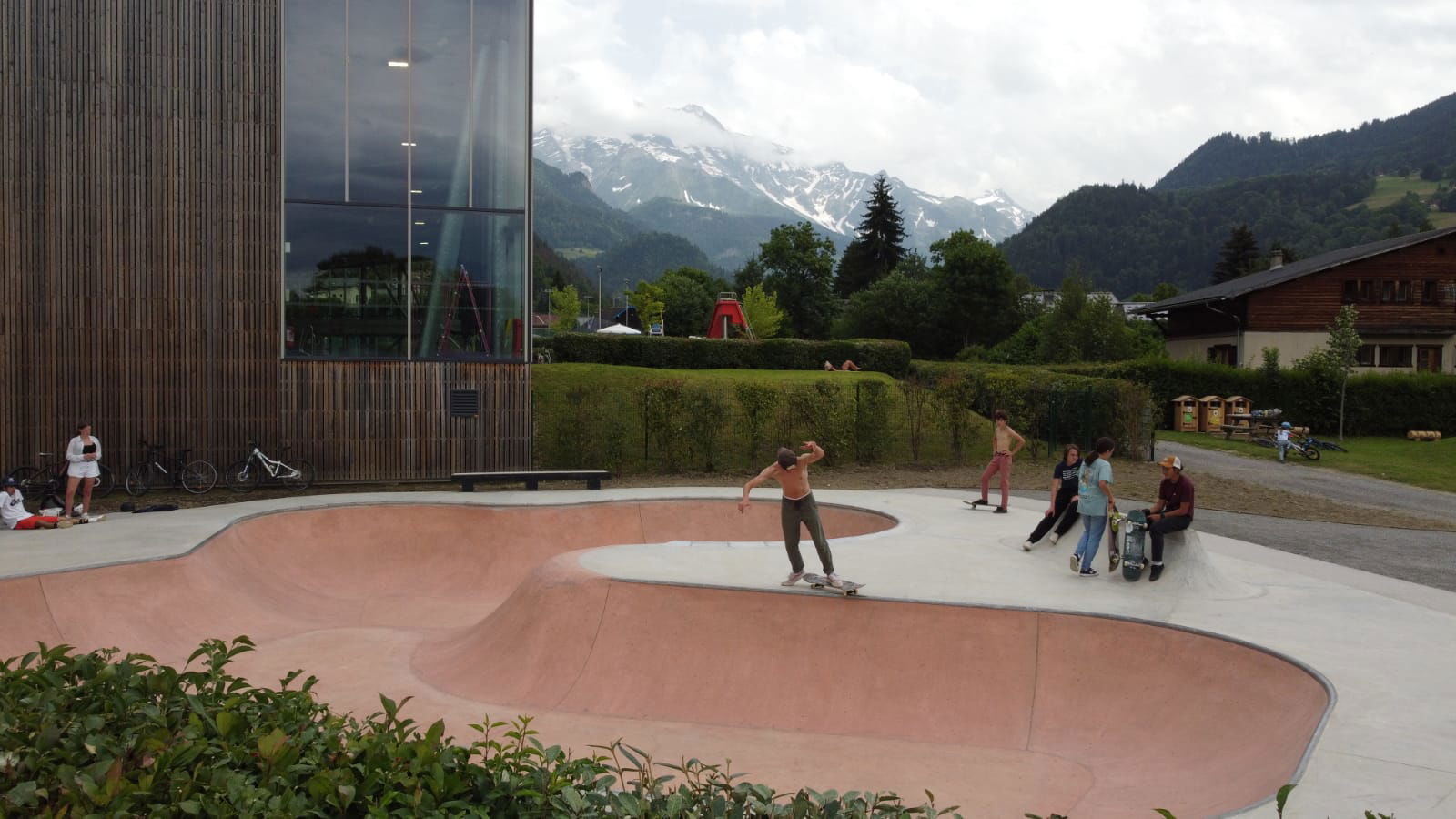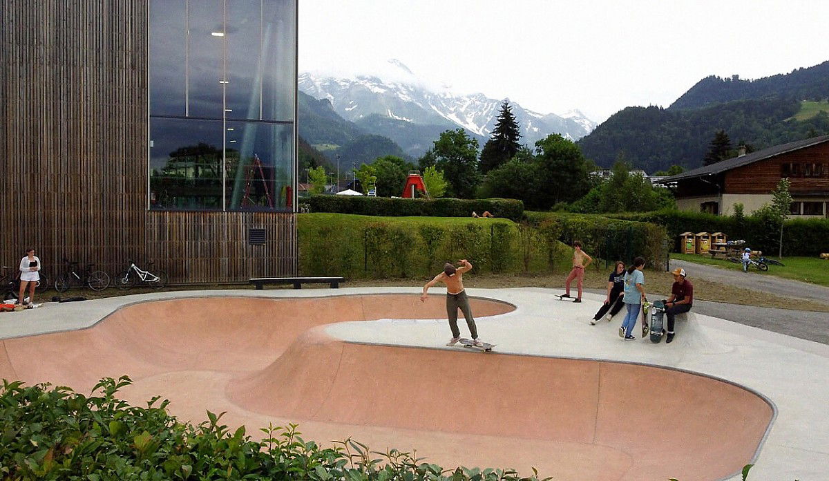 Nestled in the Plaine des Pratz, Chemin des Tennis, 74170 Saint-Gervais-les-Bains (Haute-Savoie, France), this outdoor facility spans approximately 550 m² and opened in July 2021. The concrete build features a flowing bowl section with hips, platforms, and curved transitions, accompanied by a dedicated street-zone geared for ledges, banks and transfers. Adjacent to the park is a pumptrack circuit also available for skateboarders, scooters, rollers and bikes, making the site a full glisse hub. Free to access and set against the majestic Mont Blanc backdrop, this skatepark is a top stop for riders traveling in the French Alps seeking quality terrain with alpine vibes.