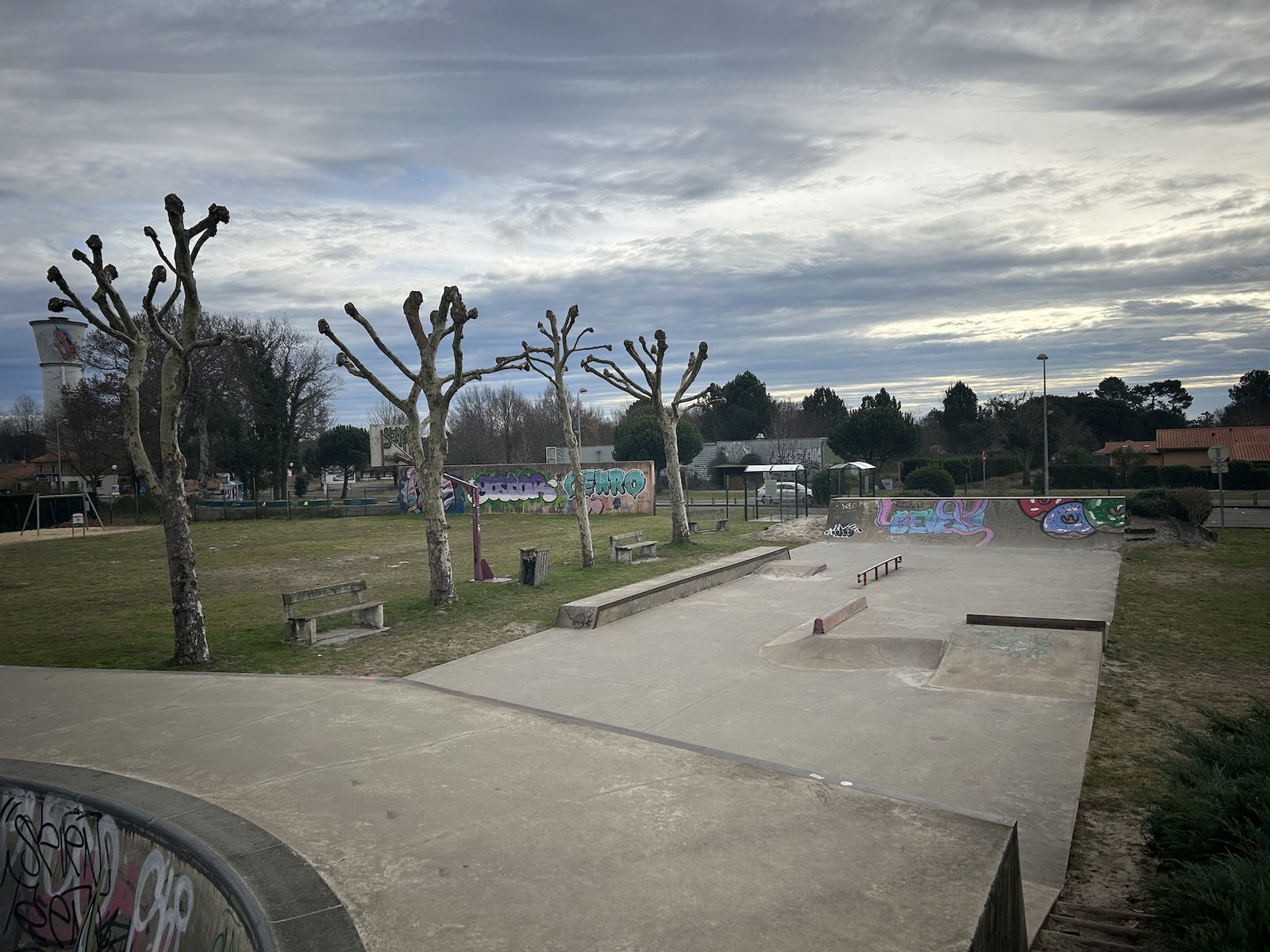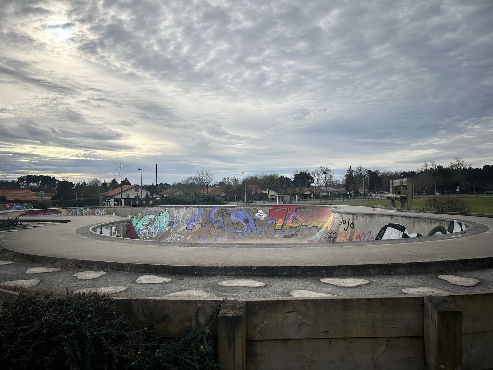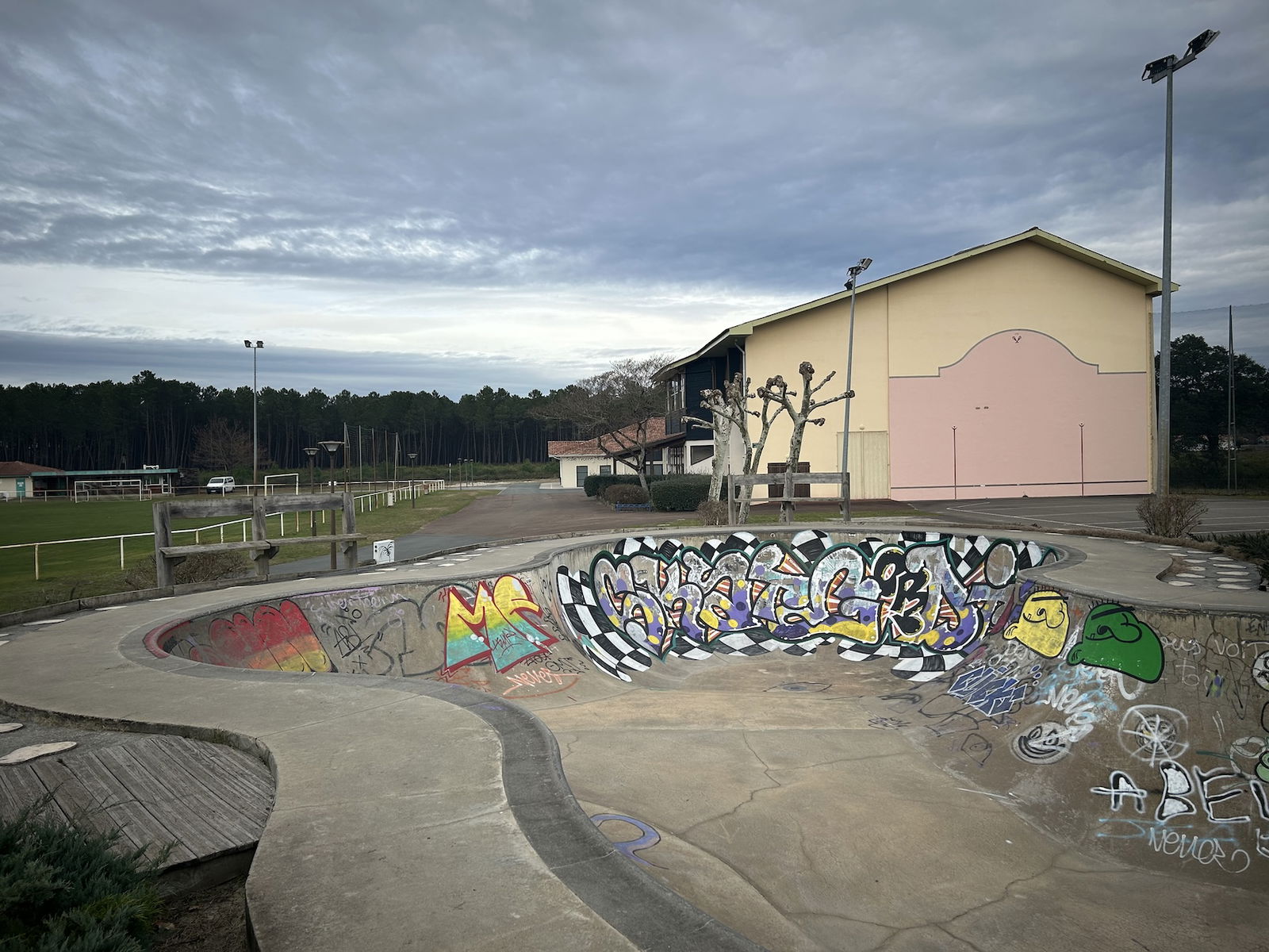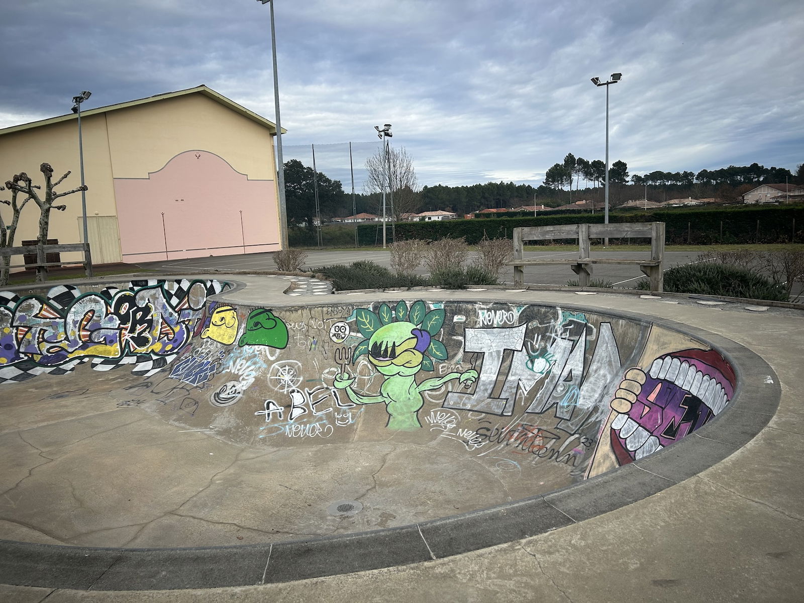 Saint Girons skatepark is a concrete skatepark featuring a bowl and a street area.