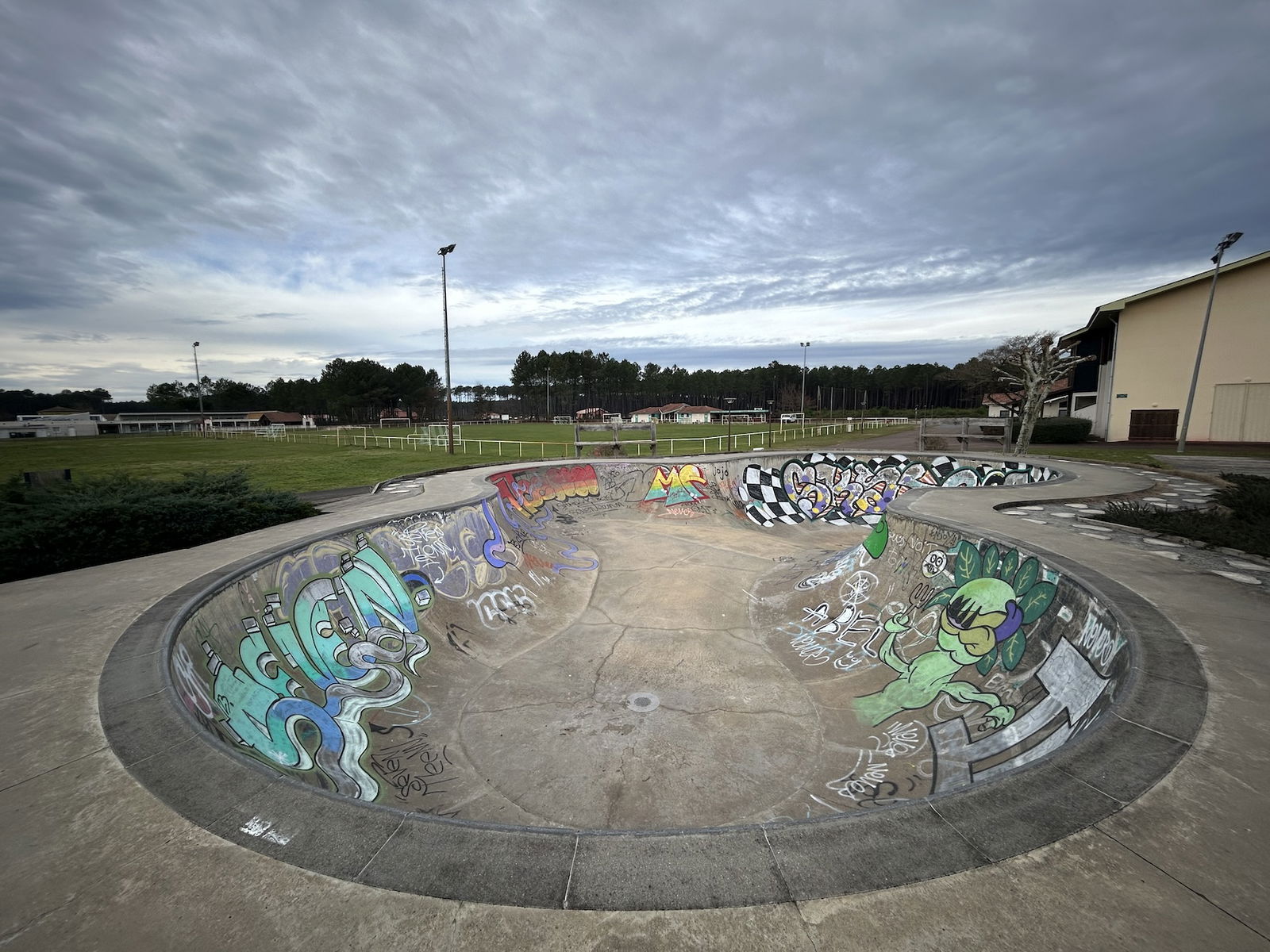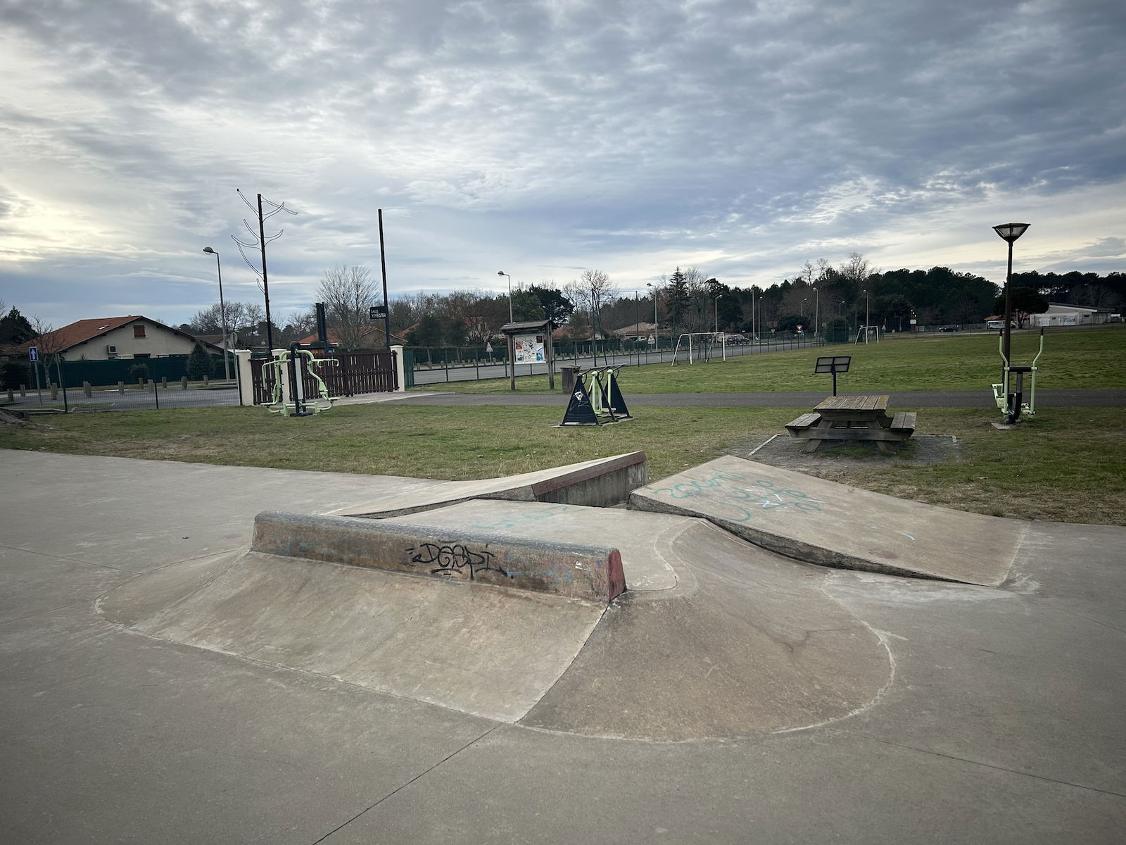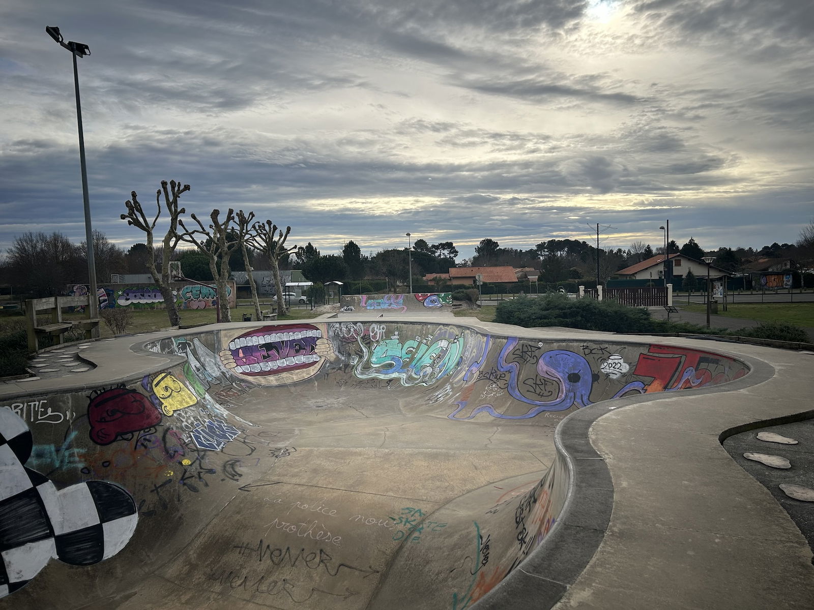 Saint Girons skatepark is a concrete skatepark featuring a bowl and a street area.