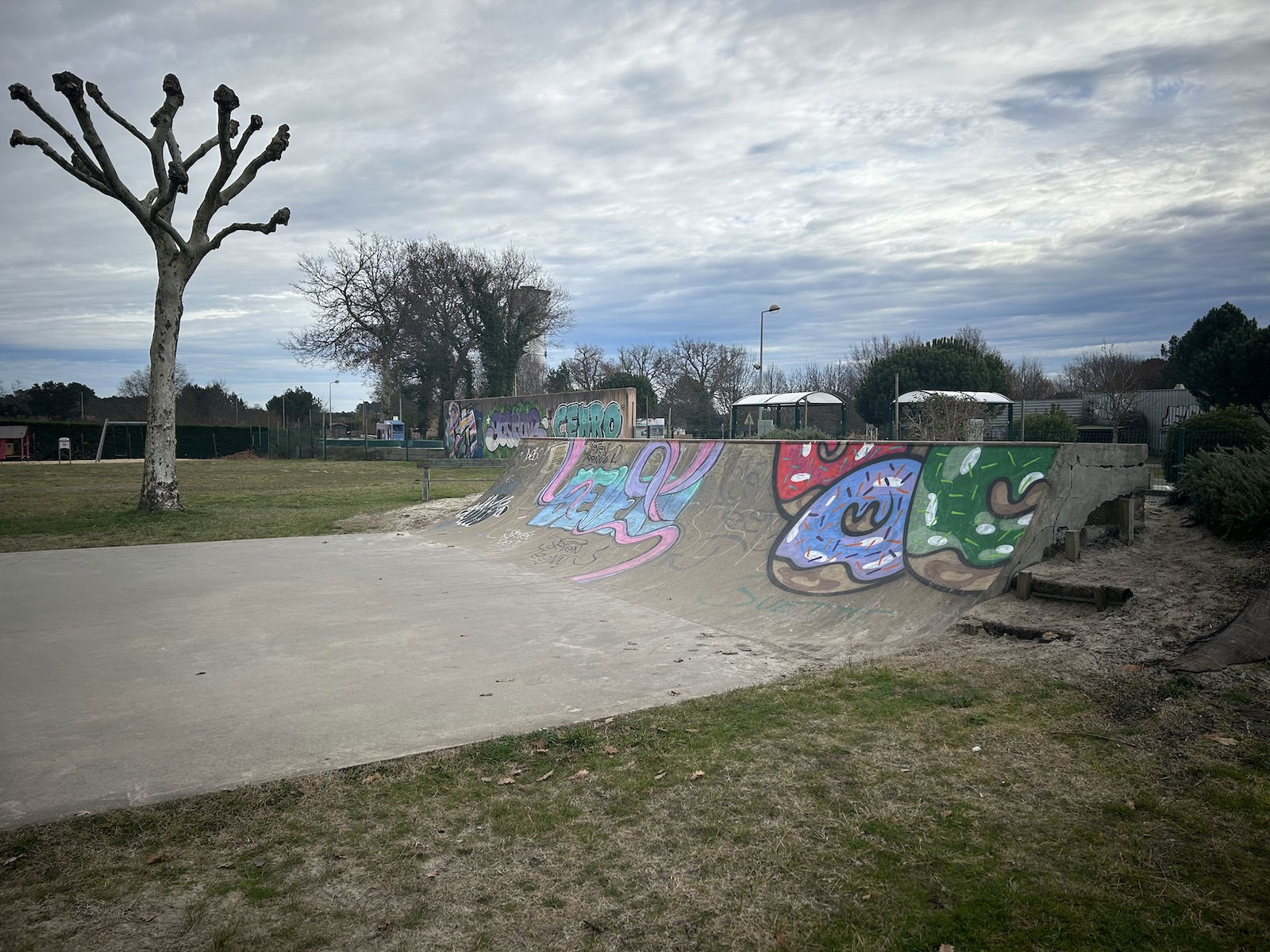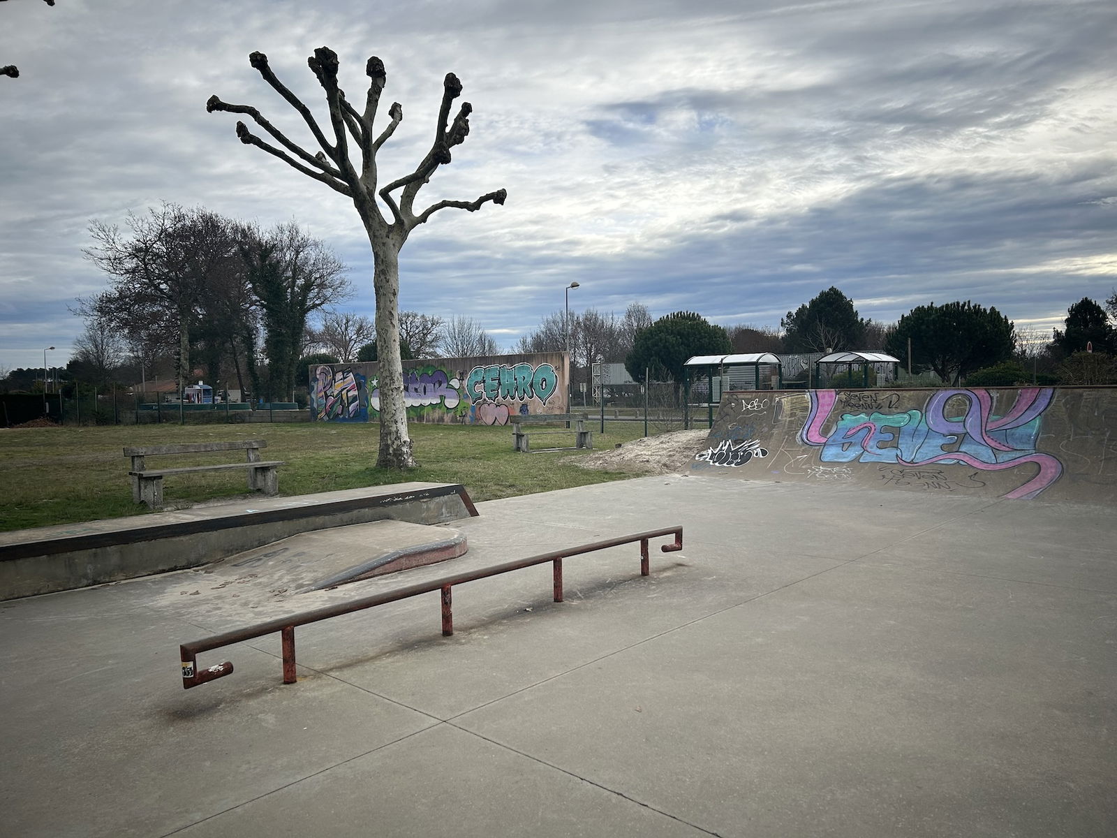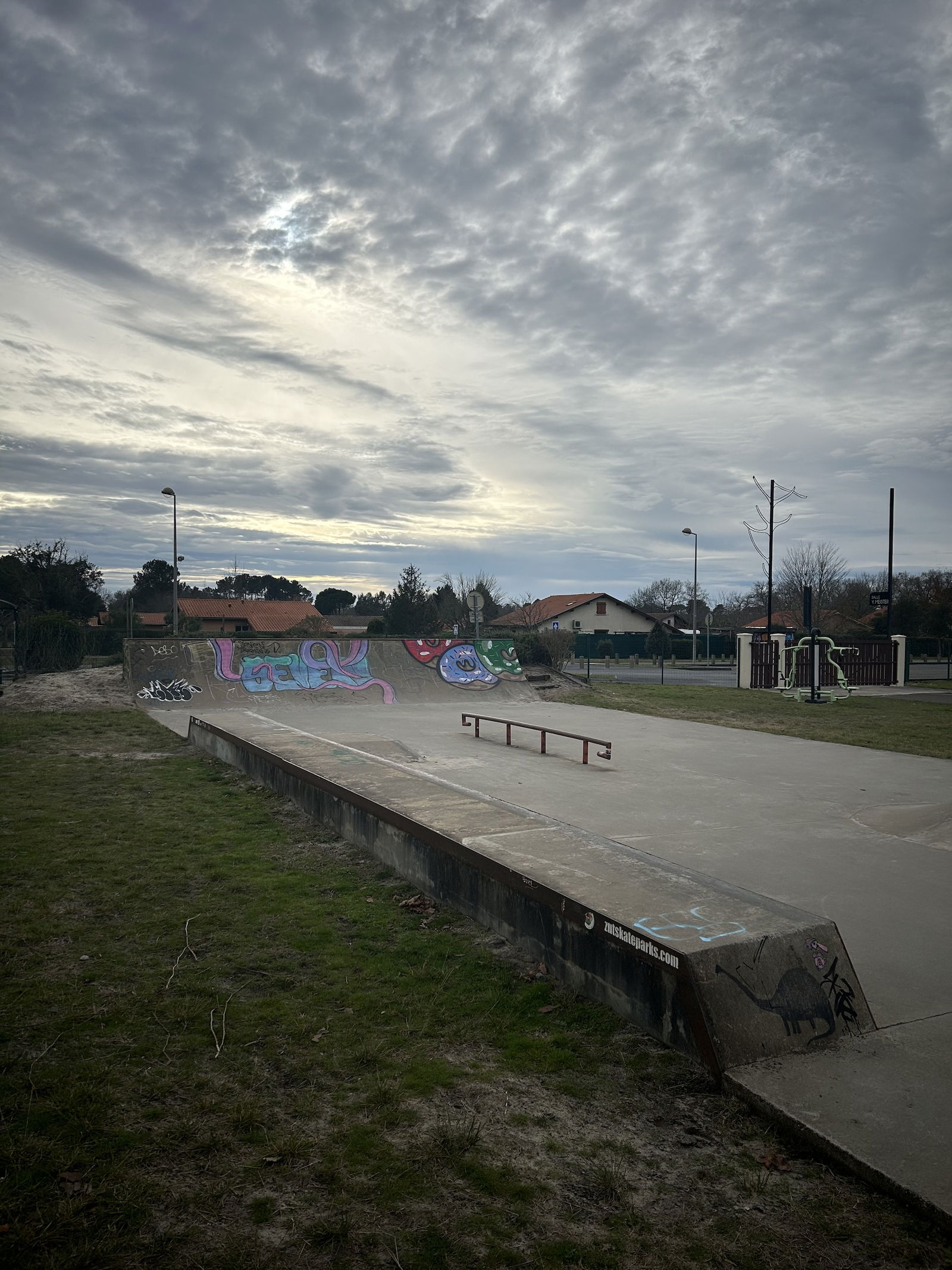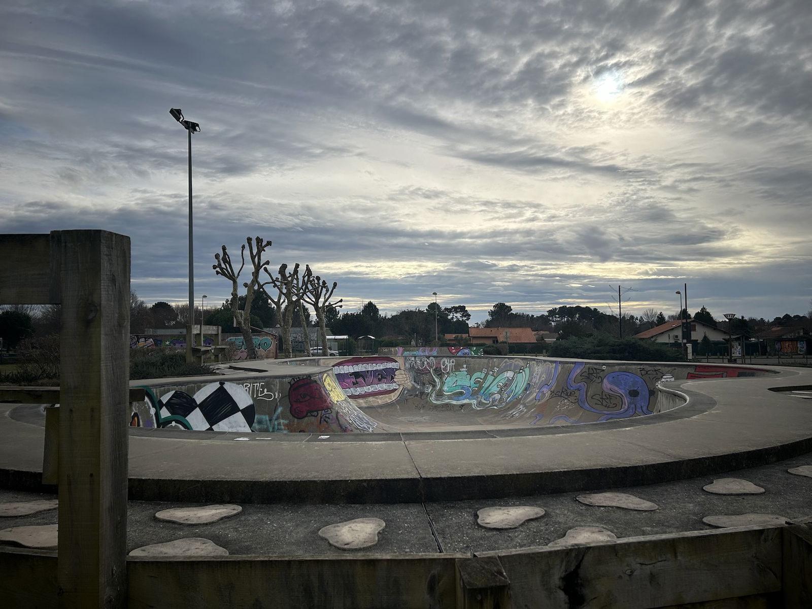 Saint Girons skatepark is a concrete skatepark featuring a bowl and a street area.
