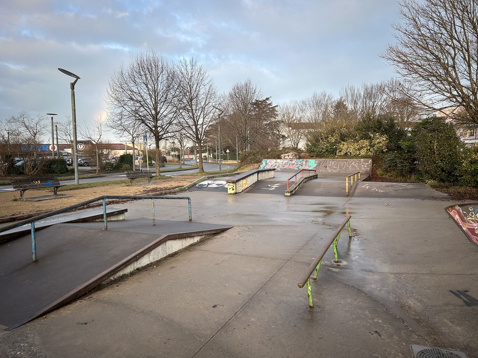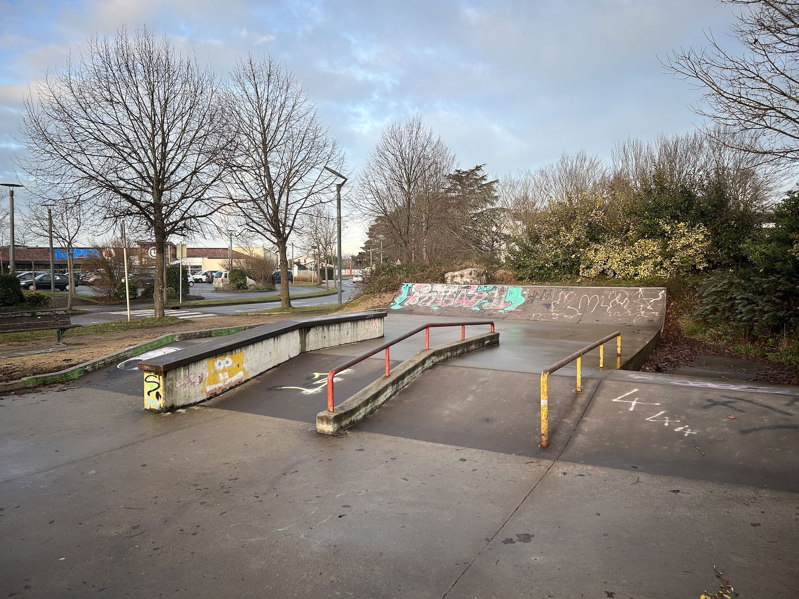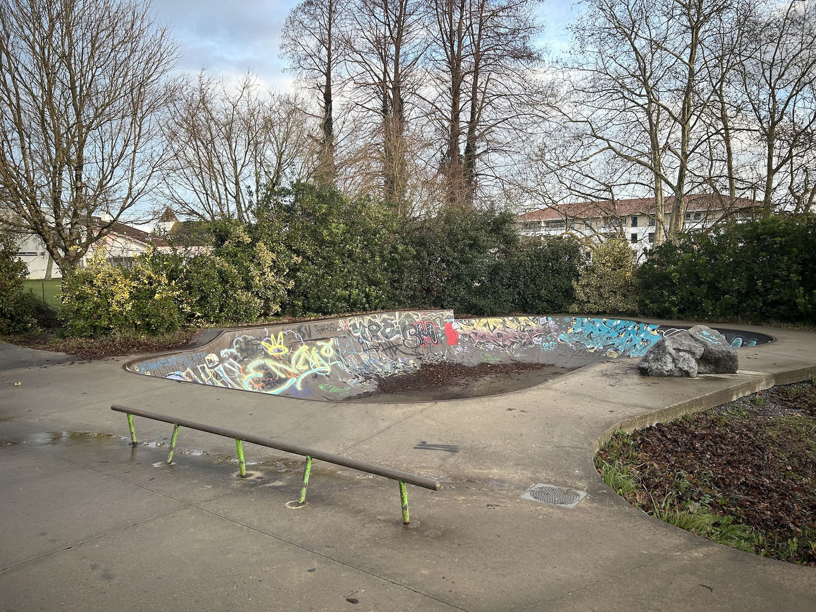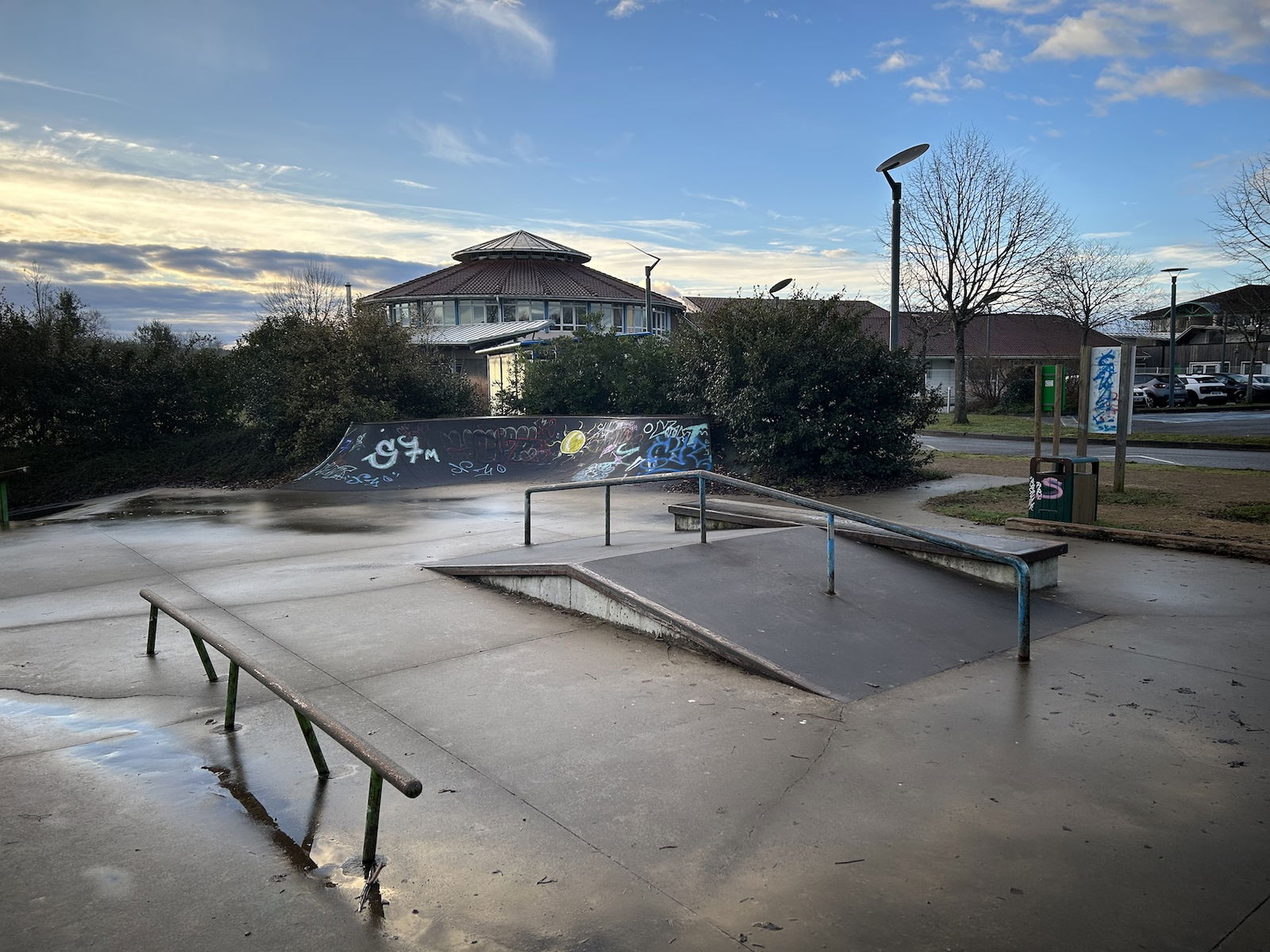 Saint-Martin-de-Seignanx skatepark is a concrete park featuring a bowl and large street section.