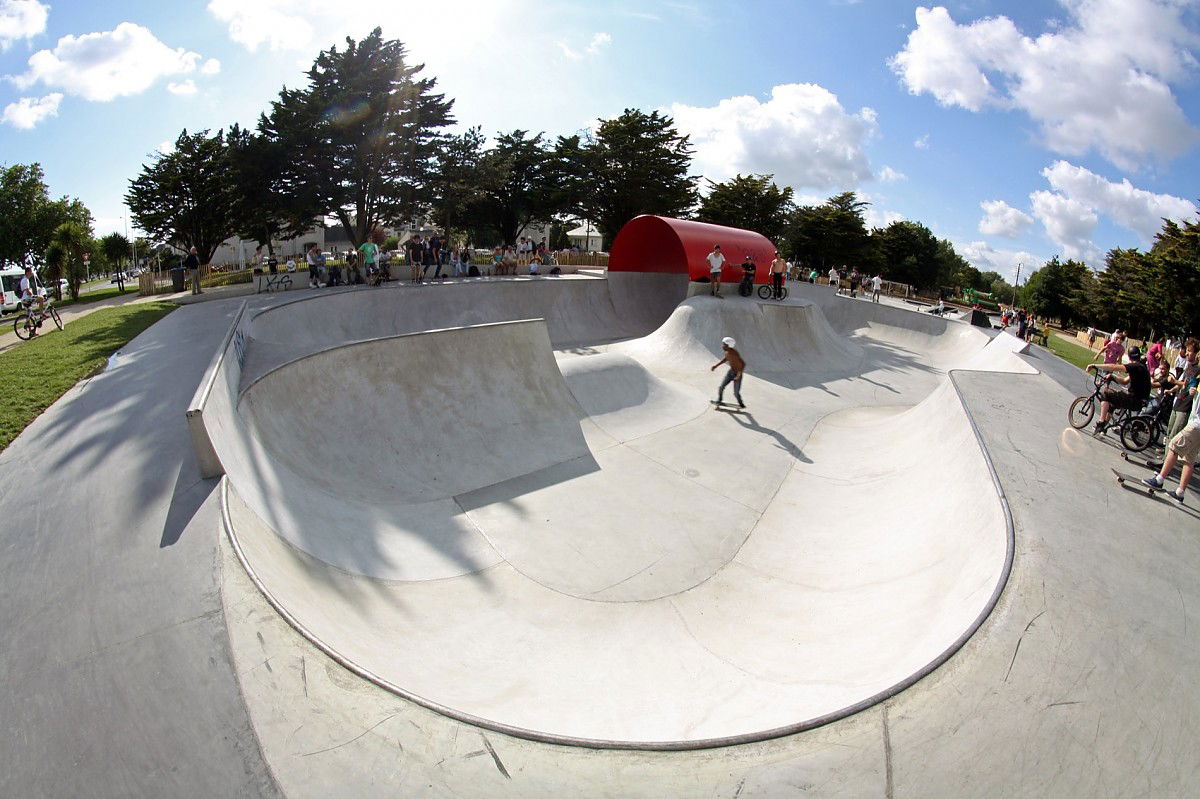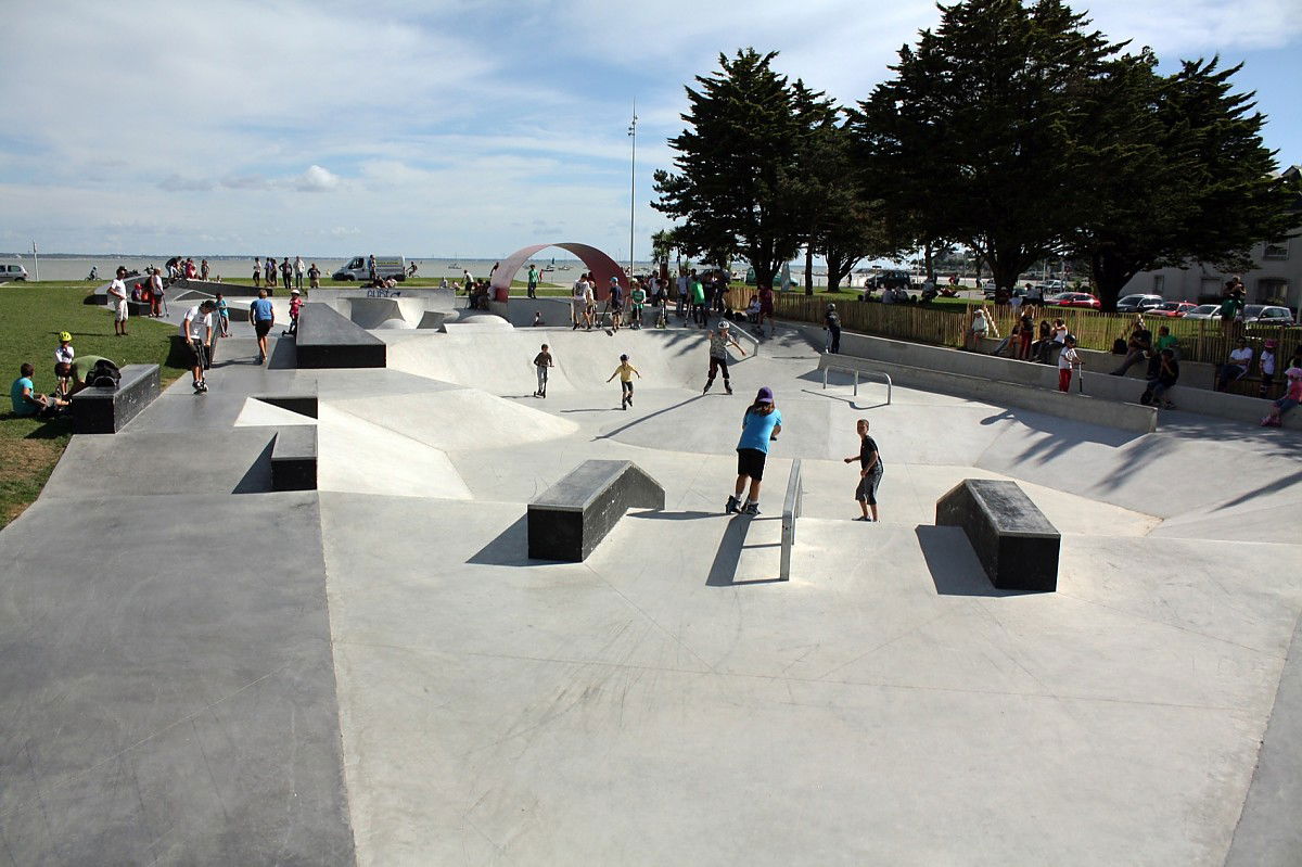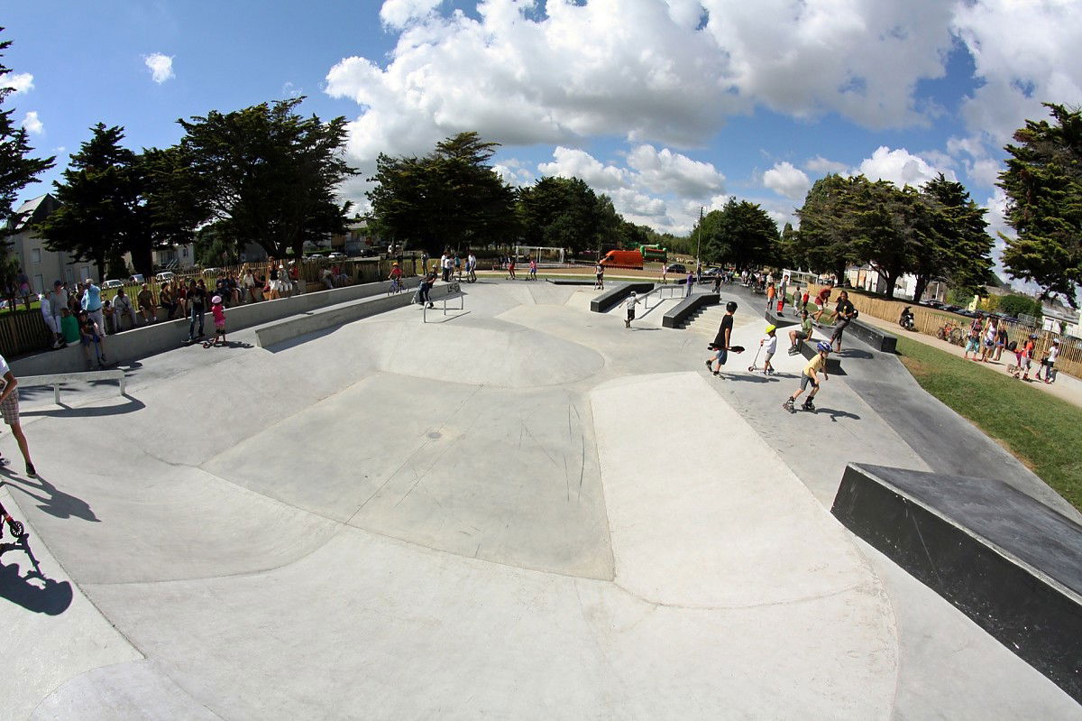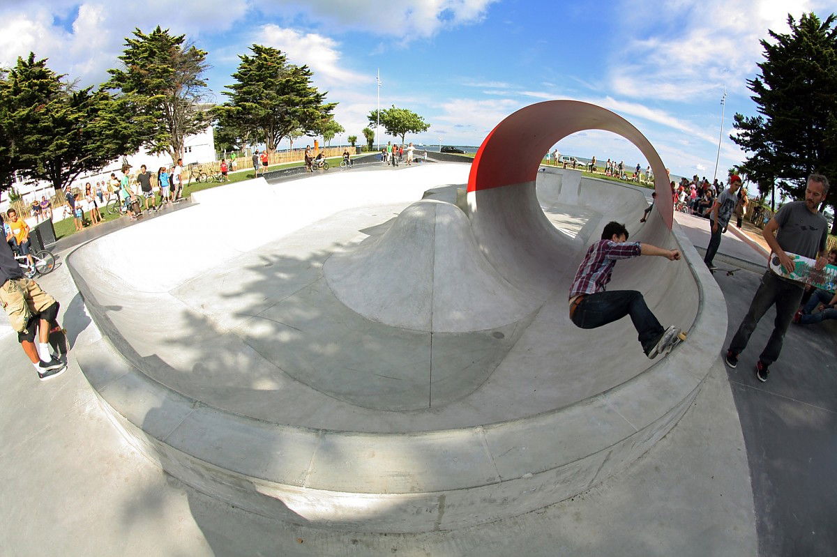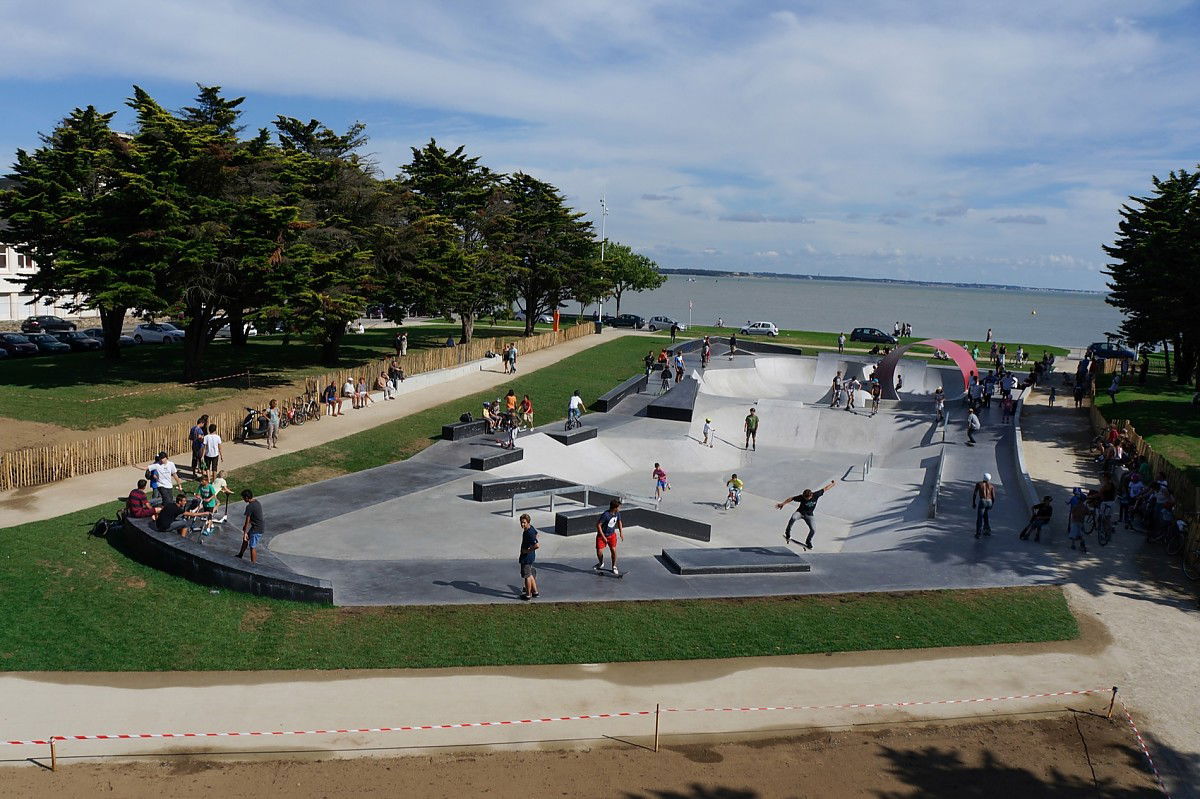 The 1200 m² Saint Nazaire skatepark was designed and built by Constructo Skateparks in 2013 who teamed up with Phytolab for the mandatory landscaping. Total estimated cost: 385000€.