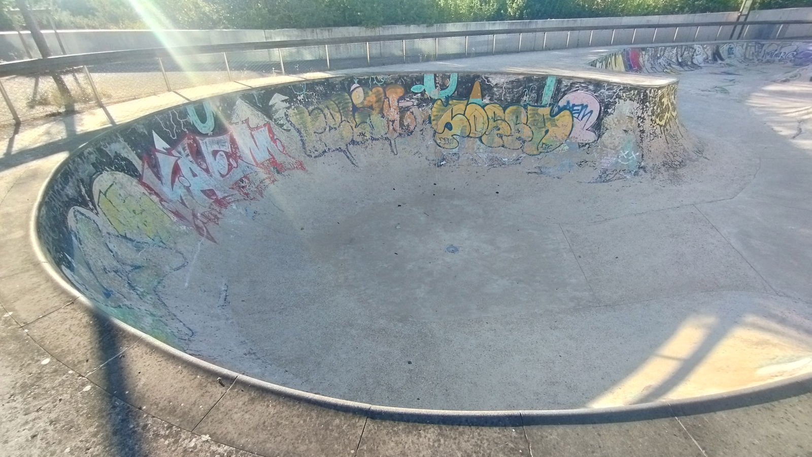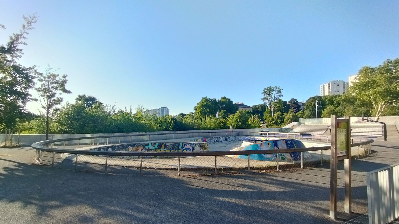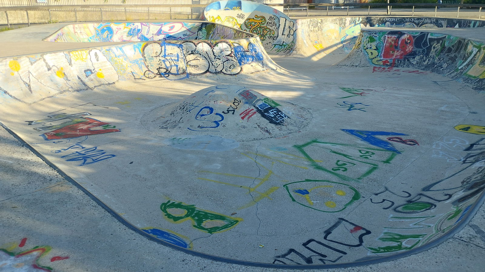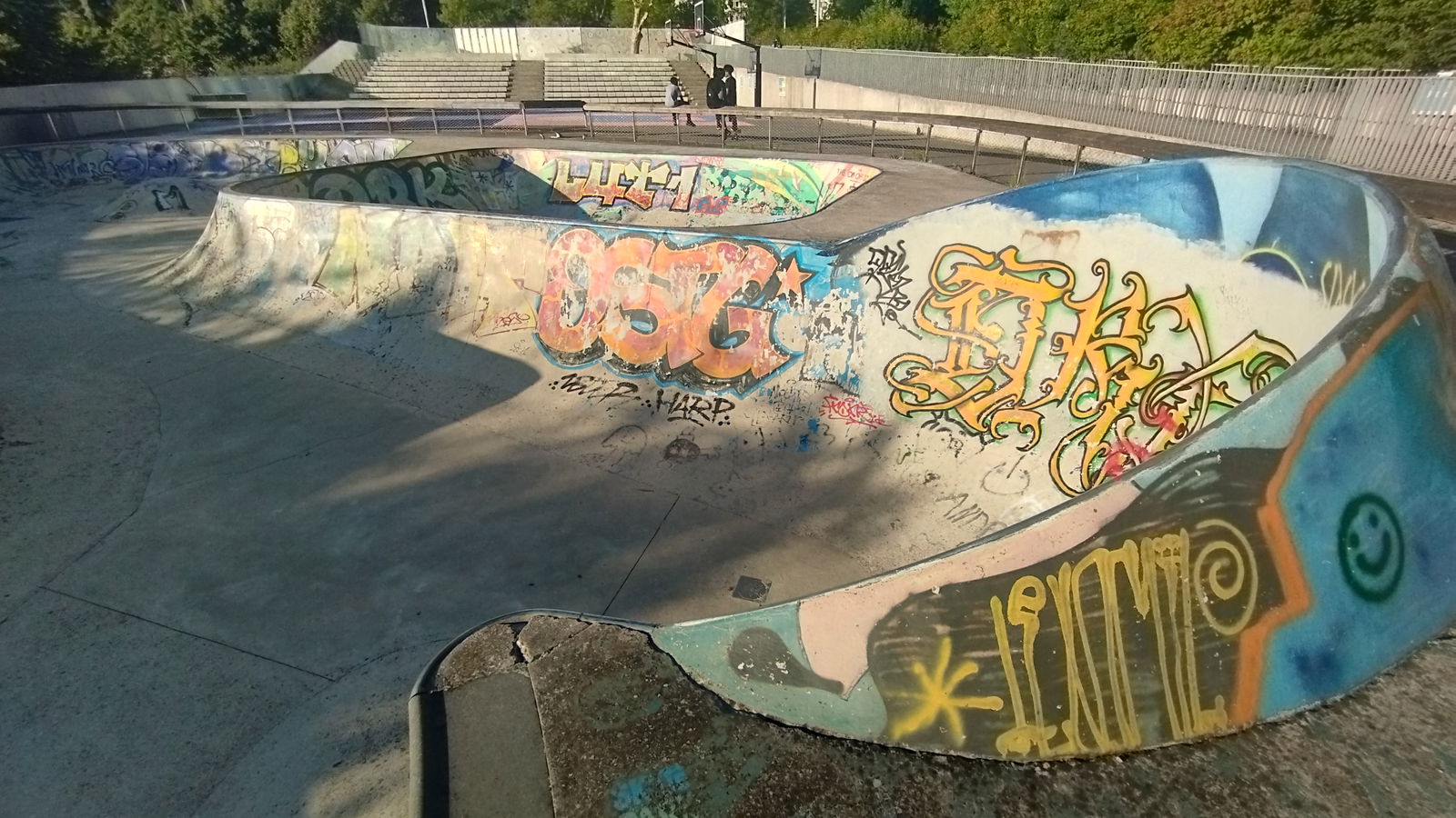 Saint-Ouen skatepark features two concrete bowls connected with a spine.
