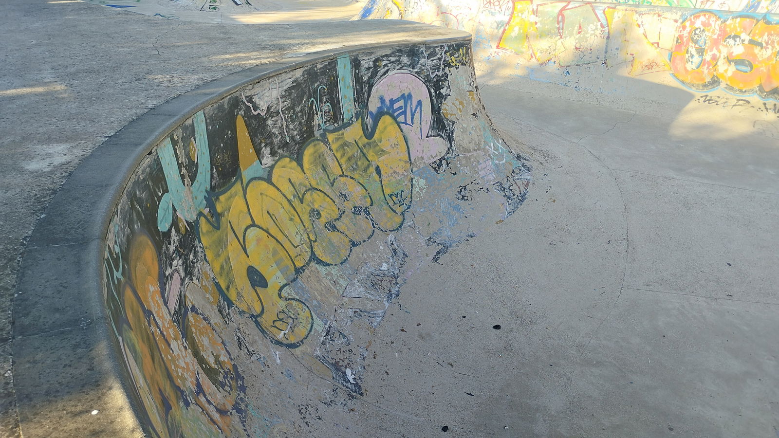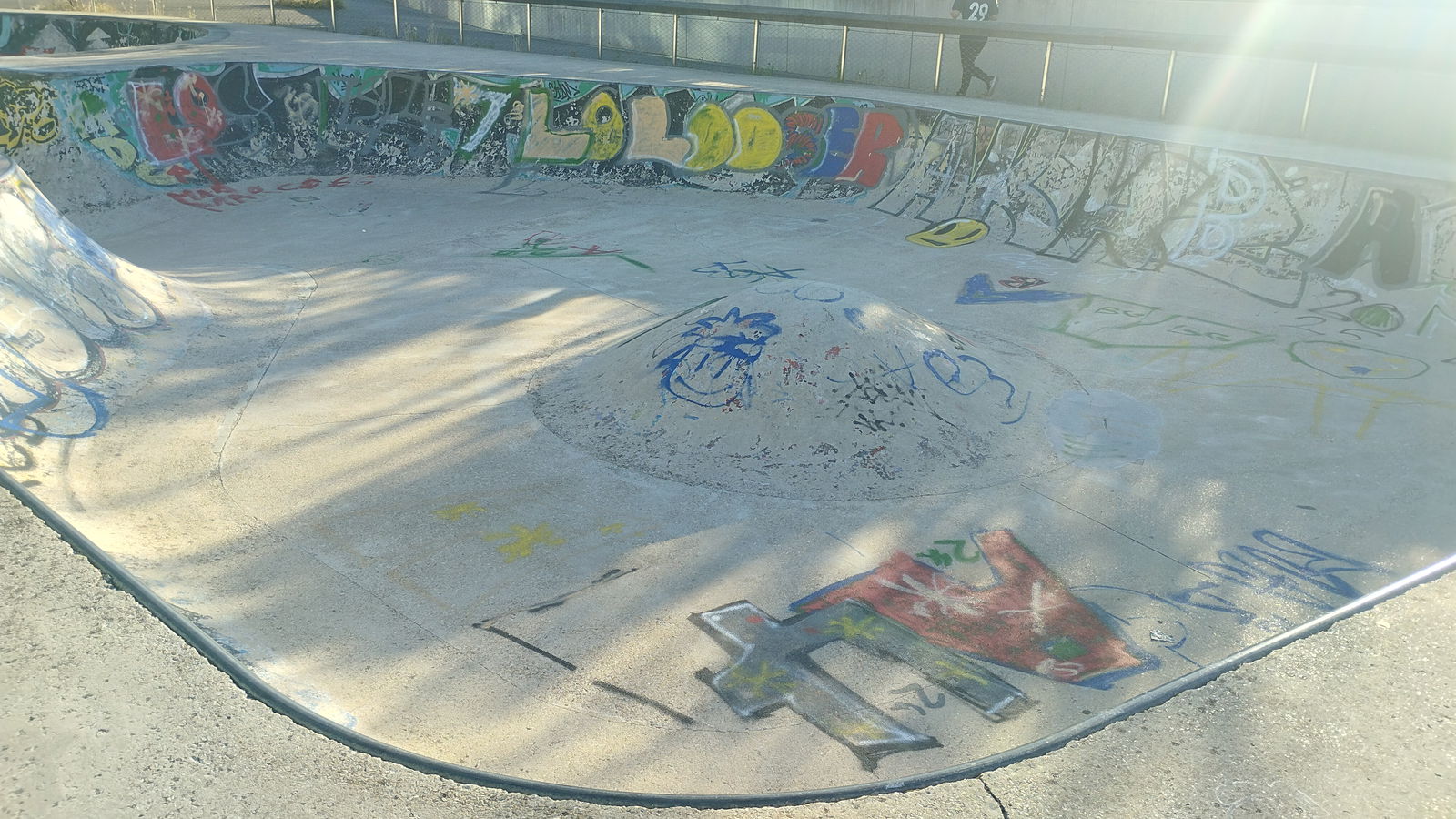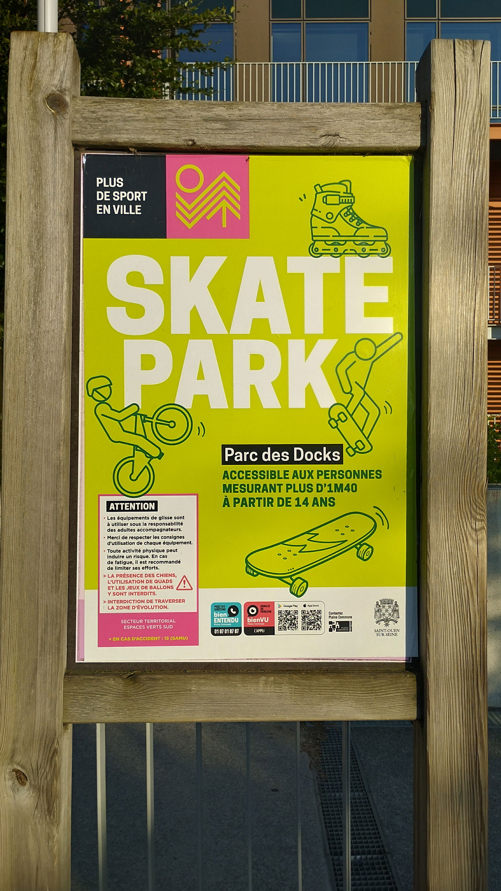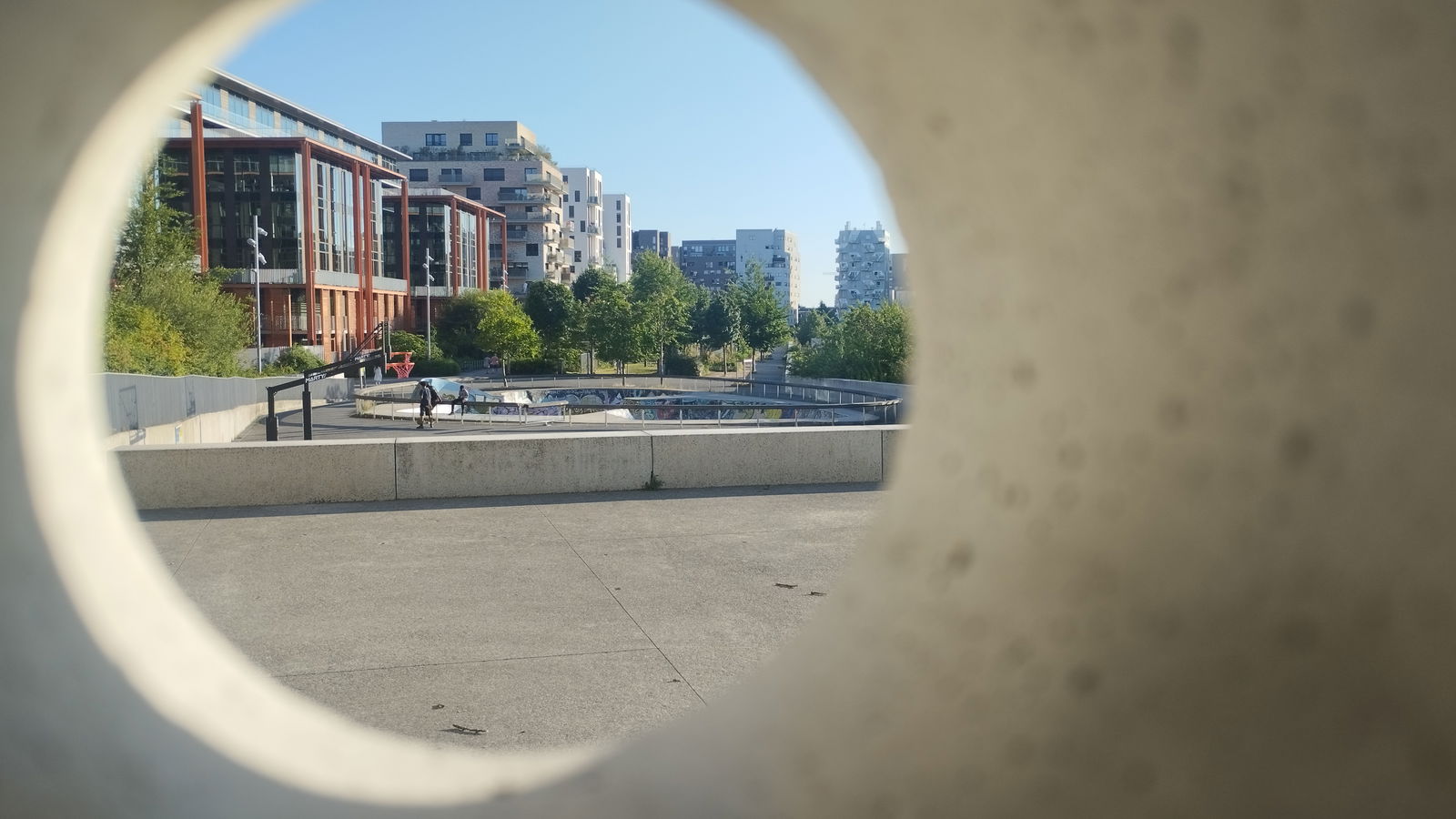 Saint-Ouen skatepark features two concrete bowls connected with a spine.