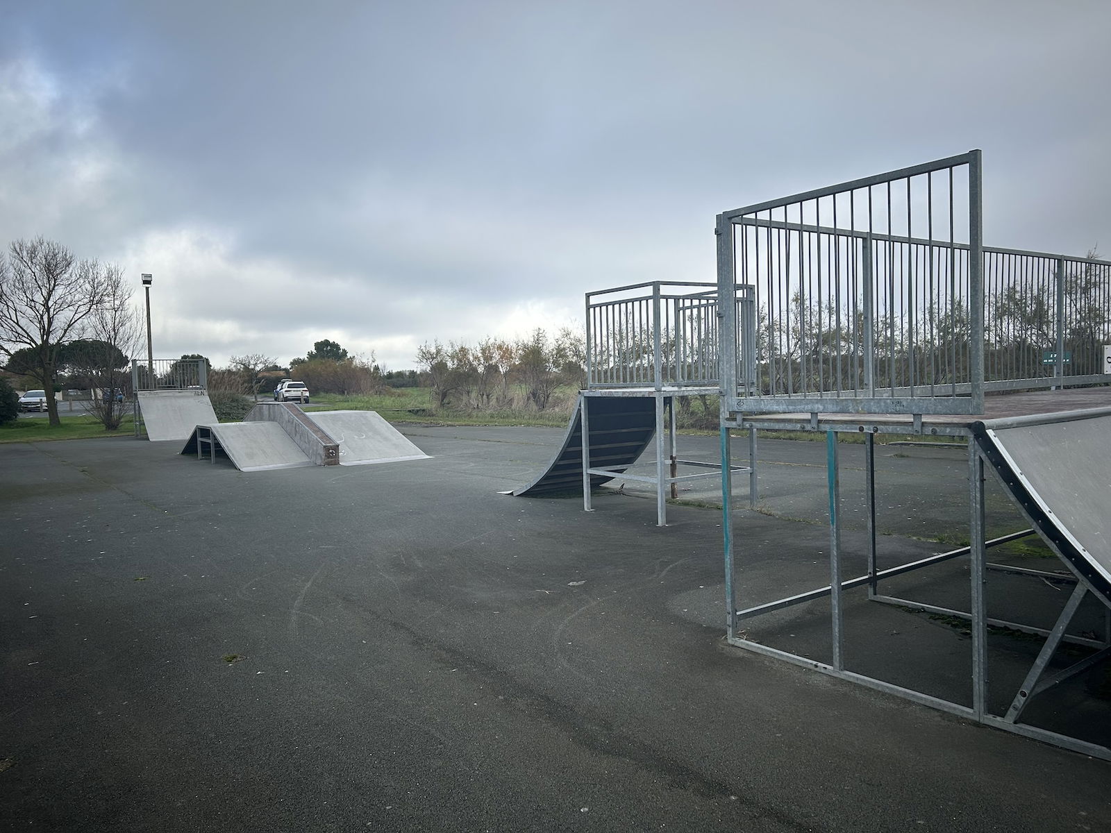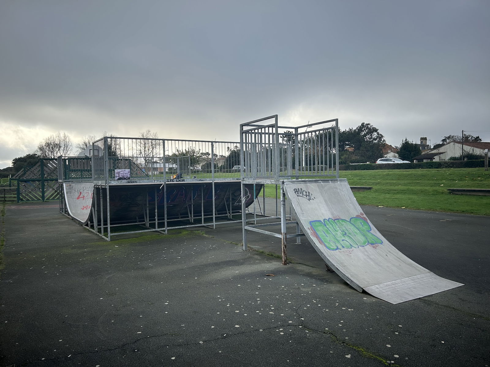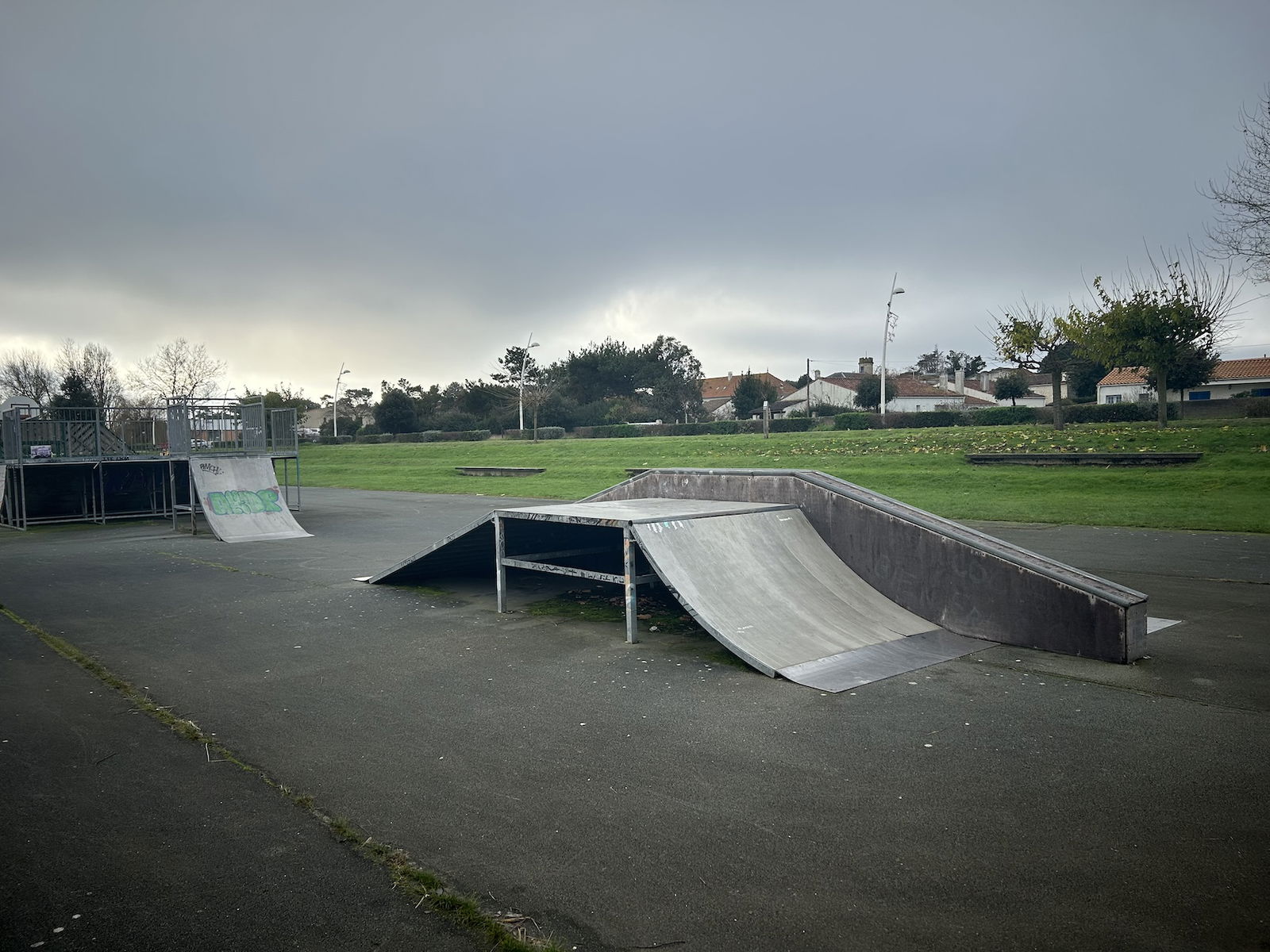 Saint-Trojan-les-Bain Skatepark is made up of a back and forth run with a quarter pipe and bank on the sides of a funbox. The skatepark also features a miniramp.