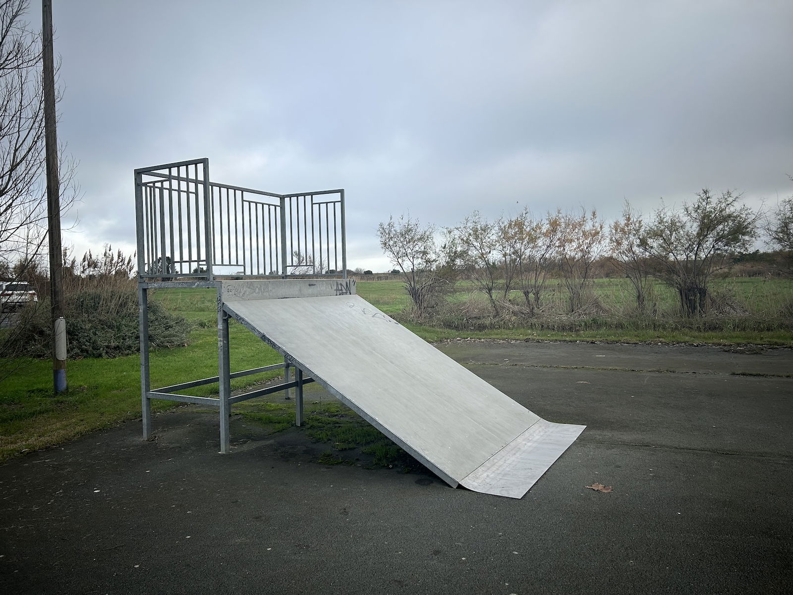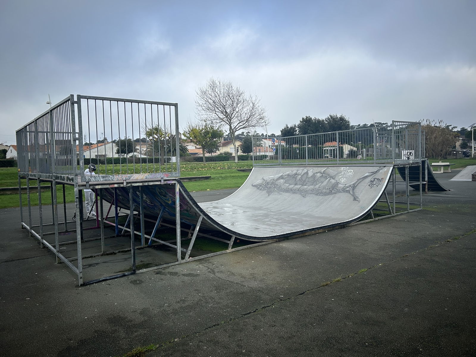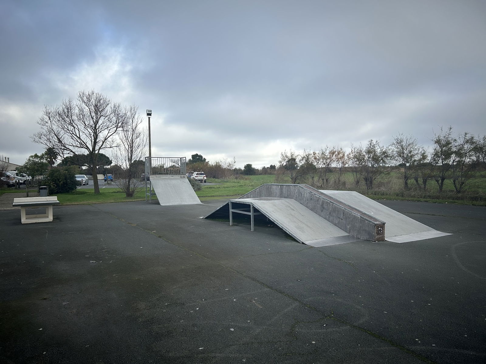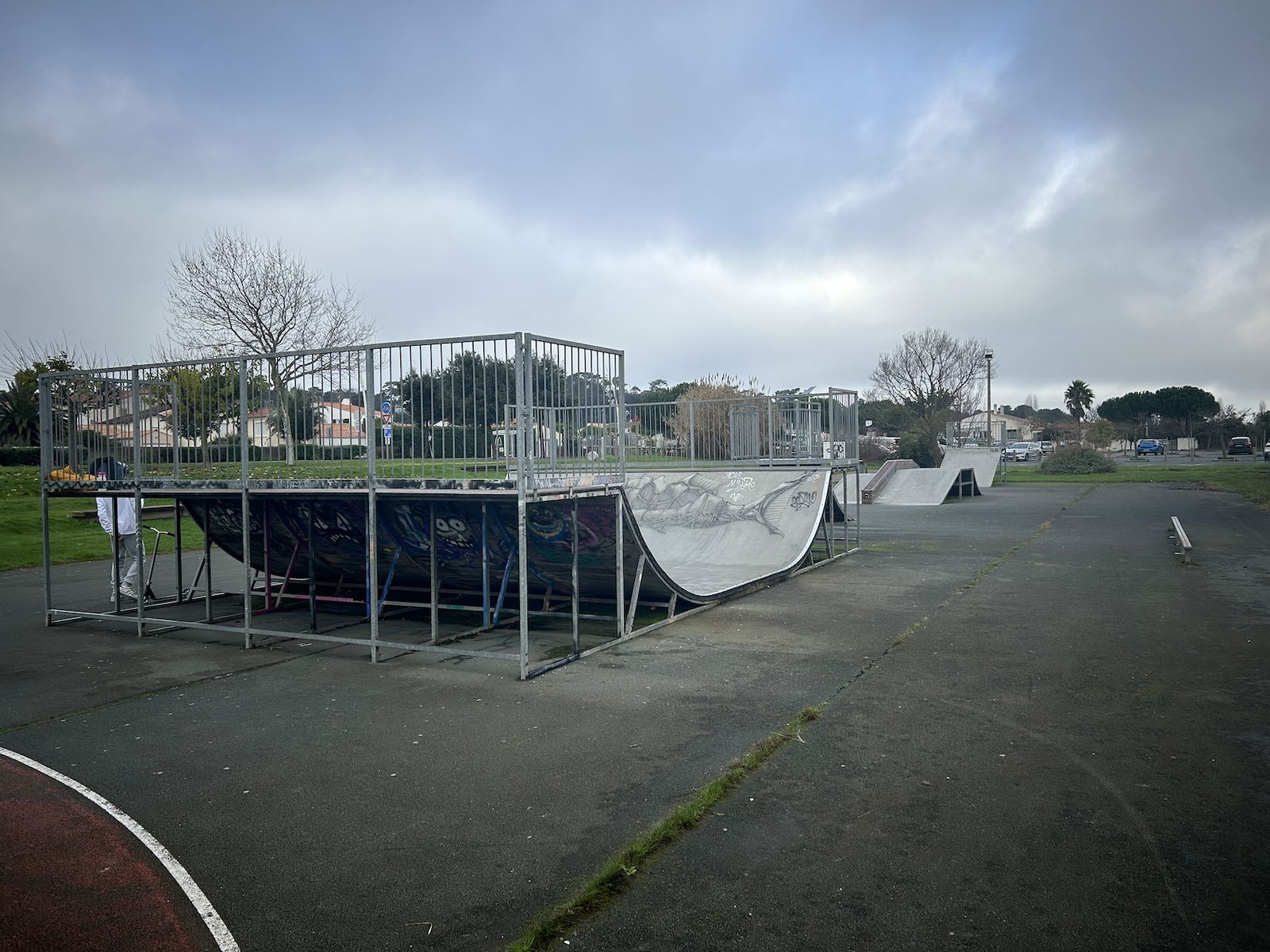 Saint-Trojan-les-Bain Skatepark is made up of a back and forth run with a quarter pipe and bank on the sides of a funbox. The skatepark also features a miniramp.
