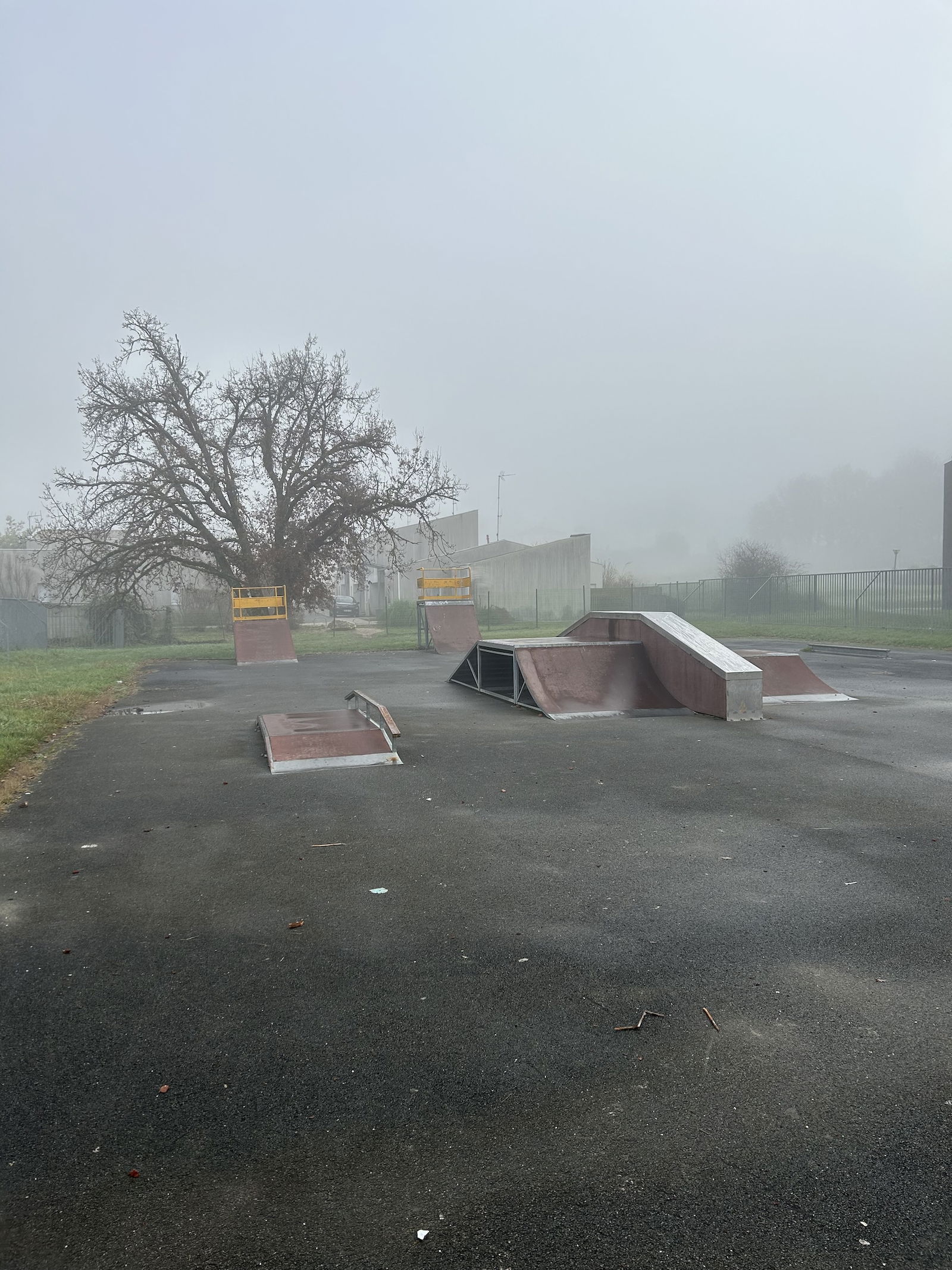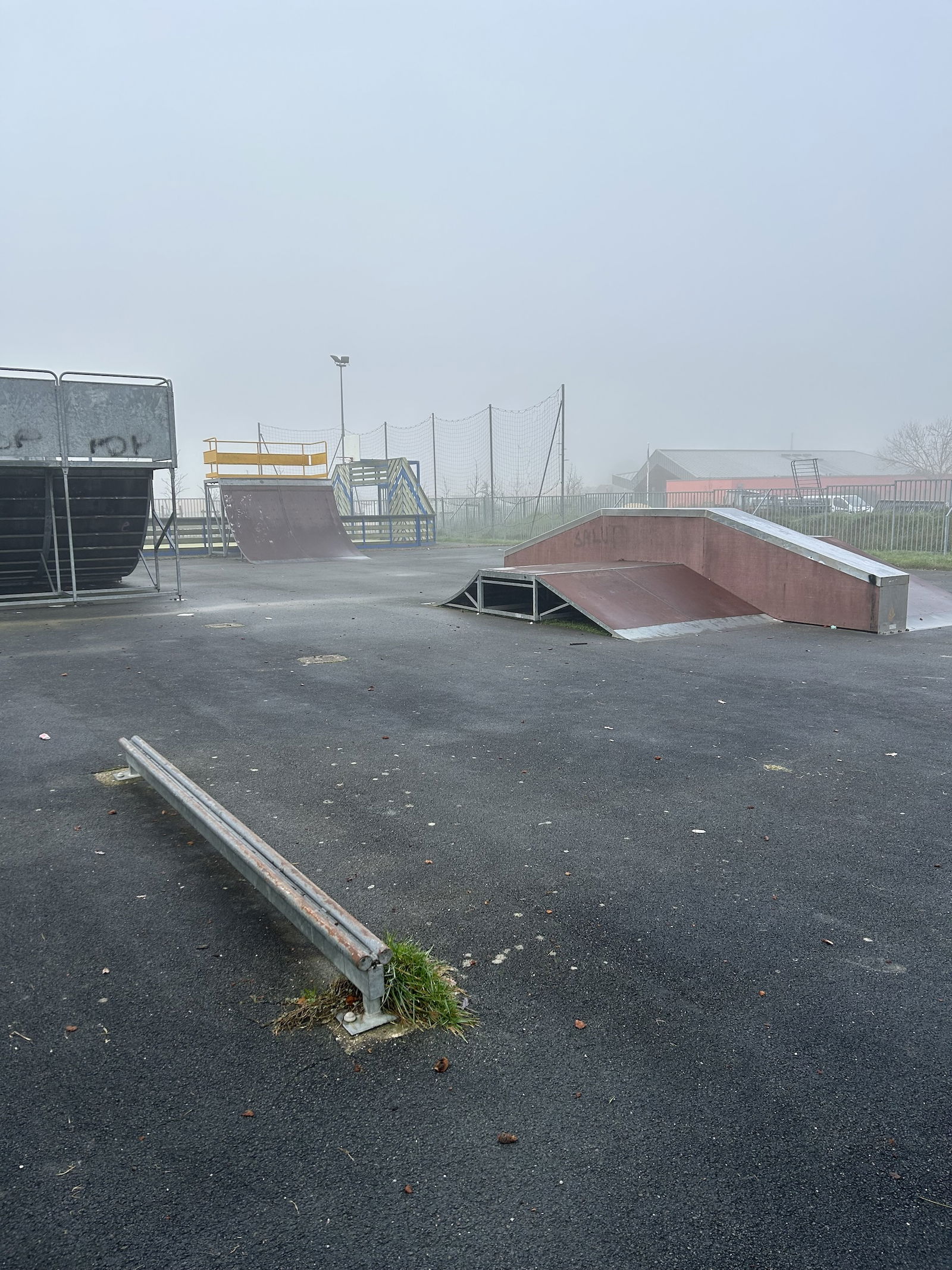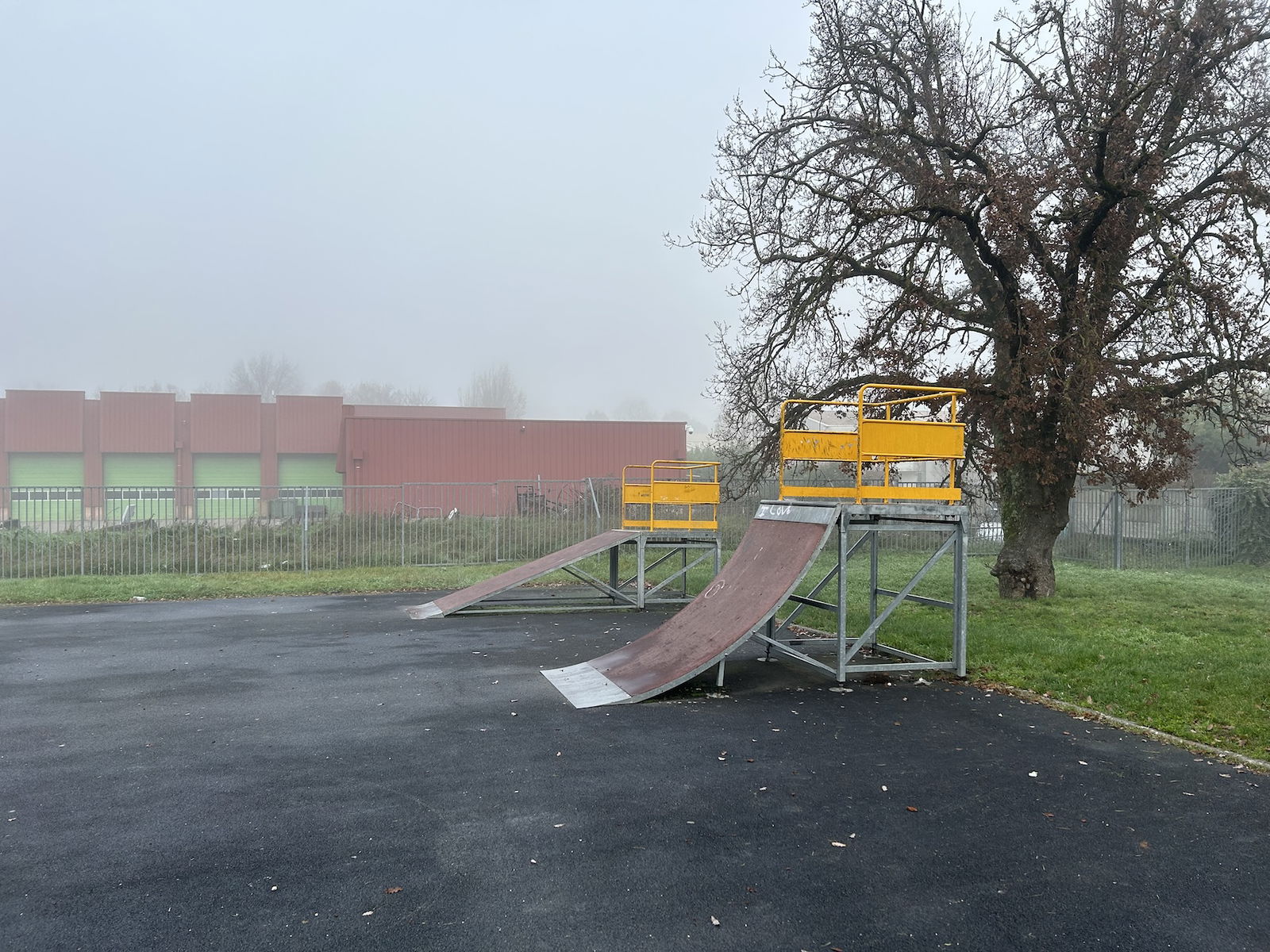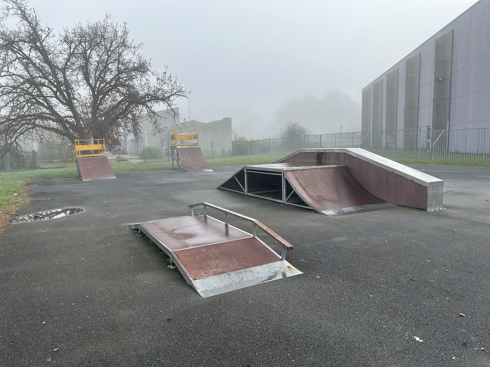 Sainte Eulalie skatepark is made up of a back and forth run with a quarter pipe on the sides of a funbox. The skatepark also features a miniramp.