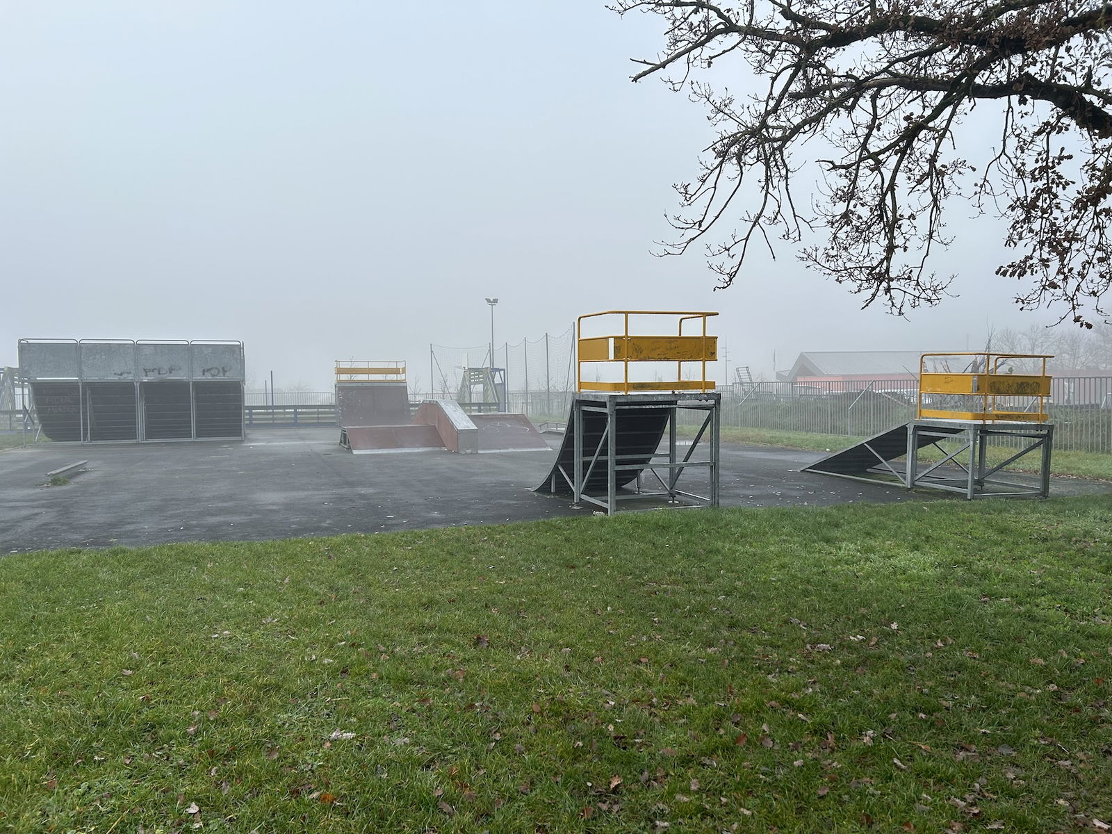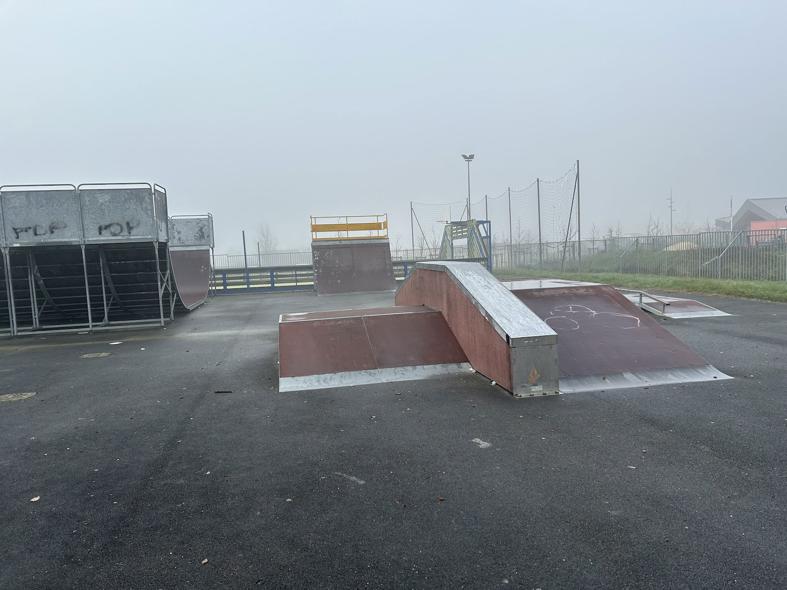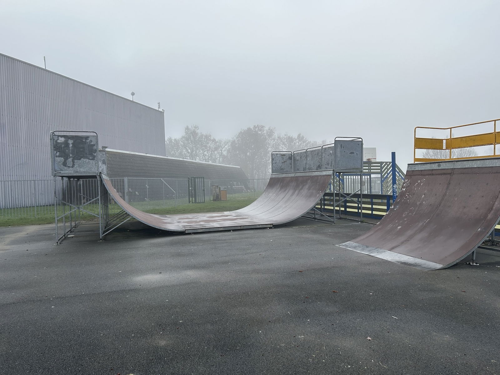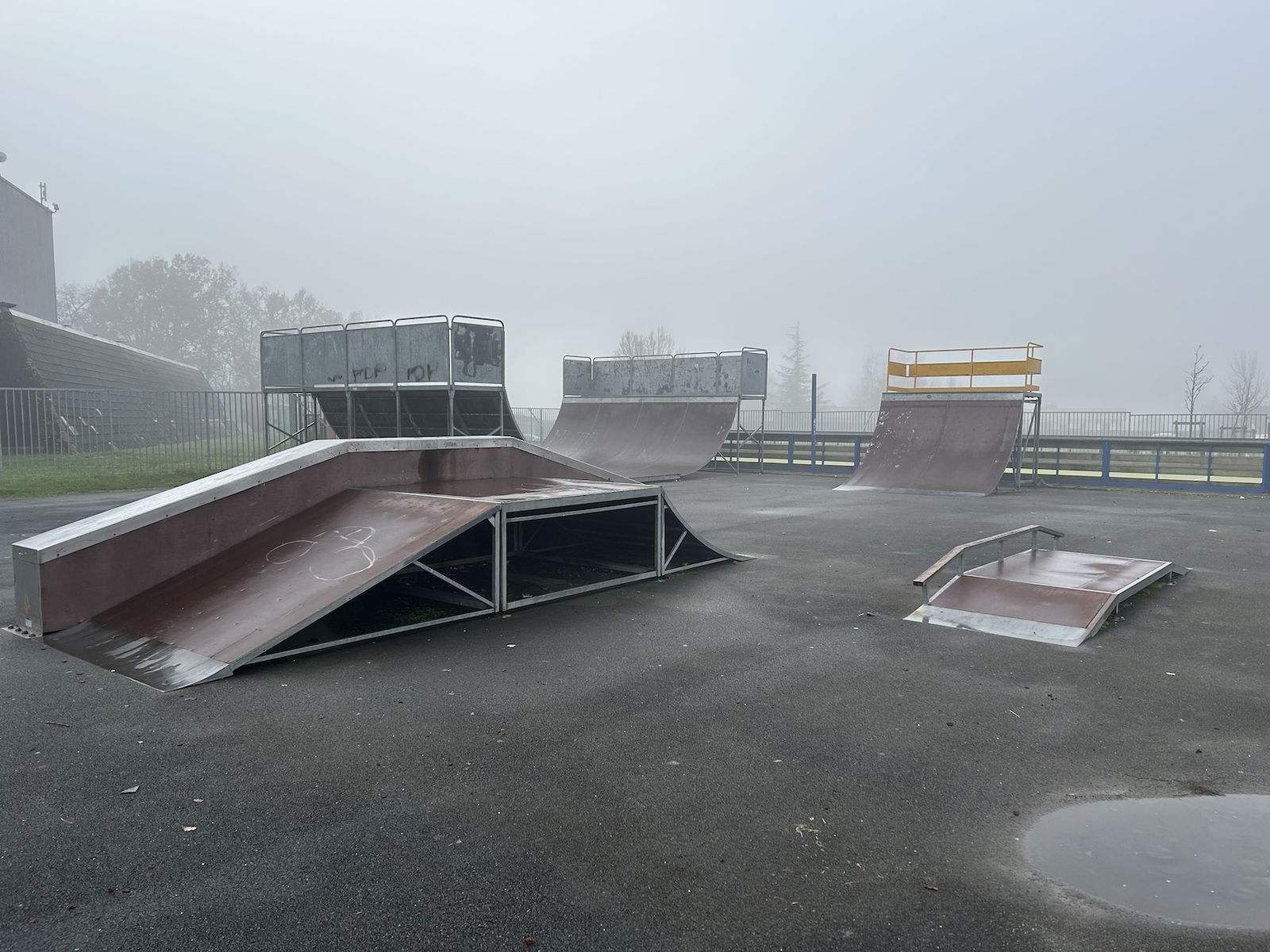 Sainte Eulalie skatepark is made up of a back and forth run with a quarter pipe on the sides of a funbox. The skatepark also features a miniramp.