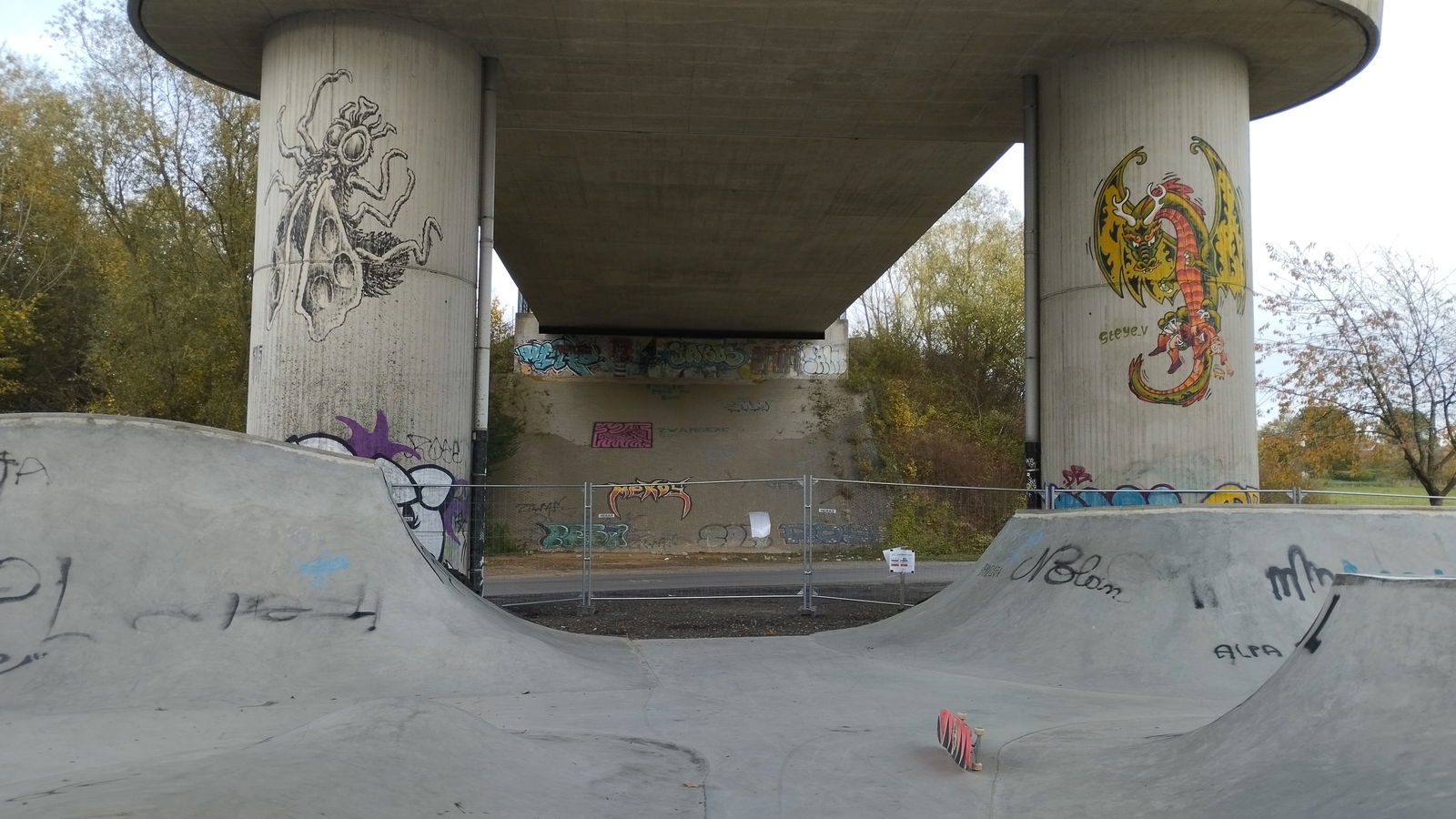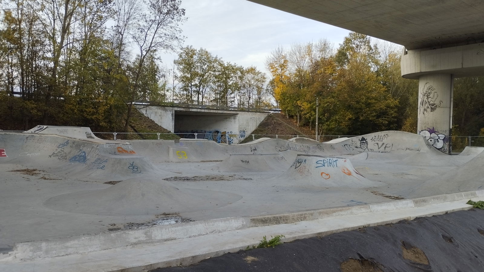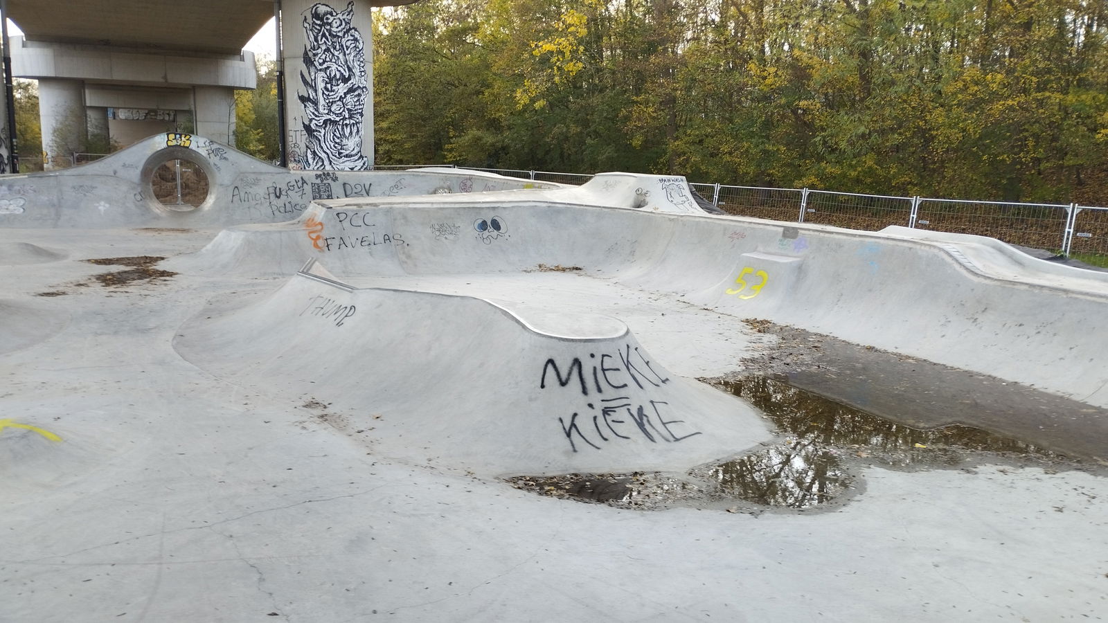 Saintes skatepark is a decent sized concrete DIY park located under a bridge overpass.