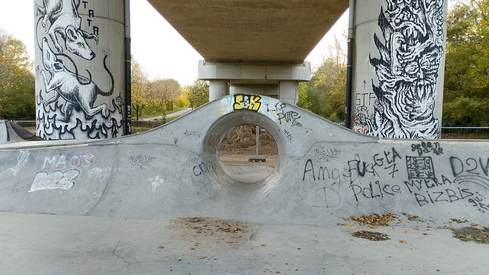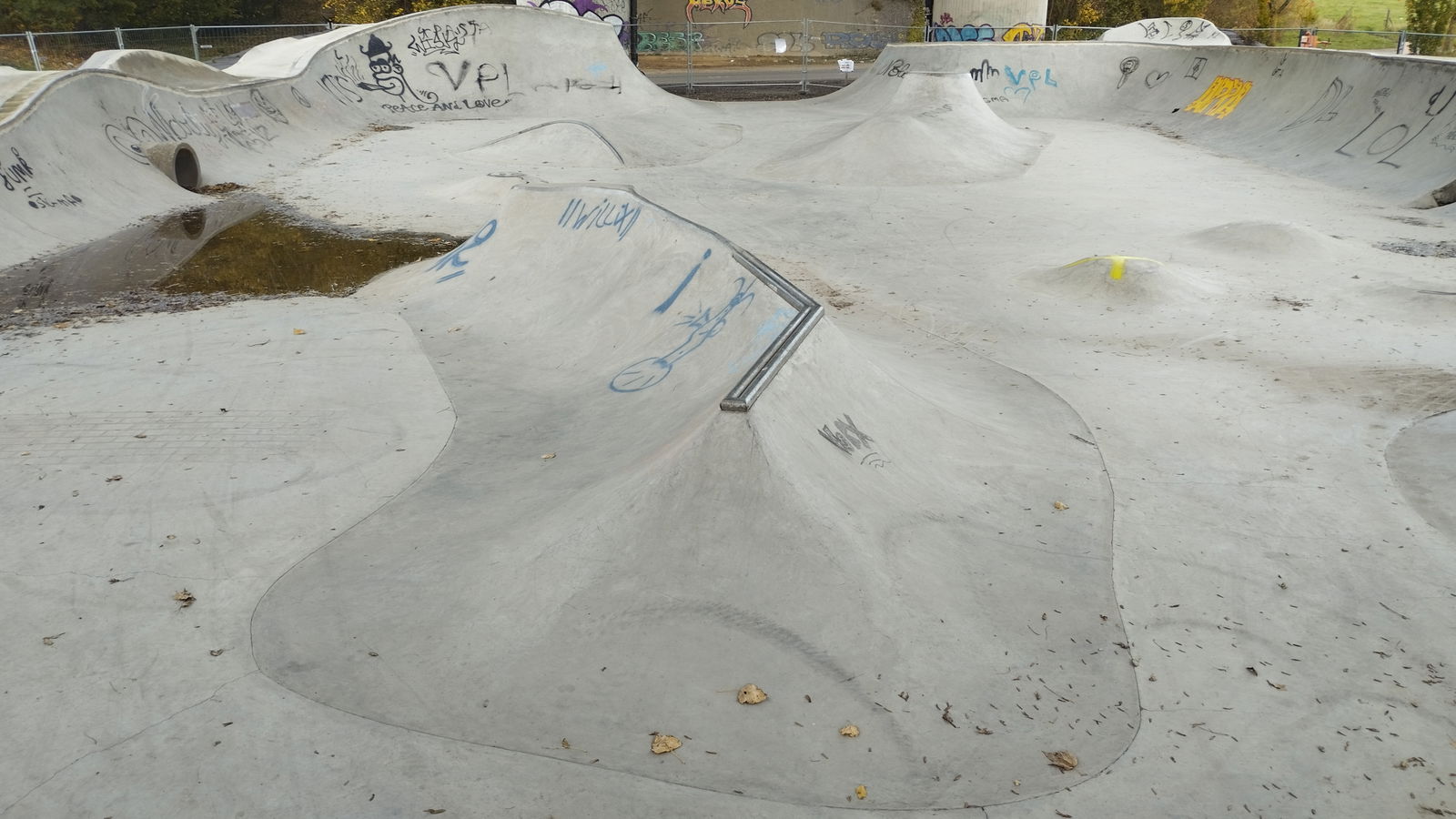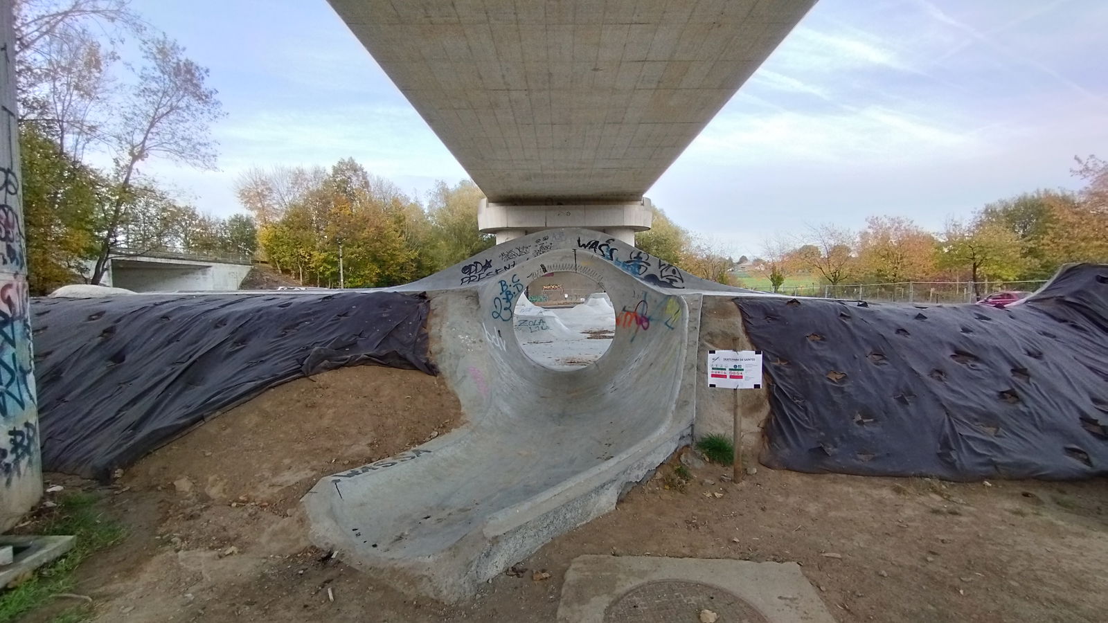 Saintes skatepark is a decent sized concrete DIY park located under a bridge overpass.