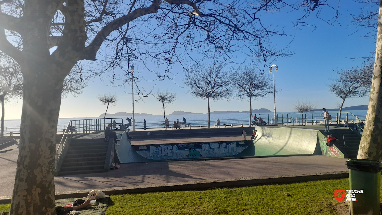 Samil Skatepark, located at Avenida Samil in Vigo, Spain, is a concrete skatepark near the popular beach area of Samil. It is well-known for its half-pipe, which is a highlight for both locals and visitors who come to enjoy skating along the scenic beachfront. The park is integrated into the urban sports landscape of Vigo, where skateboarding and BMX sports have gained significant traction. The skatepark, frequently associated with events like the O Marisquiño urban culture festival, provides a space for various levels of skaters to practice and perform tricks. The park itself has undergone several upgrades and has been a key venue for the skateboarding community in Vigo for years, contributing to the city's growing reputation for urban sports.