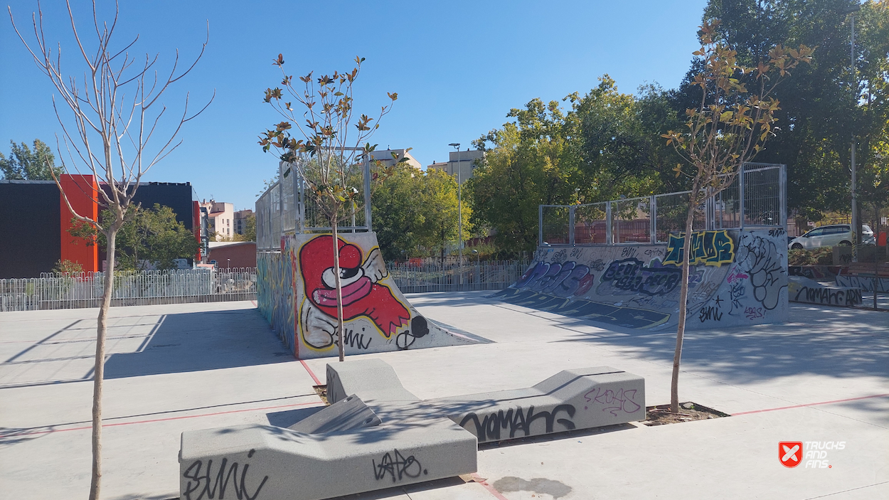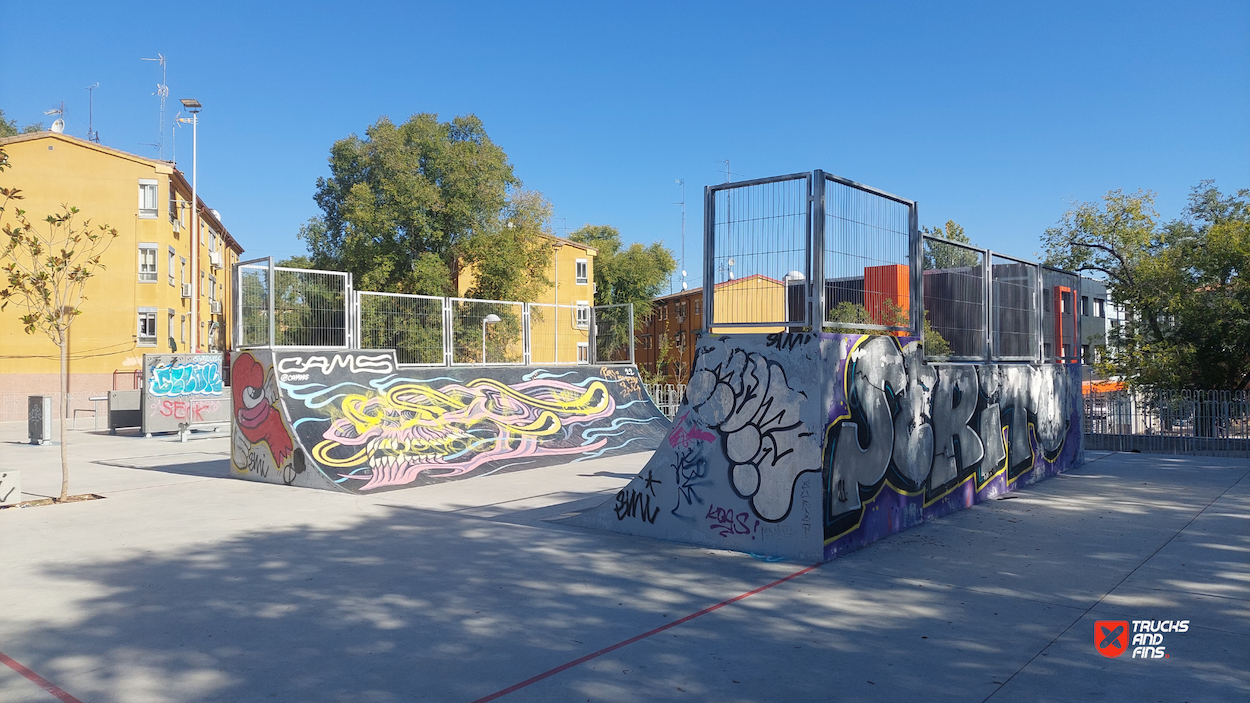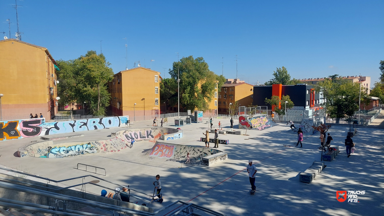 San Blas-Canillejas skatepark is a 1.200m2 concrete park featuring a bowl, miniramp and street area. The skatepark was built in 2021.