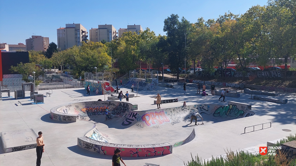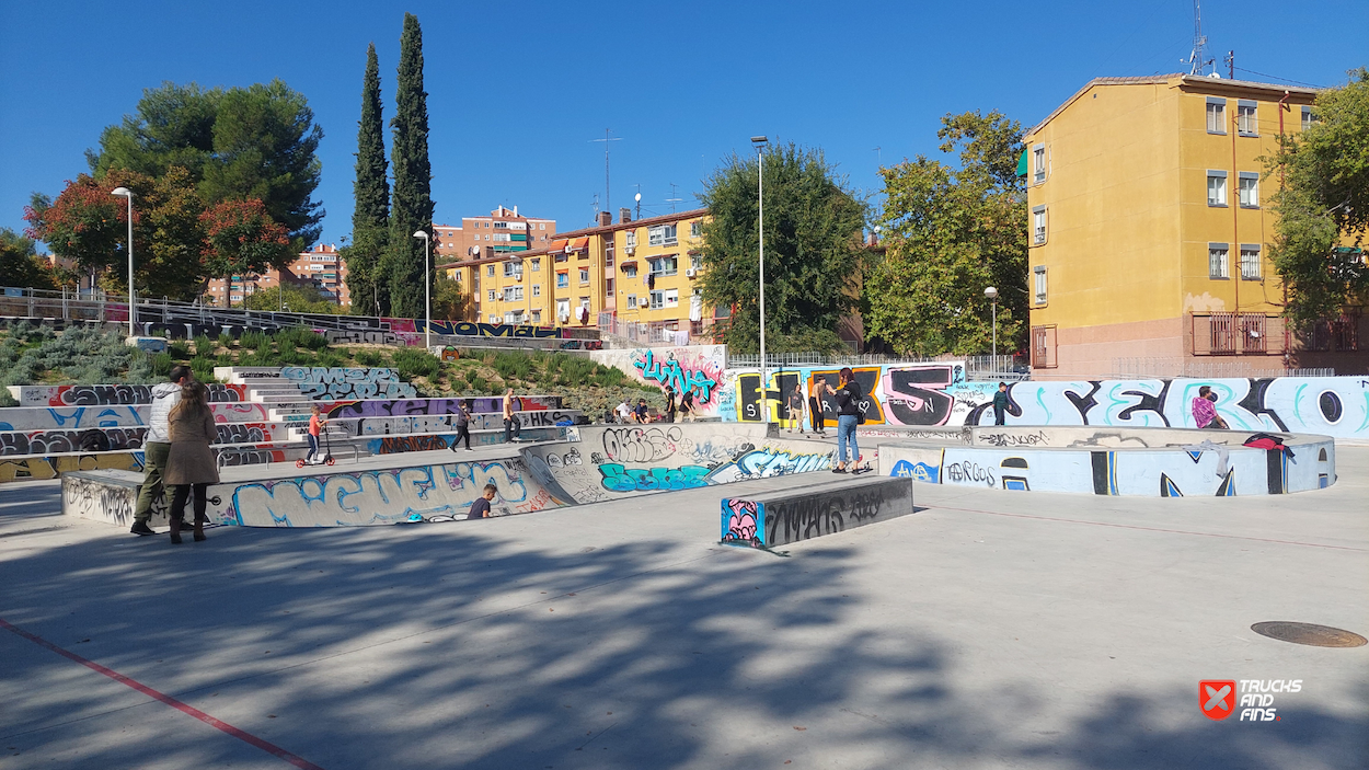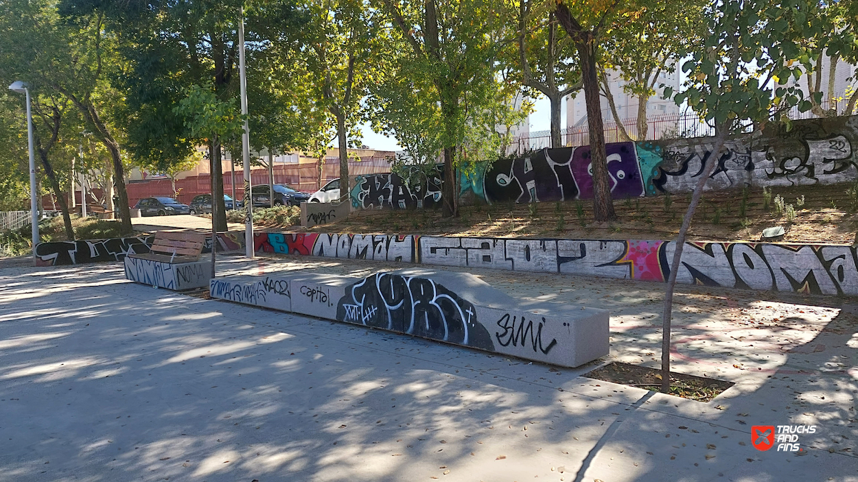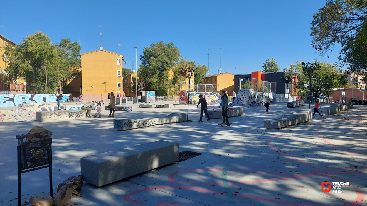 San Blas-Canillejas skatepark is a 1.200m2 concrete park featuring a bowl, miniramp and street area. The skatepark was built in 2021.
